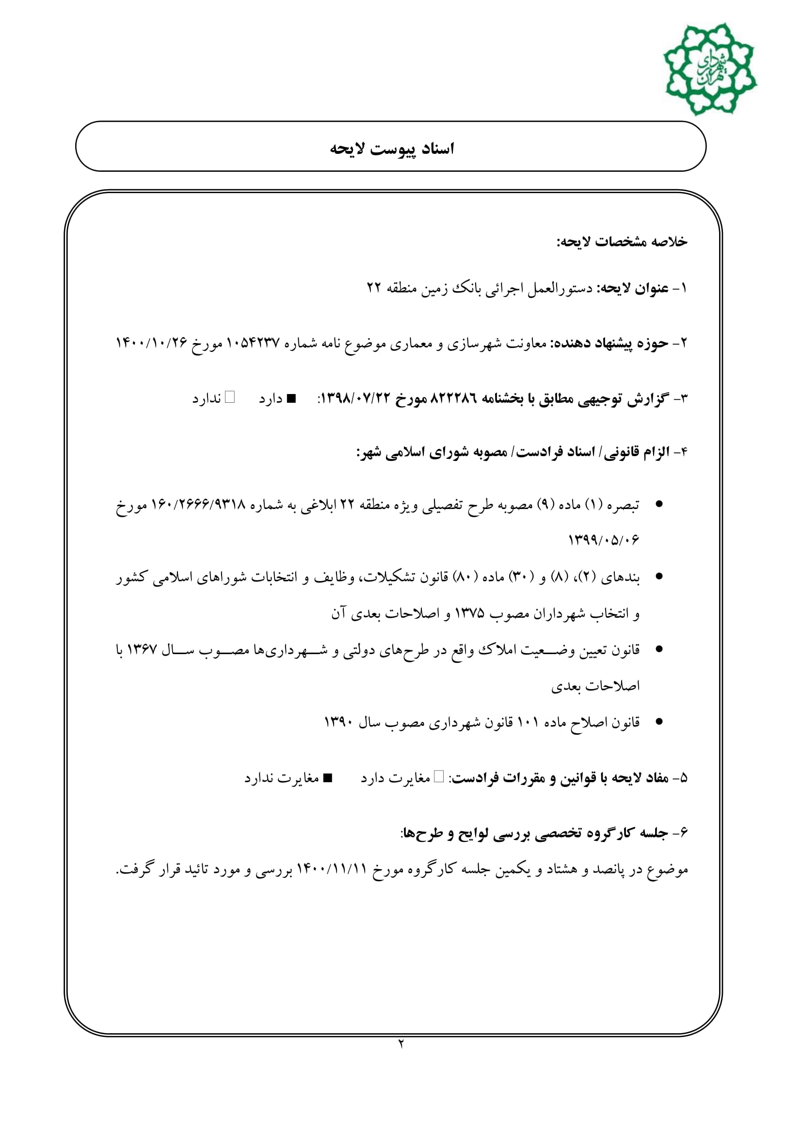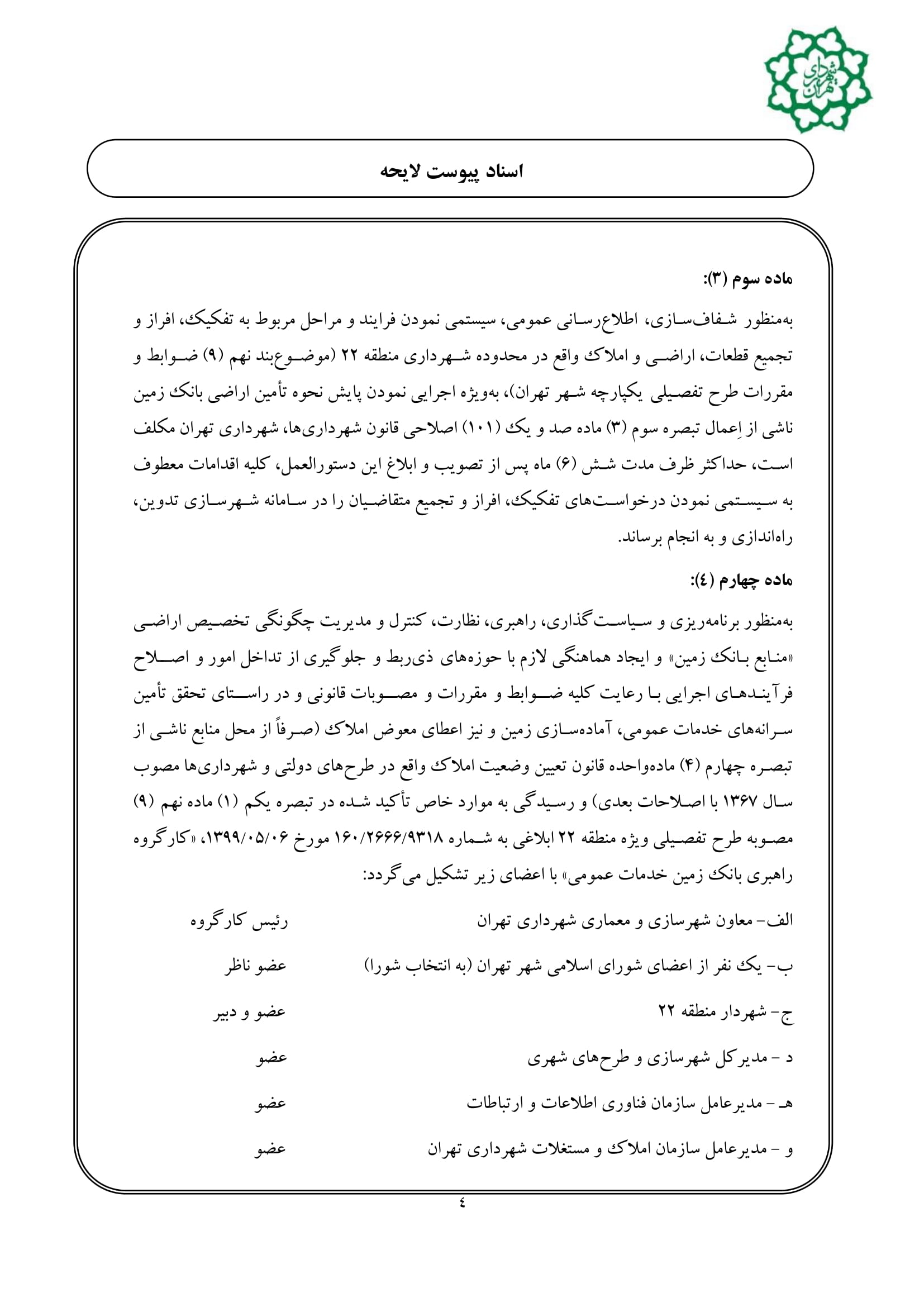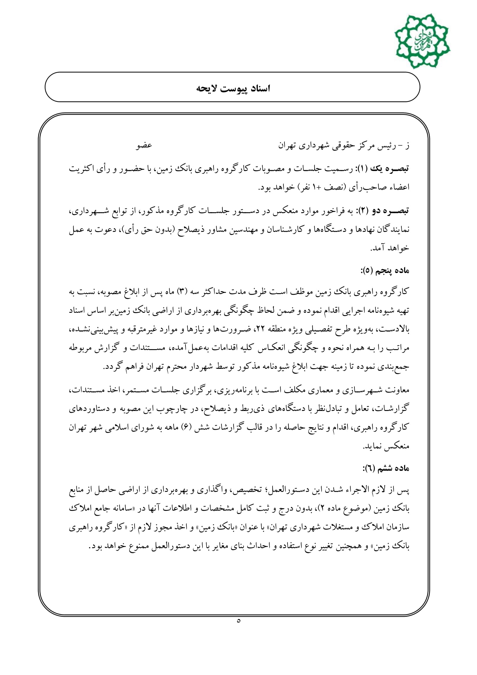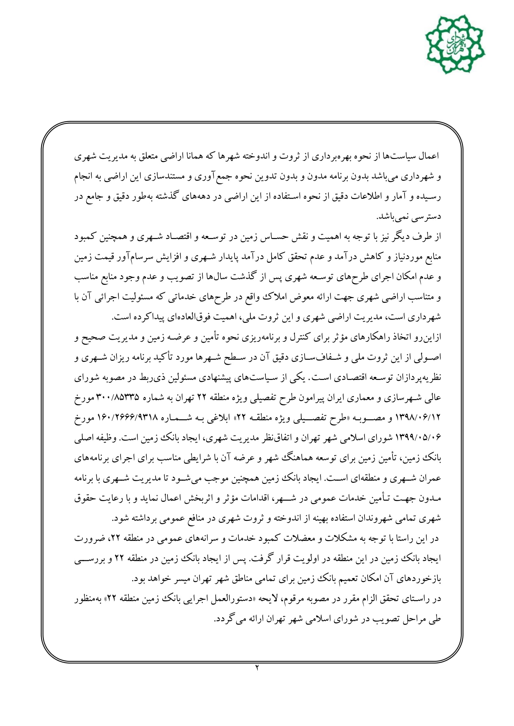 دستورالعمل اجرايي بانك زمين منطقه 22