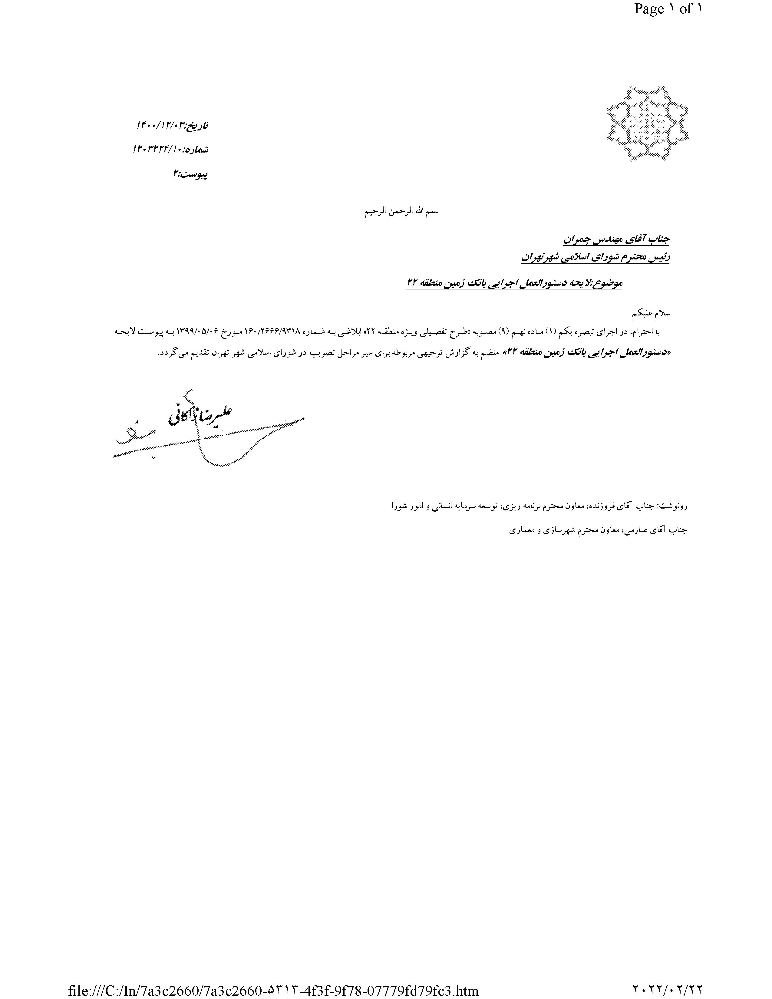 دستورالعمل اجرايي بانك زمين منطقه 22