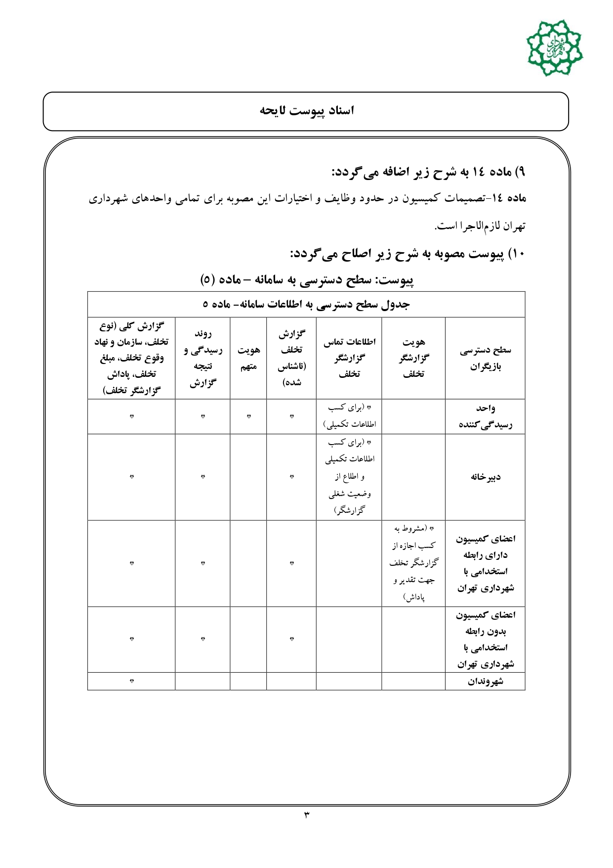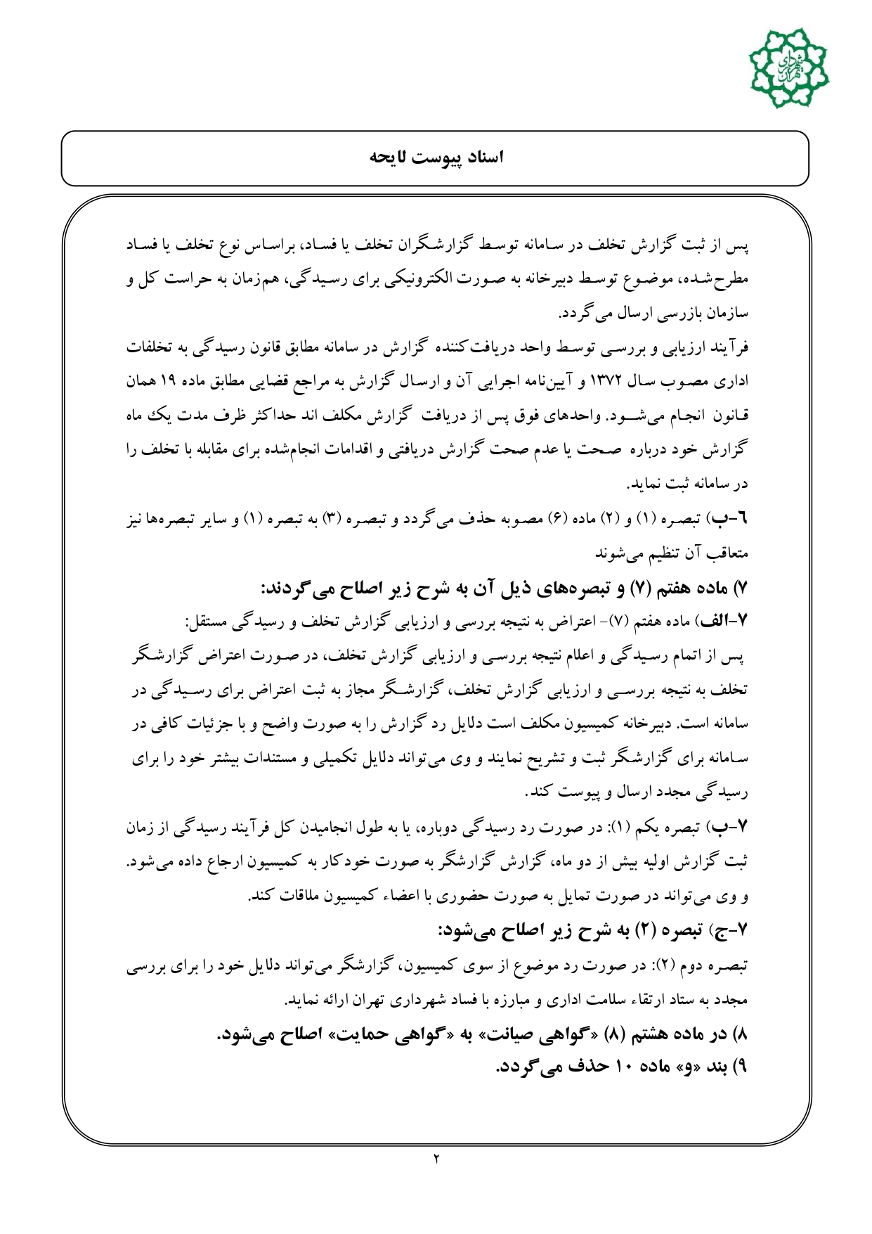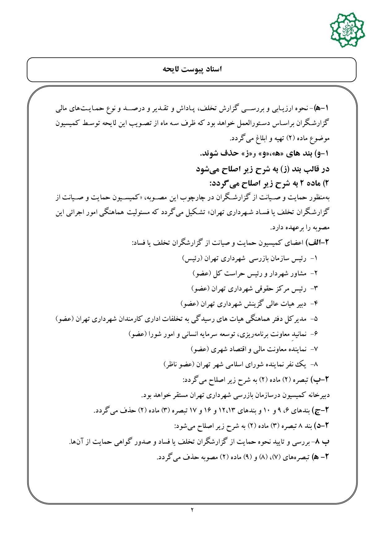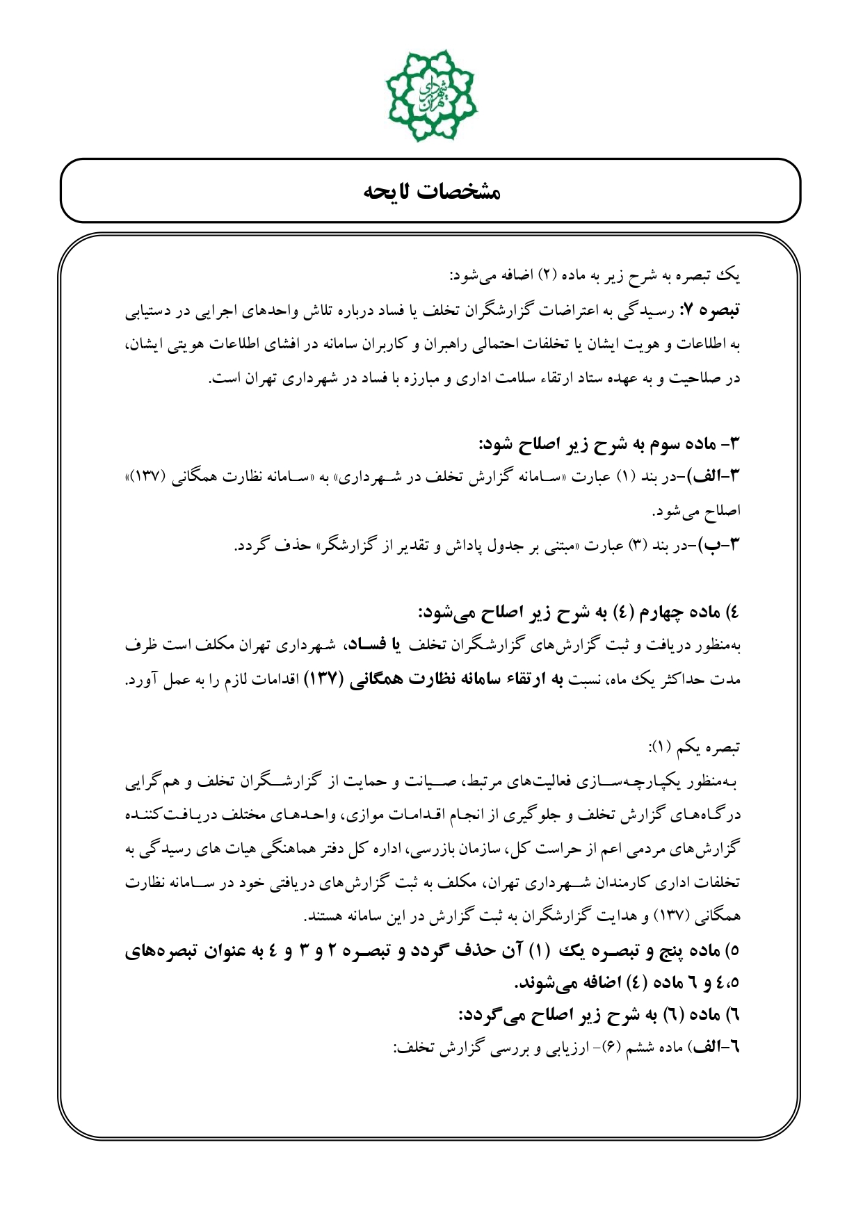 اصلاح مصوبه حمايت و صيانت از گزارشگران تخلف و فساد در شهرداري تهران