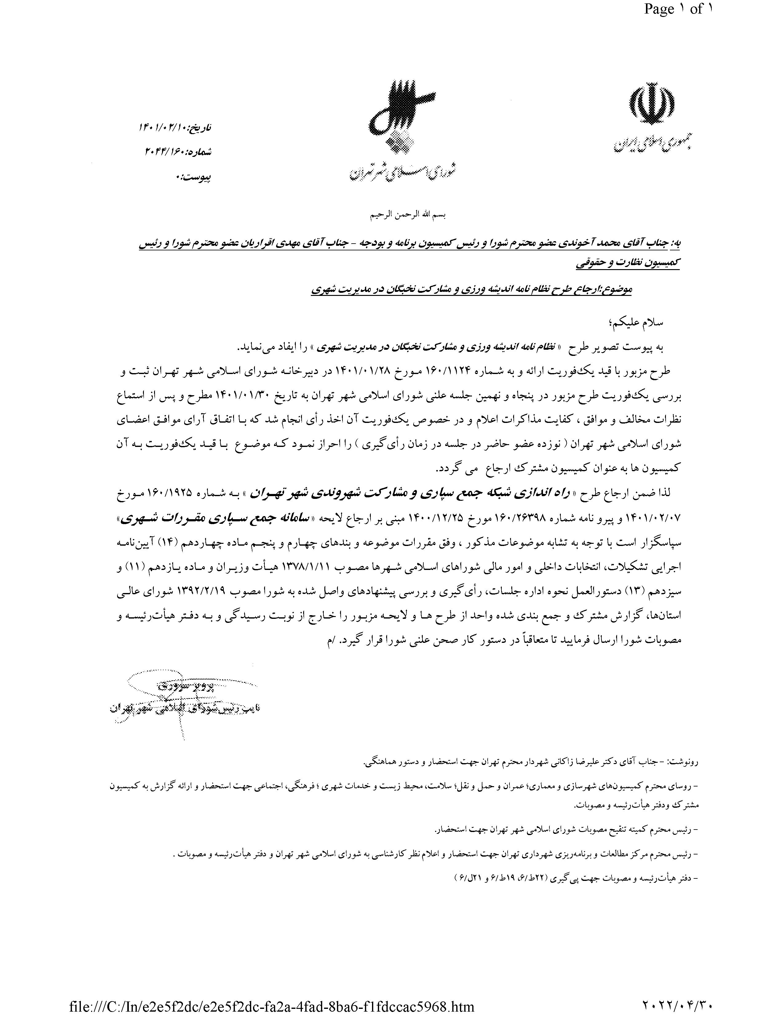 معرفی سامانه جامع مصوبات شورای اسلامی شهر تهران
