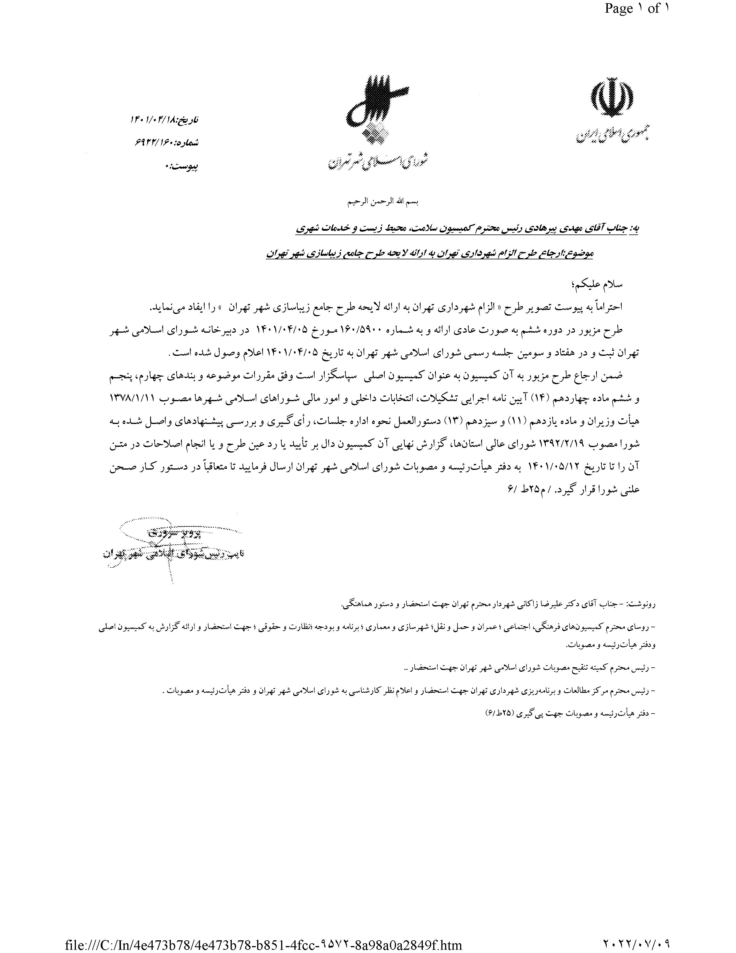الزام شهرداري تهران به ارائه لايحه طرح جامع زيباسازي شهر تهران