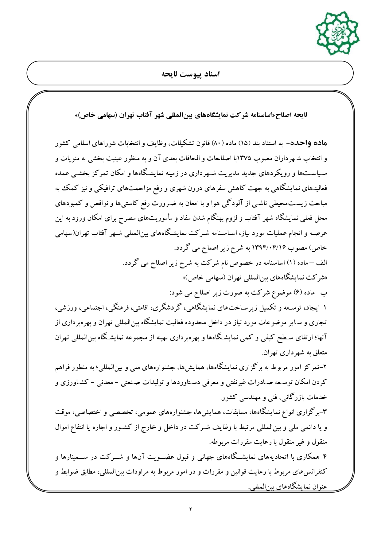 اصلاح اساسنامه شركت نمايشگاههاي بينالمللي شهر آفتاب تهران (سهامي خاص)