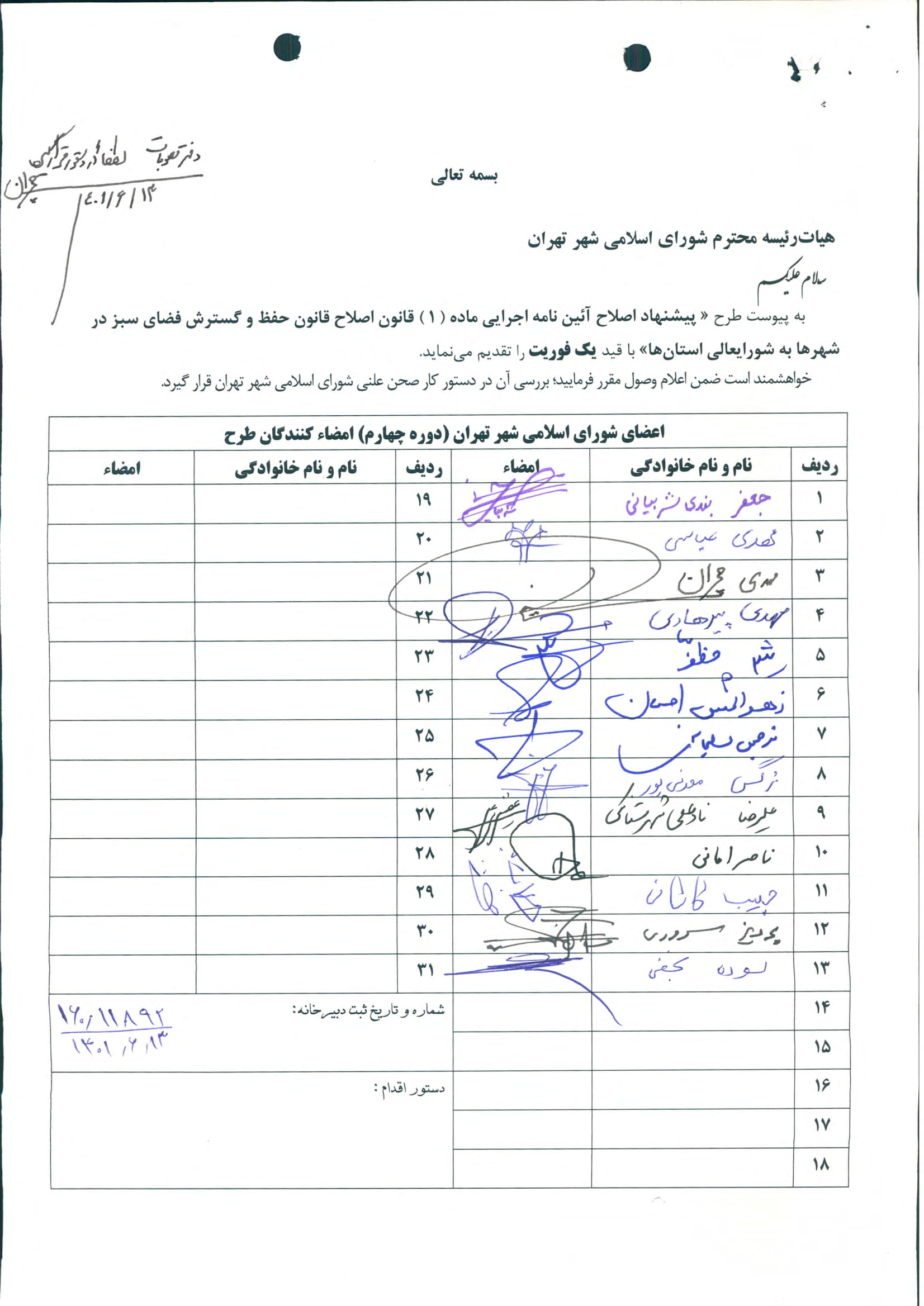پيشنهاد اصلاح آييننامه اجرايي ماده (1) قانون «اصلاح قانون حفظ و گسترش فضاي سبز در شهرها» به شوراي عالي استانها