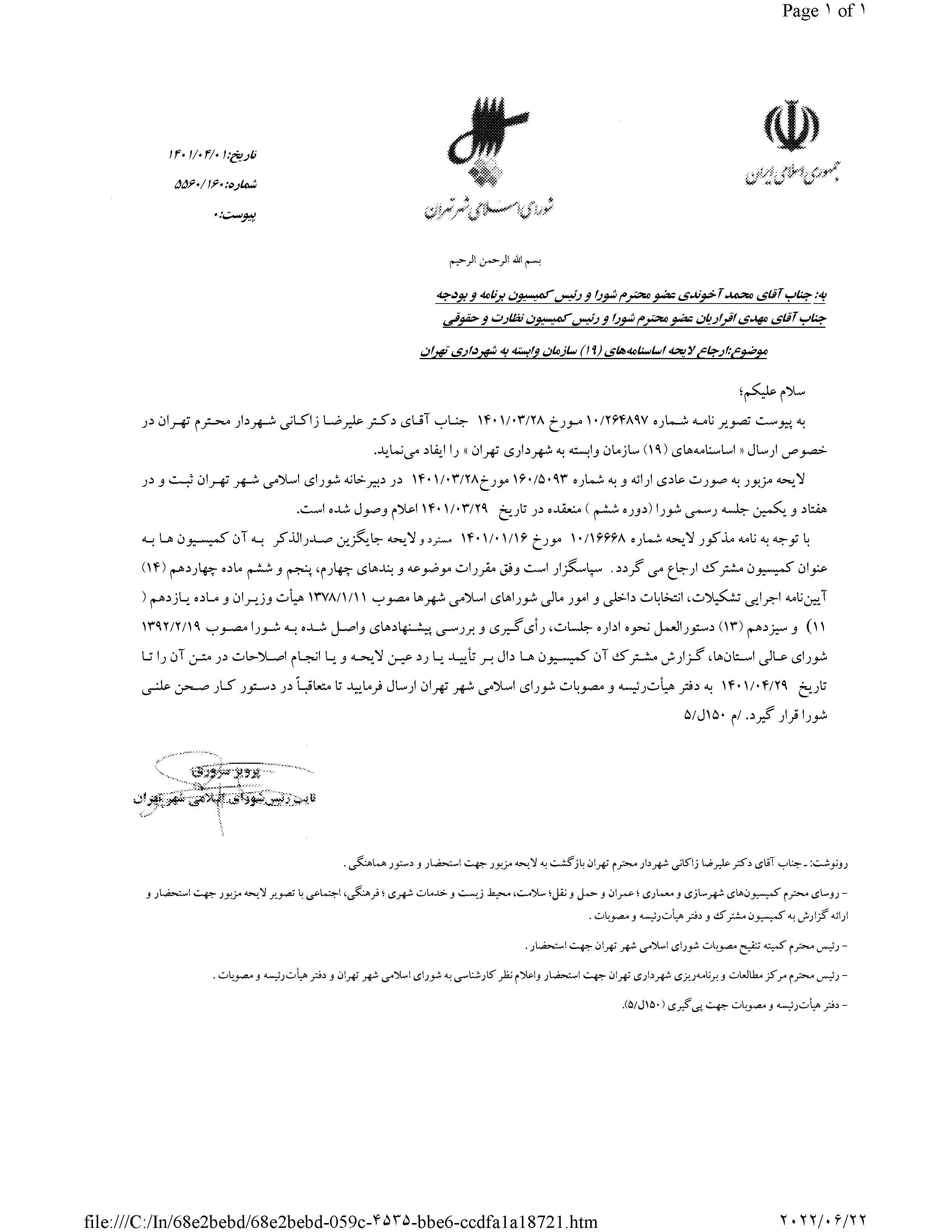 اساسنامههاي (19) سازمان وابسته به شهرداري تهران
