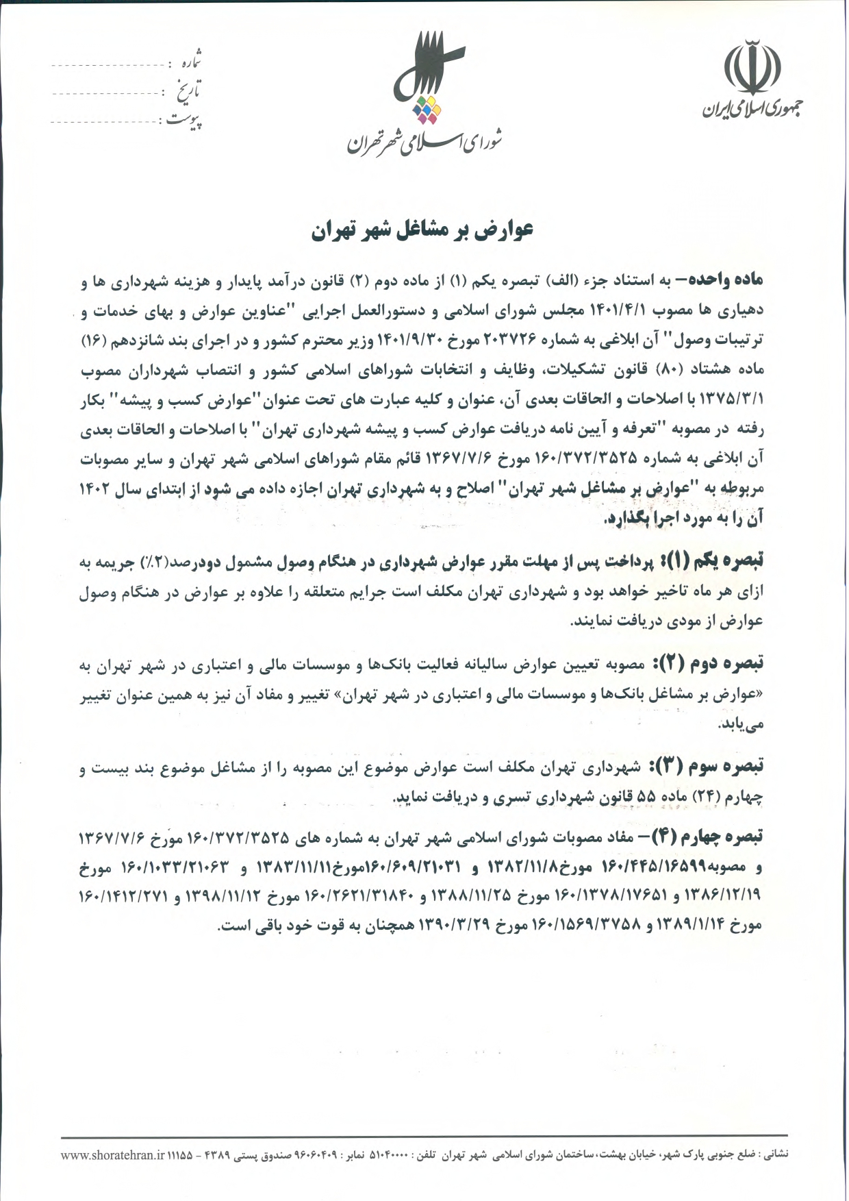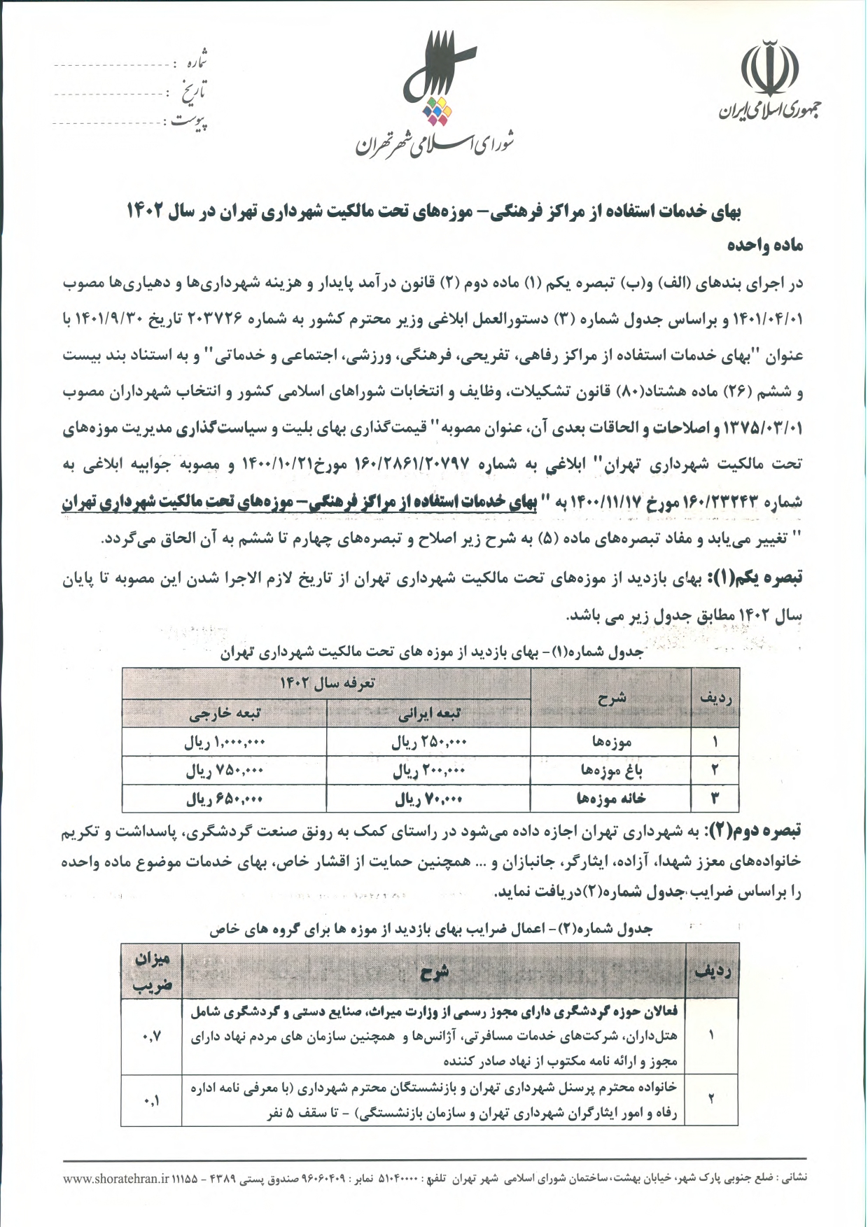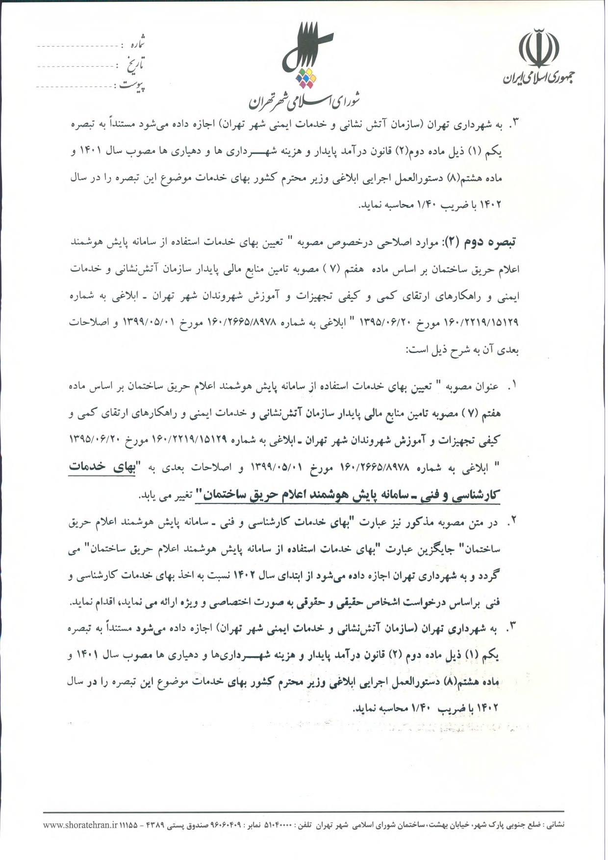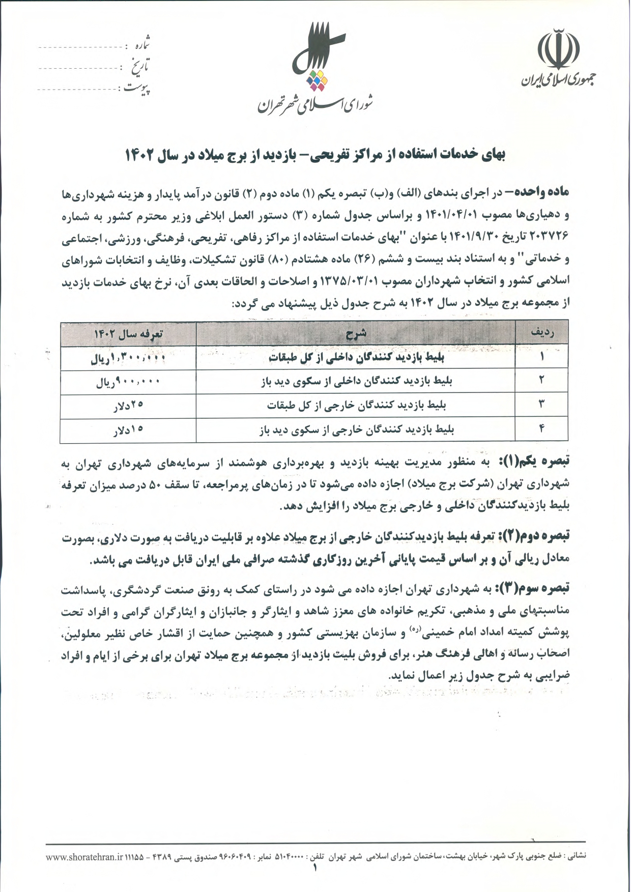 عوارض و بهاي خدمات در سال 1402