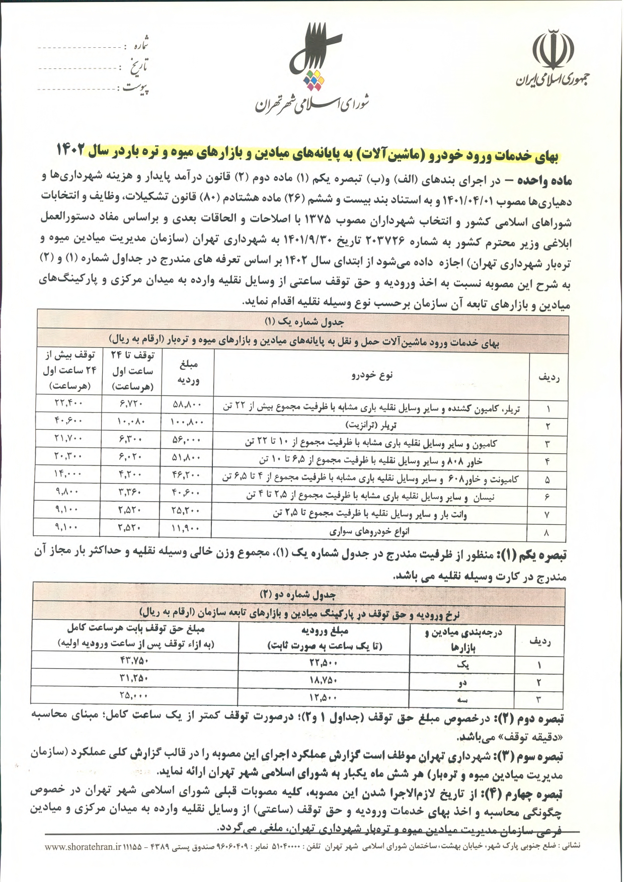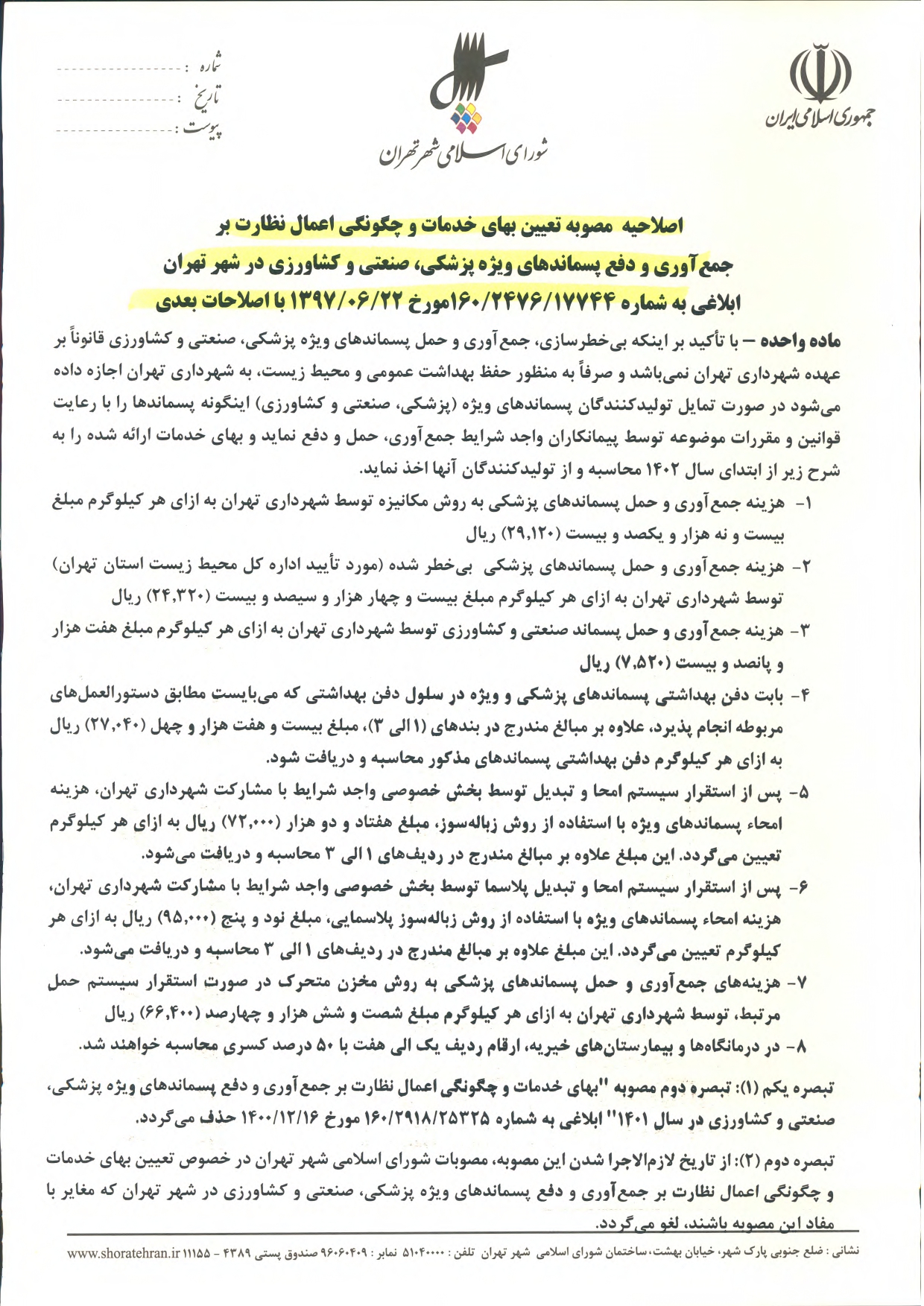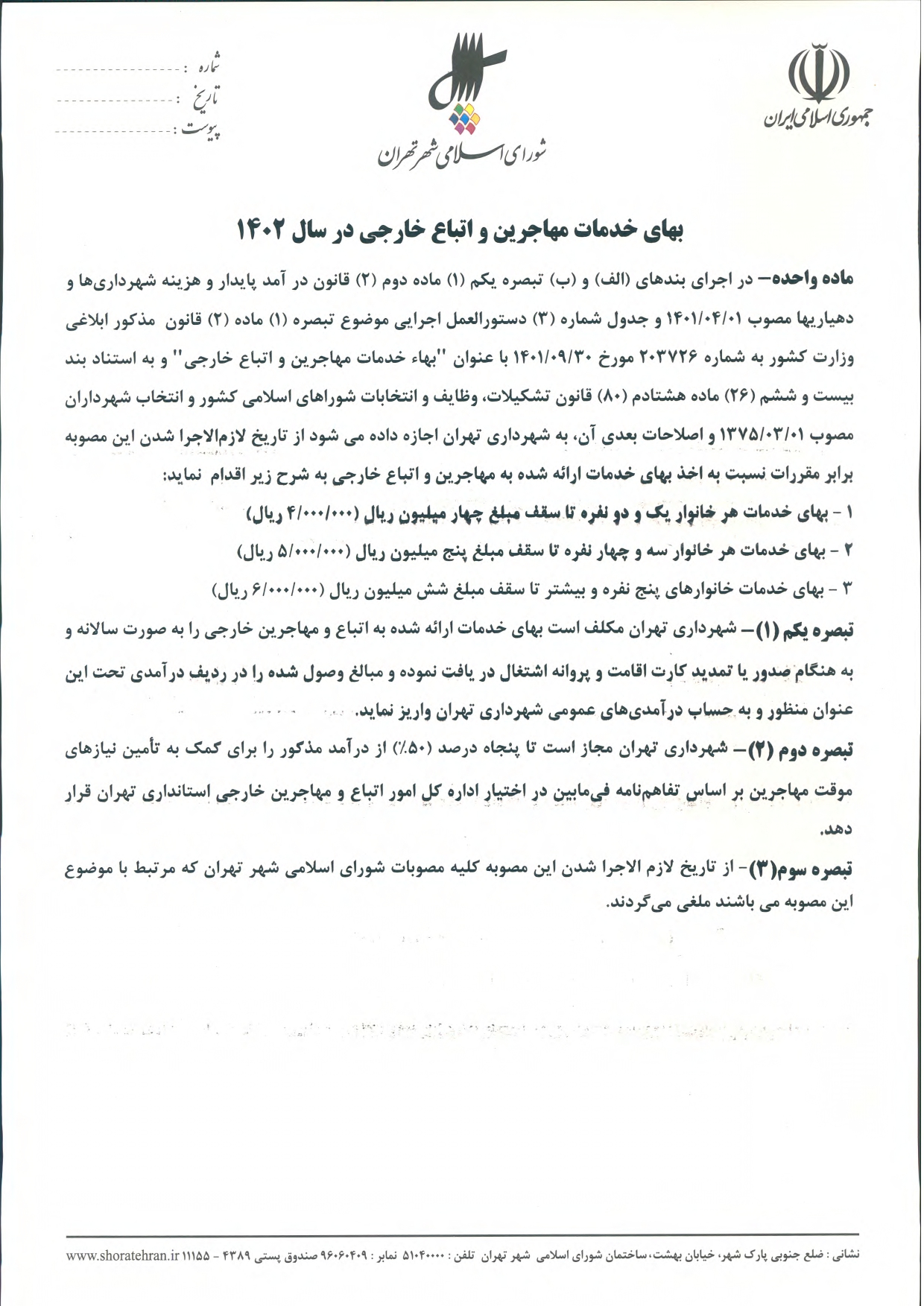 عوارض و بهاي خدمات در سال 1402