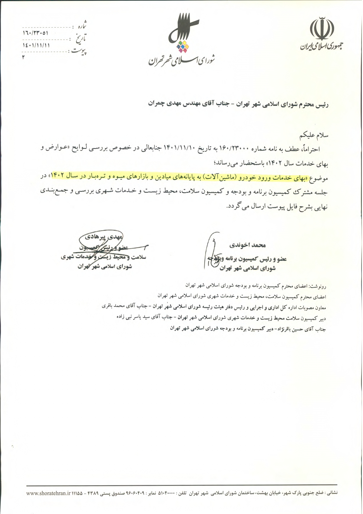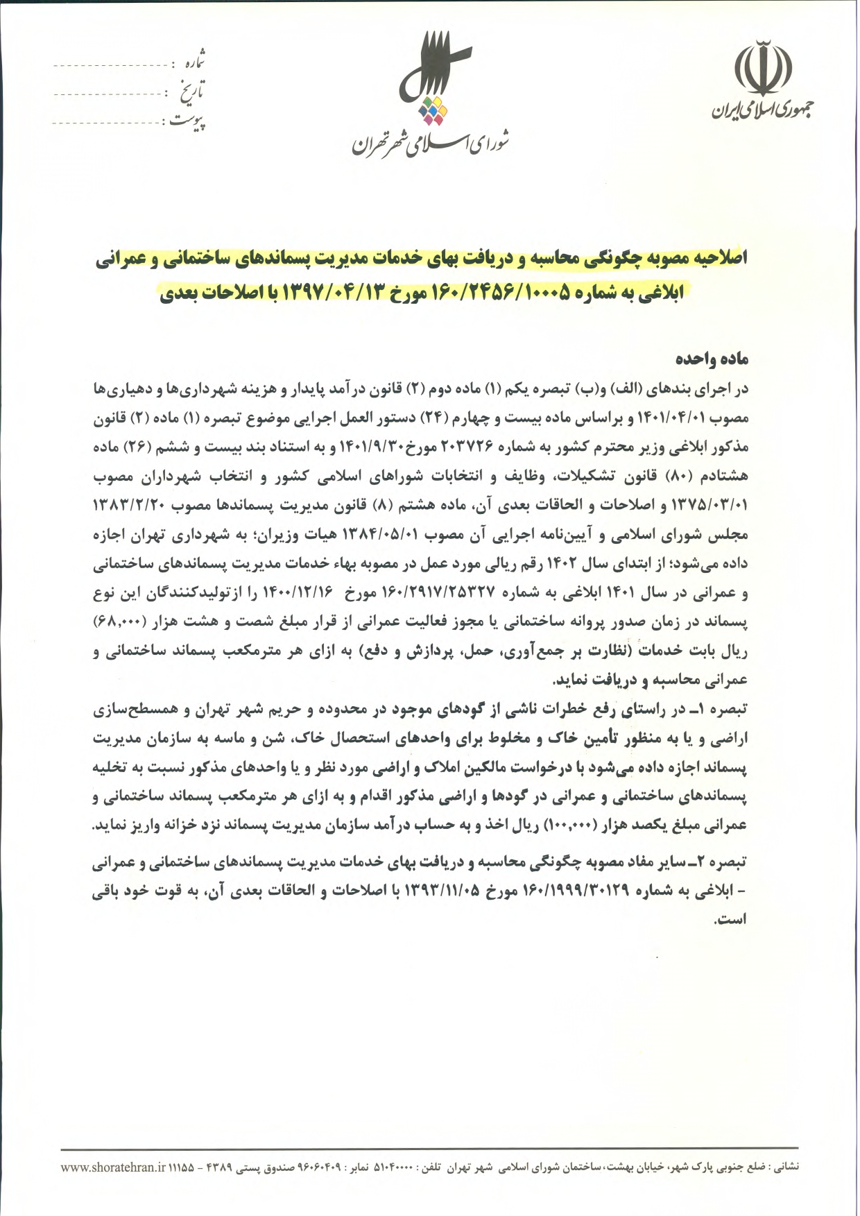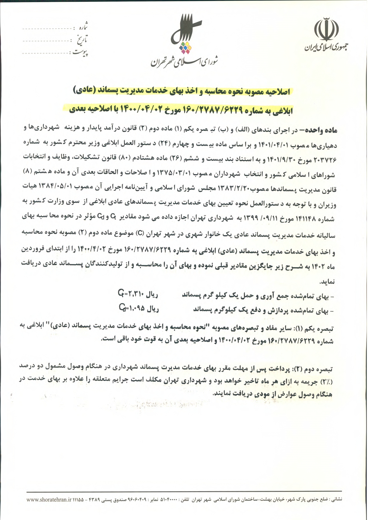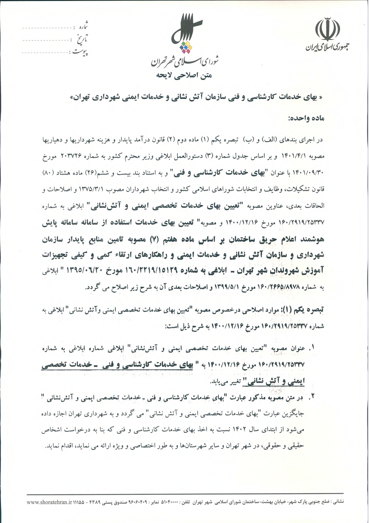 عوارض و بهاي خدمات در سال 1402