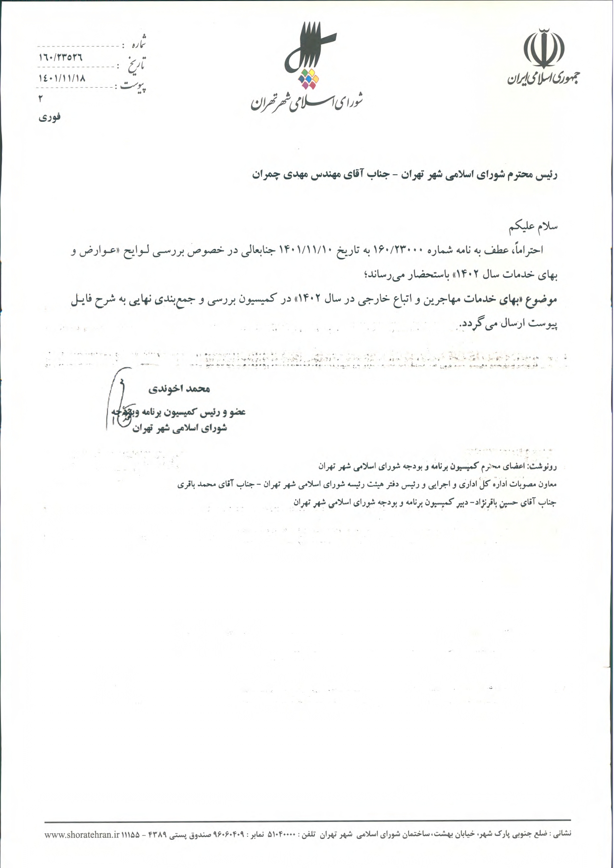 معرفی شورای اسلامی شهر تهران