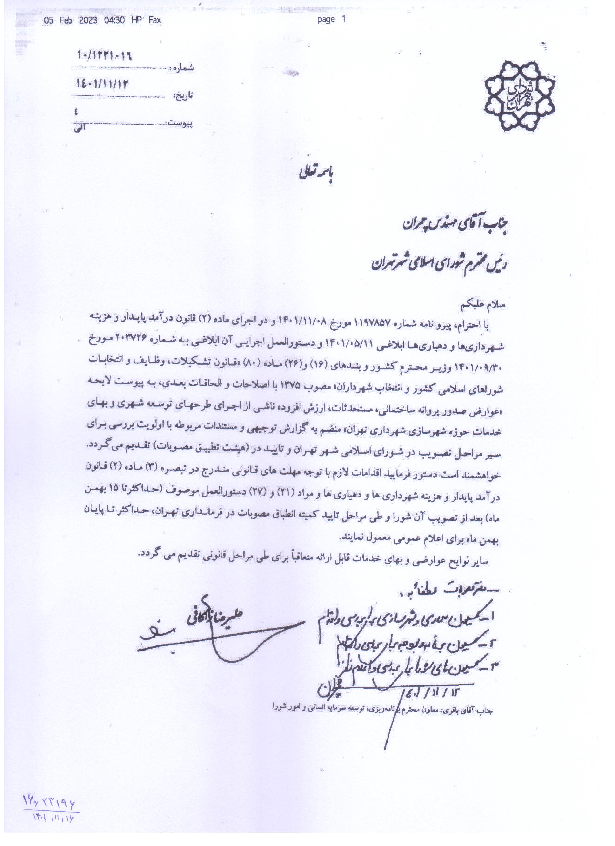 عوارض صدور پروانه ساختماني، مستحدثات، ارزش افزوده ناشي از اجراي طرحهاي توسعه شهري و بهاي خدمات حوزه شهرسازي شهرداري تهران