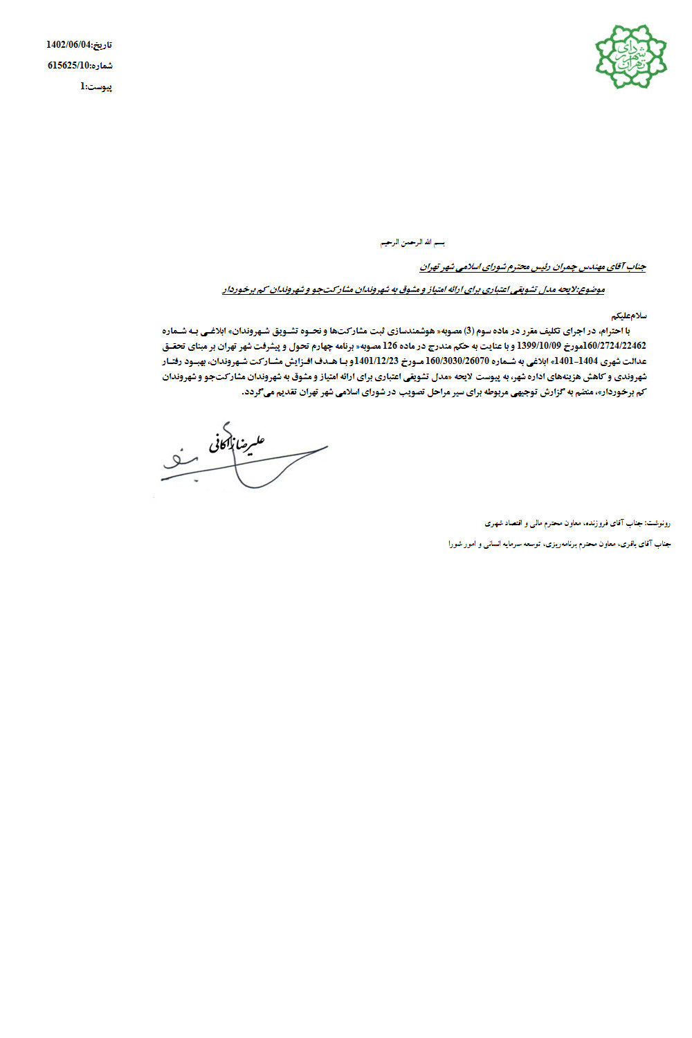 مدل تشويقي اعتباري براي ارائه امتياز و مشوق به شهروندان مشاركتجو و شهروندان كم برخوردار