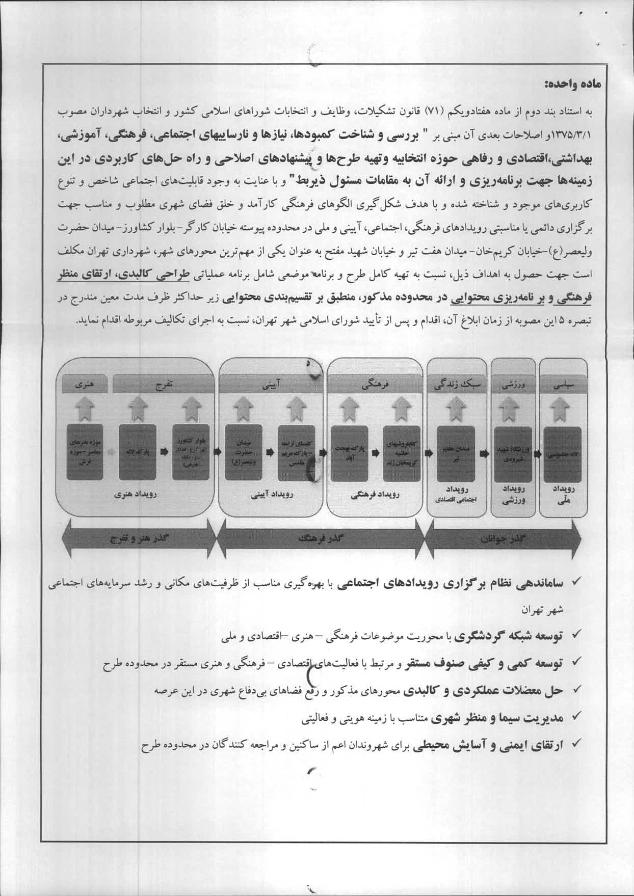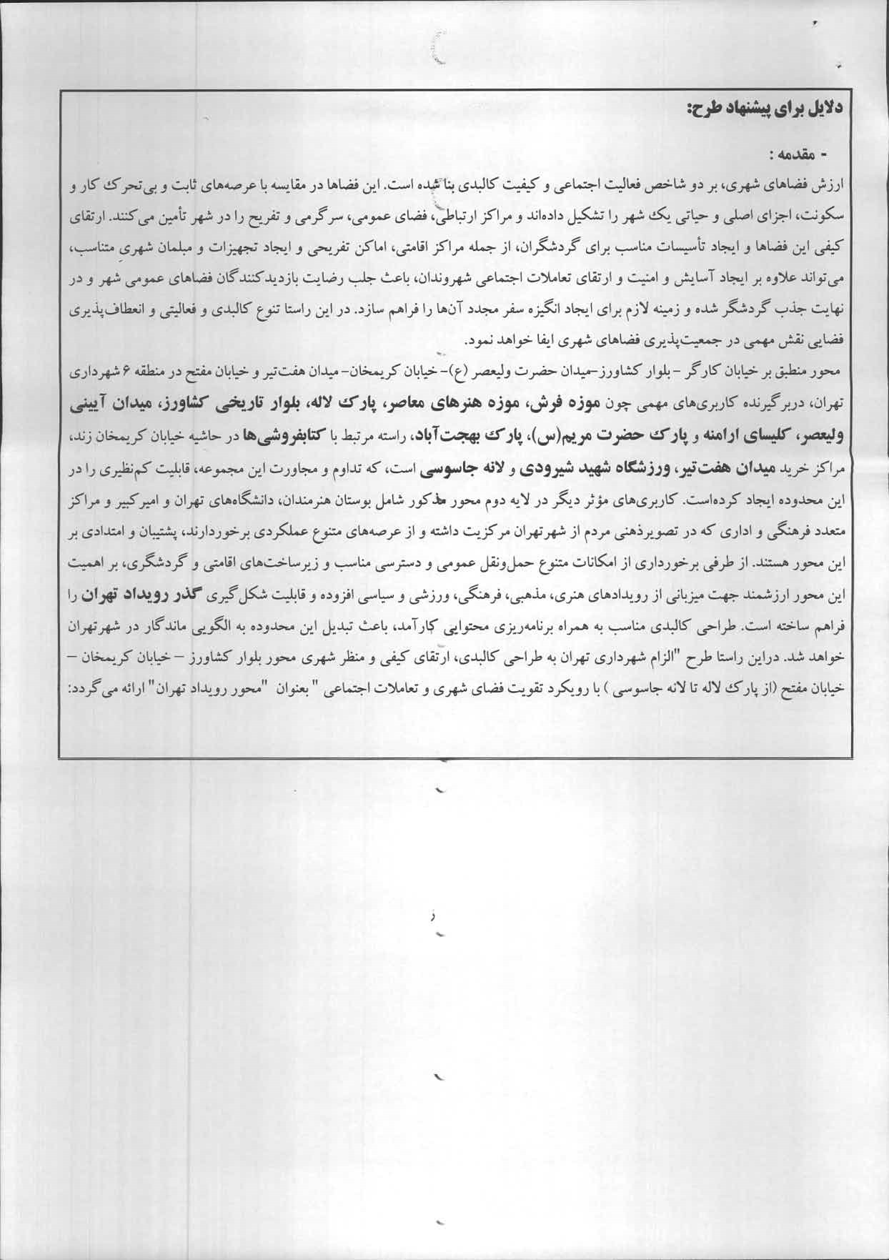 الزام شهرداري تهران به طراحي كالبدي، ارتقاي كيفي و منظر شهري محور بلوار كشاورز - خيابان كريمخان - خيابان مفتح (از پارك لاله تا لانه جاسوسي) با رويكرد تقويت فضاهاي شهري و تعاملات اجتماعي
