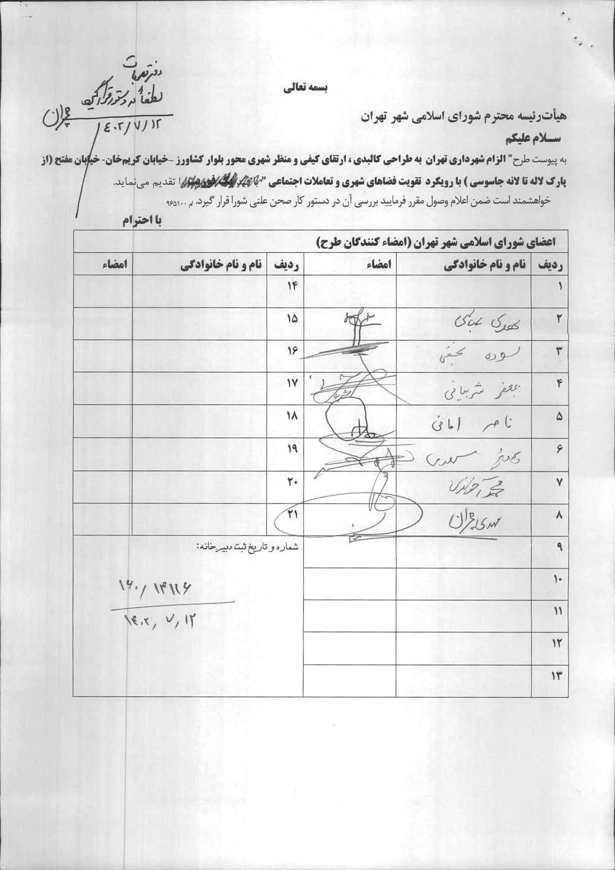 الزام شهرداري تهران به طراحي كالبدي، ارتقاي كيفي و منظر شهري محور بلوار كشاورز - خيابان كريمخان - خيابان مفتح (از پارك لاله تا لانه جاسوسي) با رويكرد تقويت فضاهاي شهري و تعاملات اجتماعي