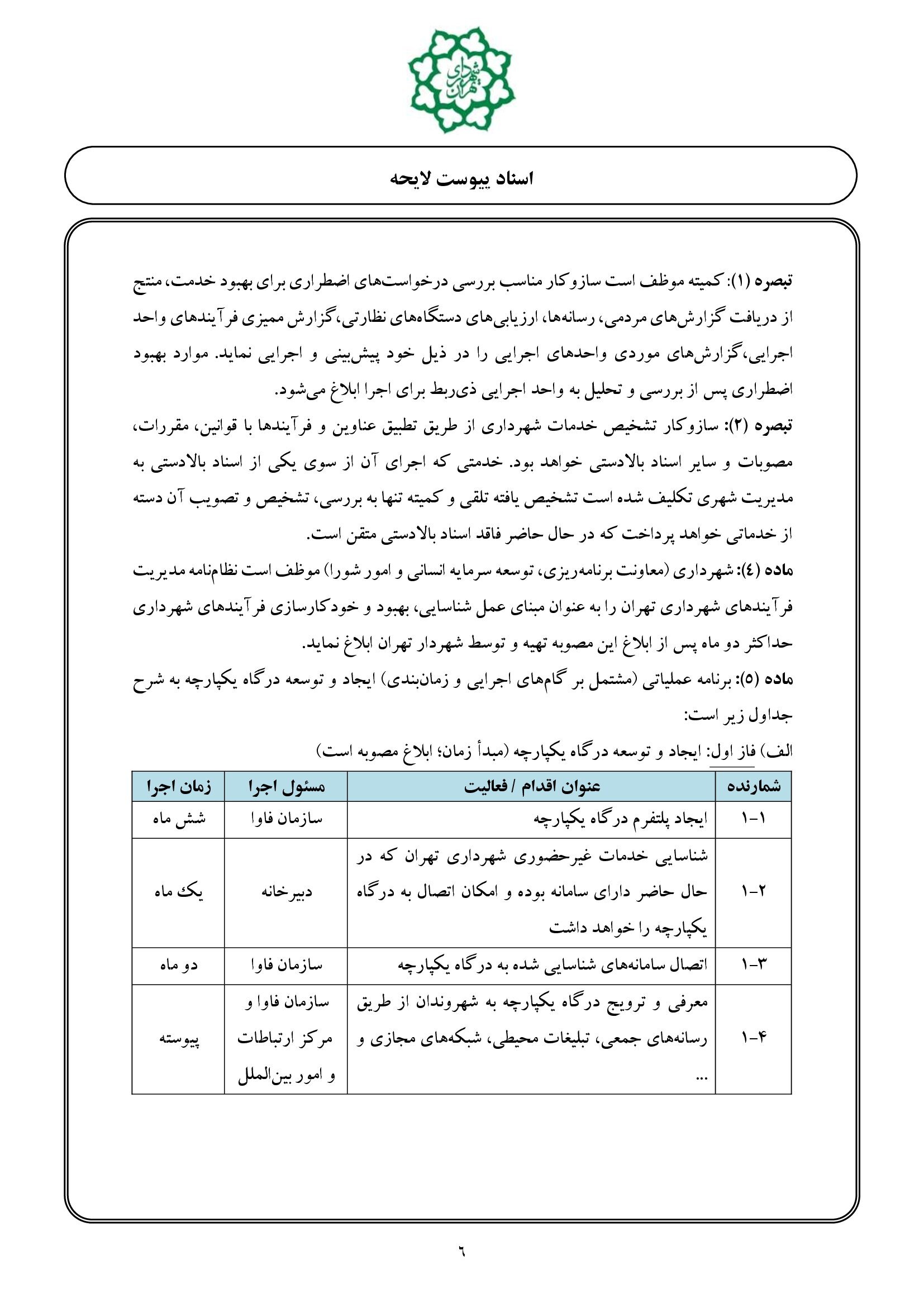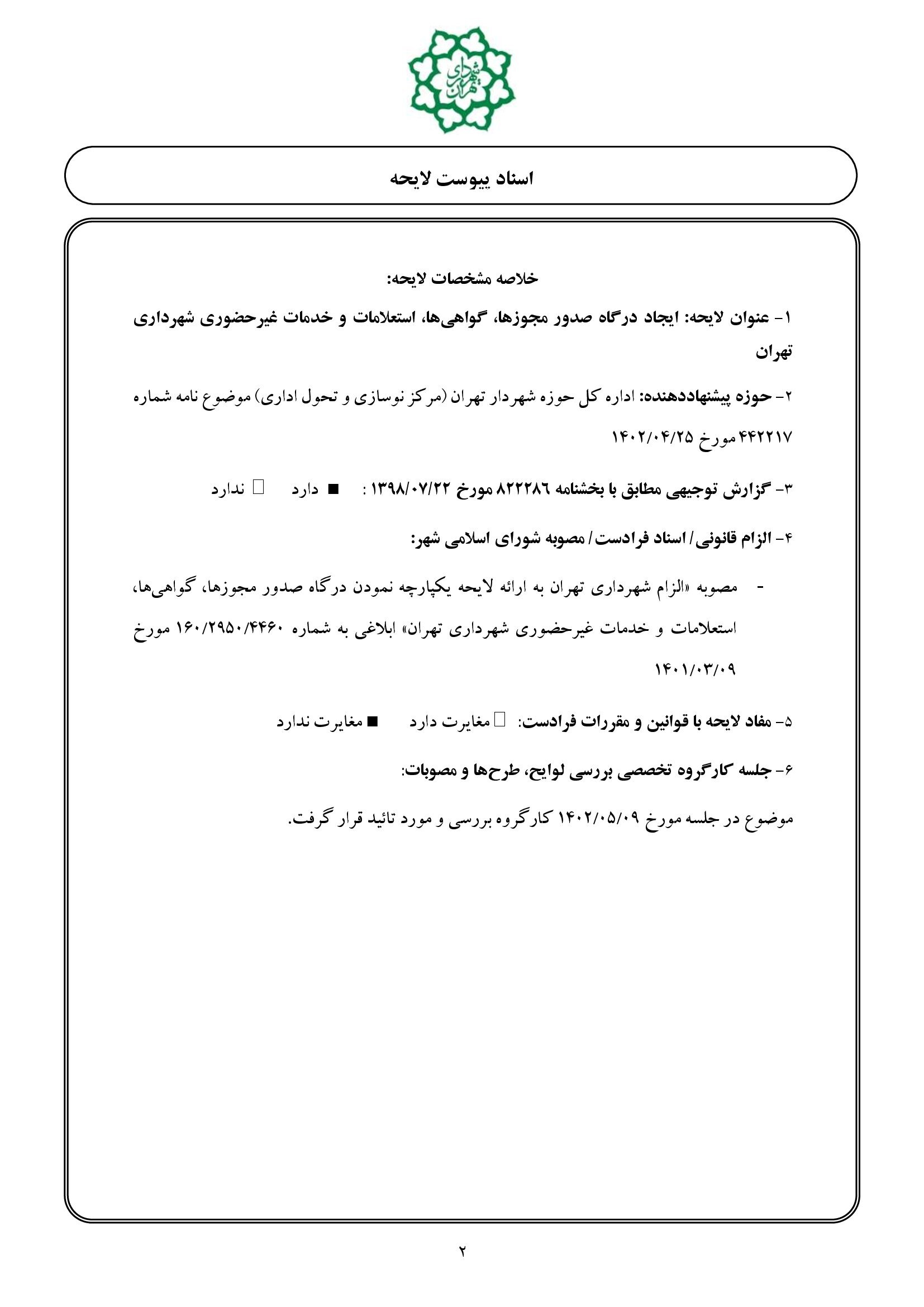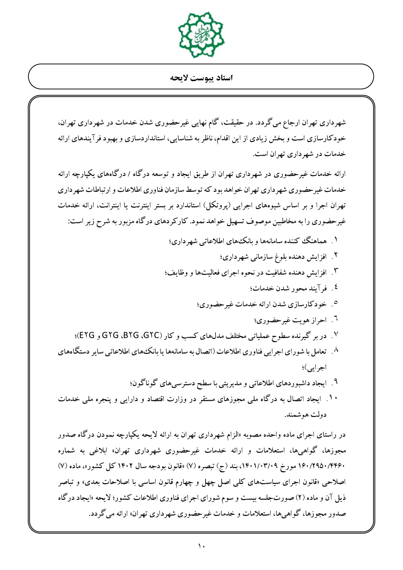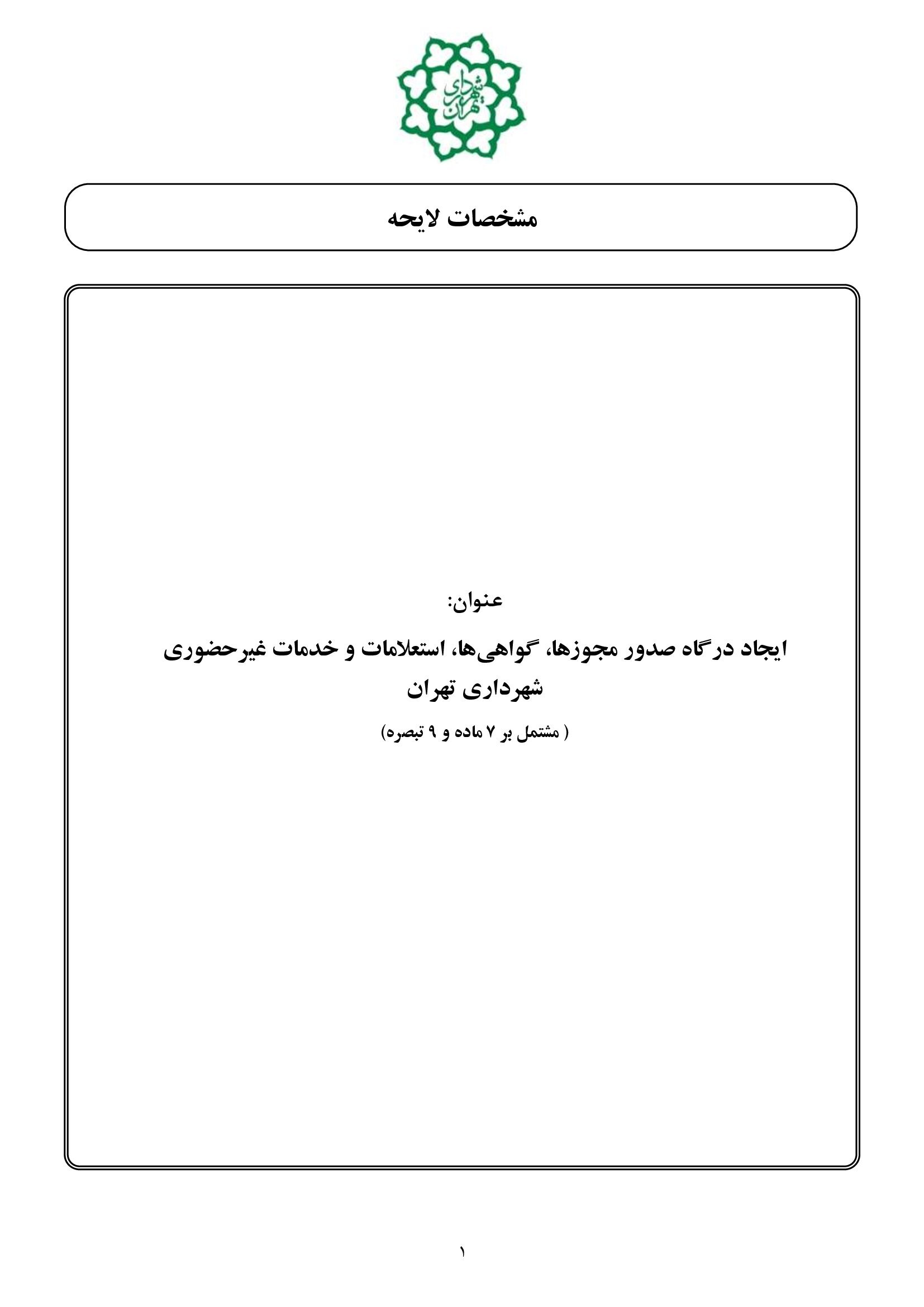 ايجاد درگاه صدور مجوزها، گواهيها، استعلامات و خدمات غير حضوري شهرداري تهران