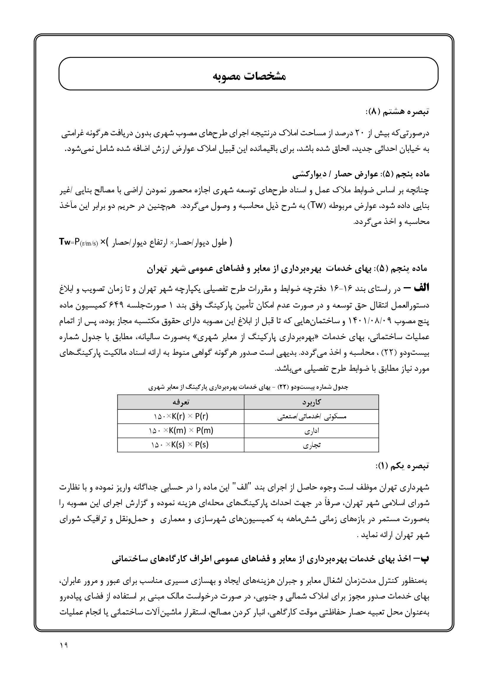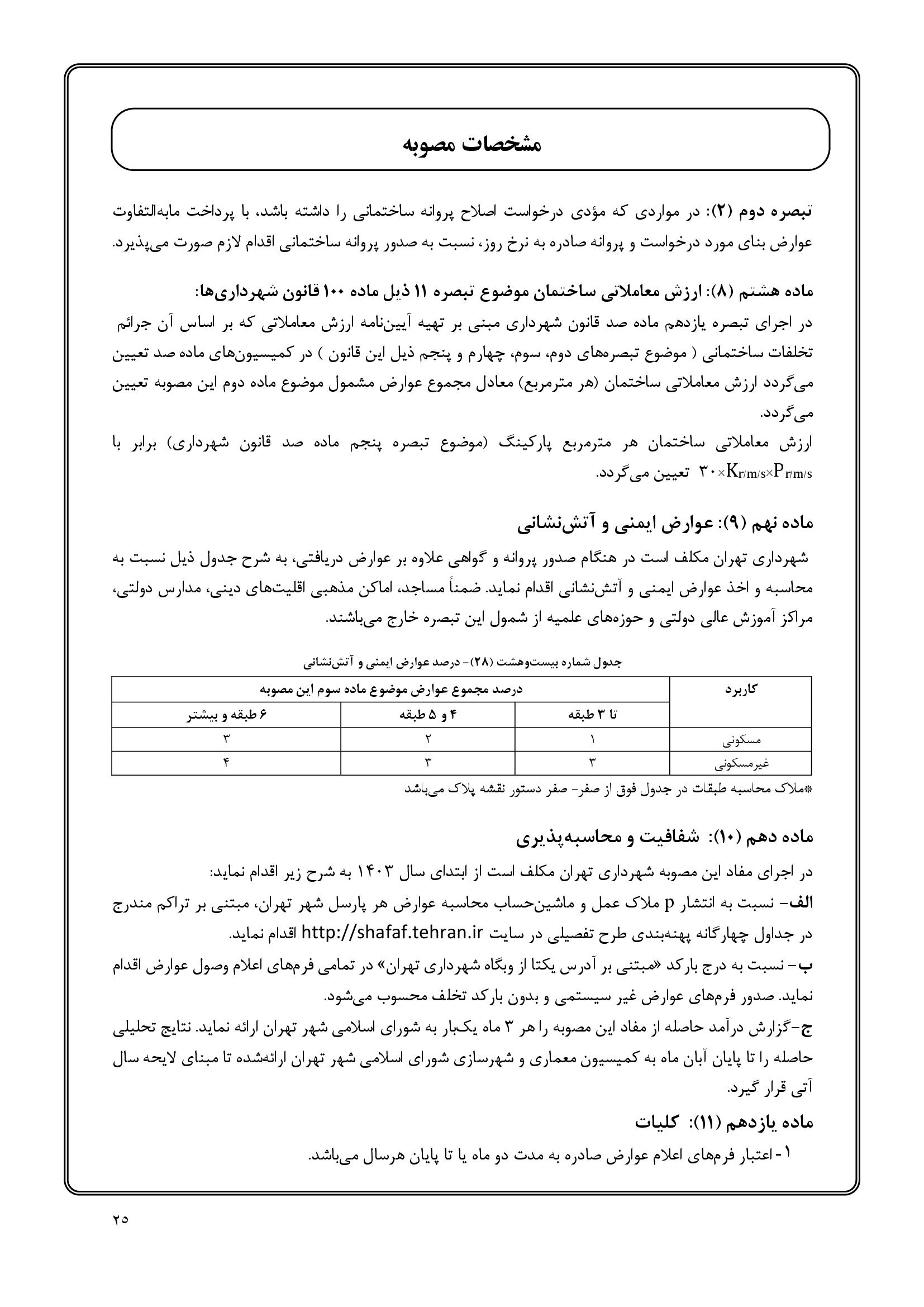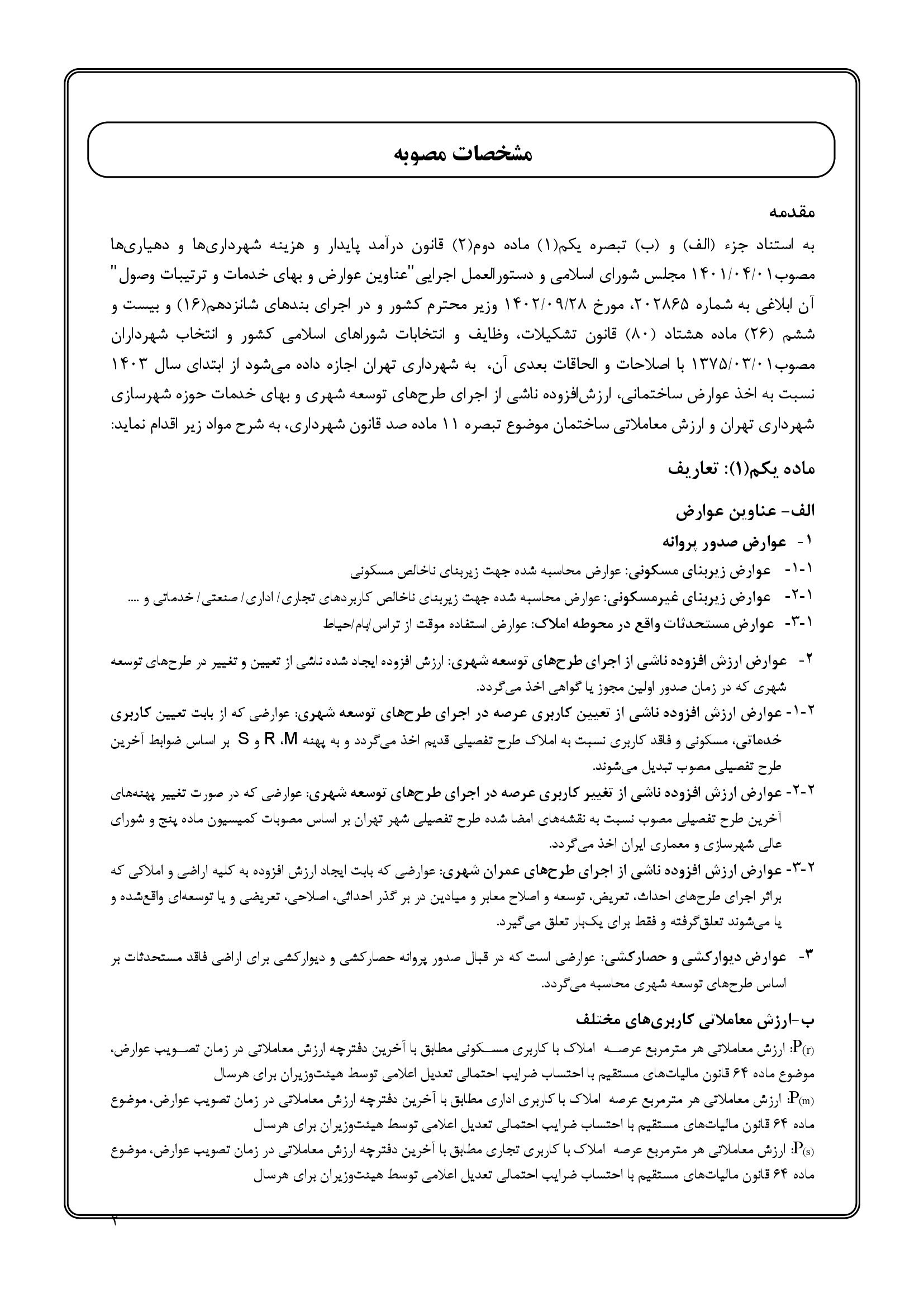 عوارض ساختماني، ارزش افزوده ناشي از طرحهاي توسعه شهري و بهاي خدمات حوزه شهرسازي و ارزش معاملاتي موضوع تبصره 11 ماده صد قانون شهرداري تهران براي اجراء در سال 1403