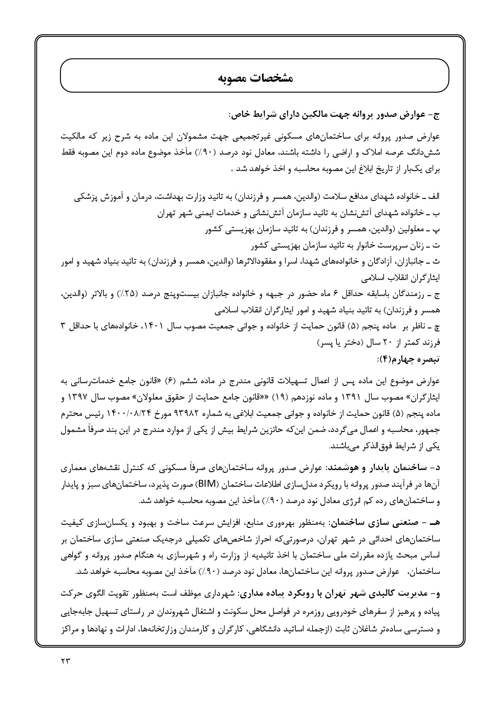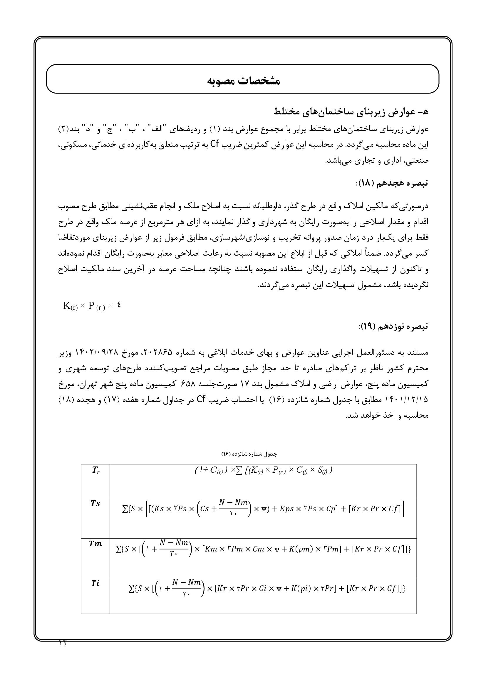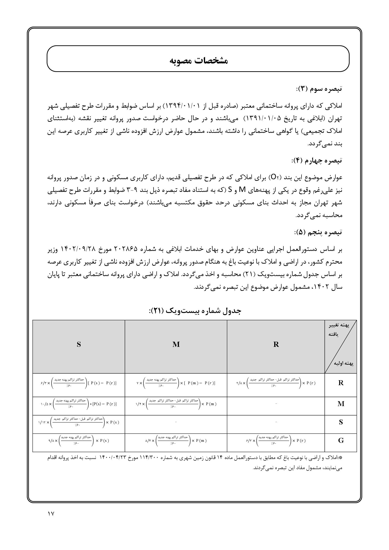 عوارض ساختماني، ارزش افزوده ناشي از طرحهاي توسعه شهري و بهاي خدمات حوزه شهرسازي و ارزش معاملاتي موضوع تبصره 11 ماده صد قانون شهرداري تهران براي اجراء در سال 1403