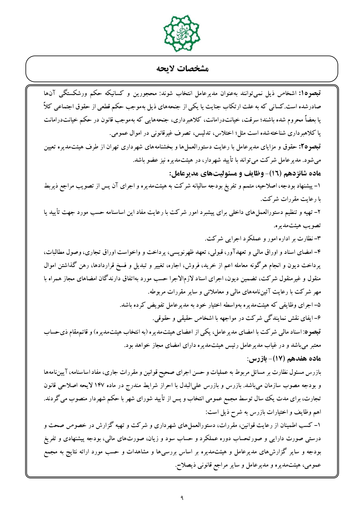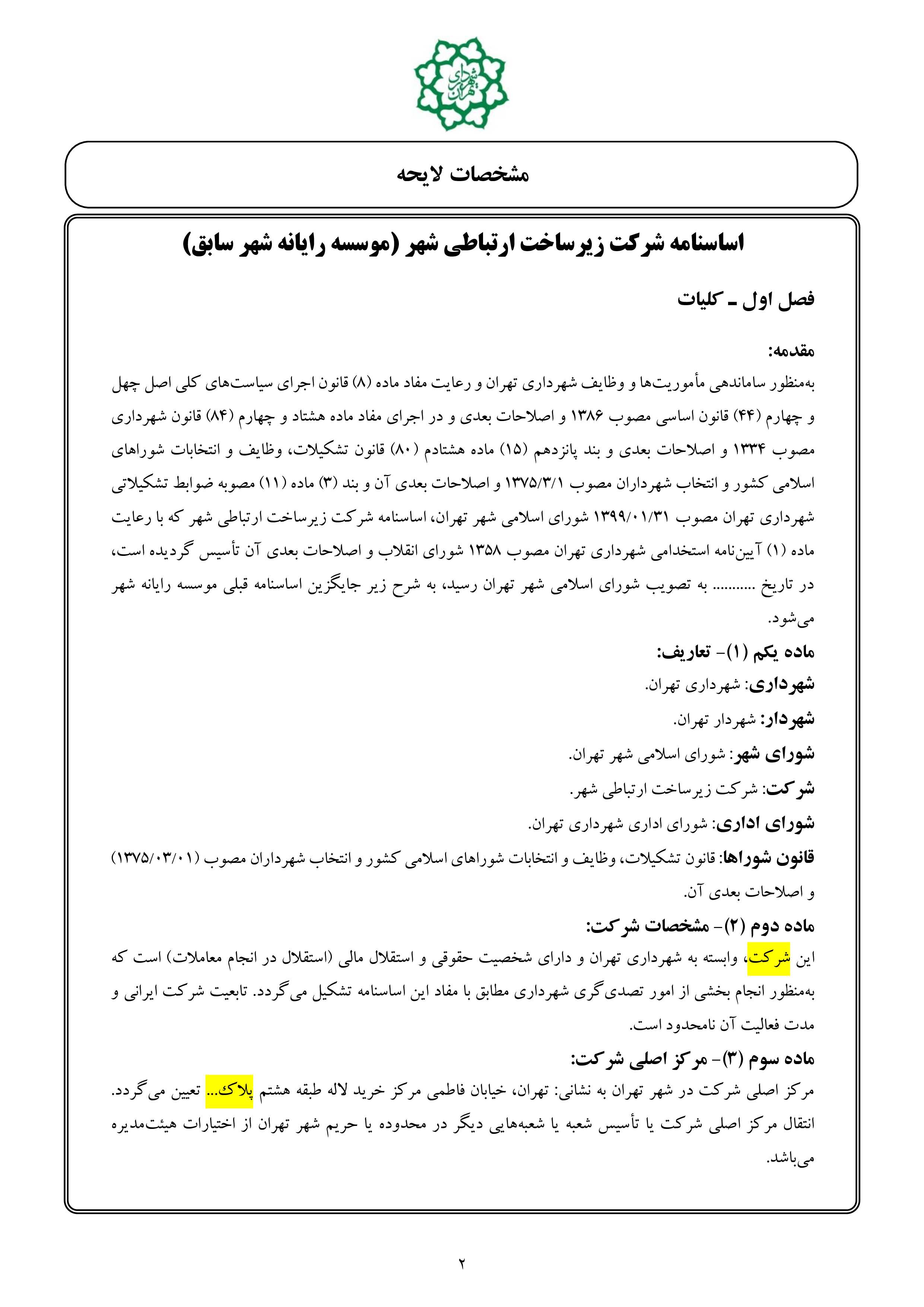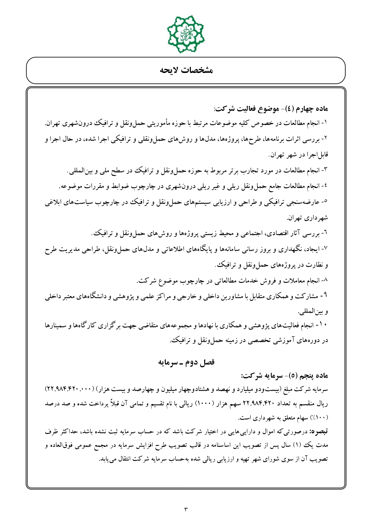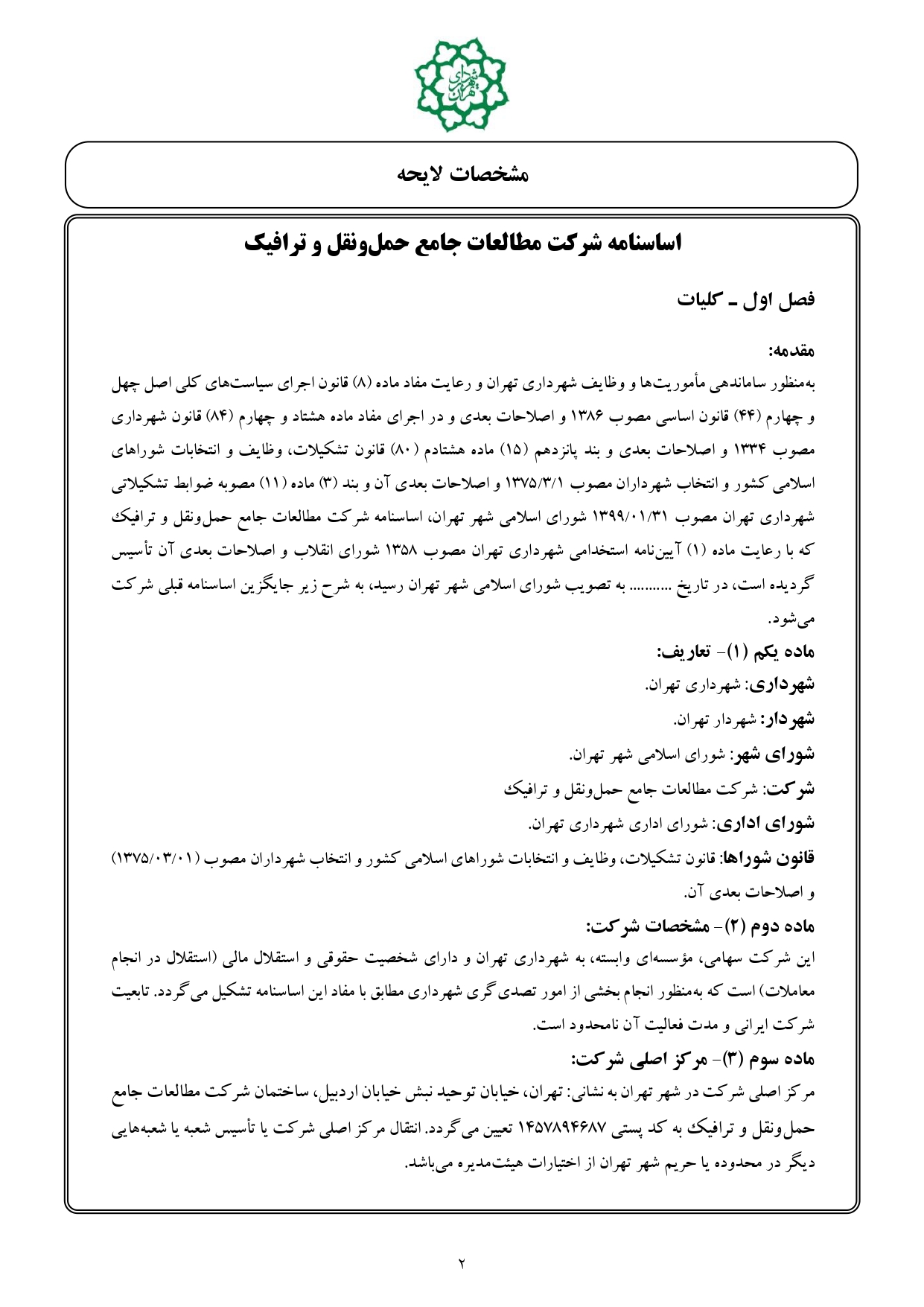 اساسنامه 4 شركت وابسته و تابعه شهرداري تهران