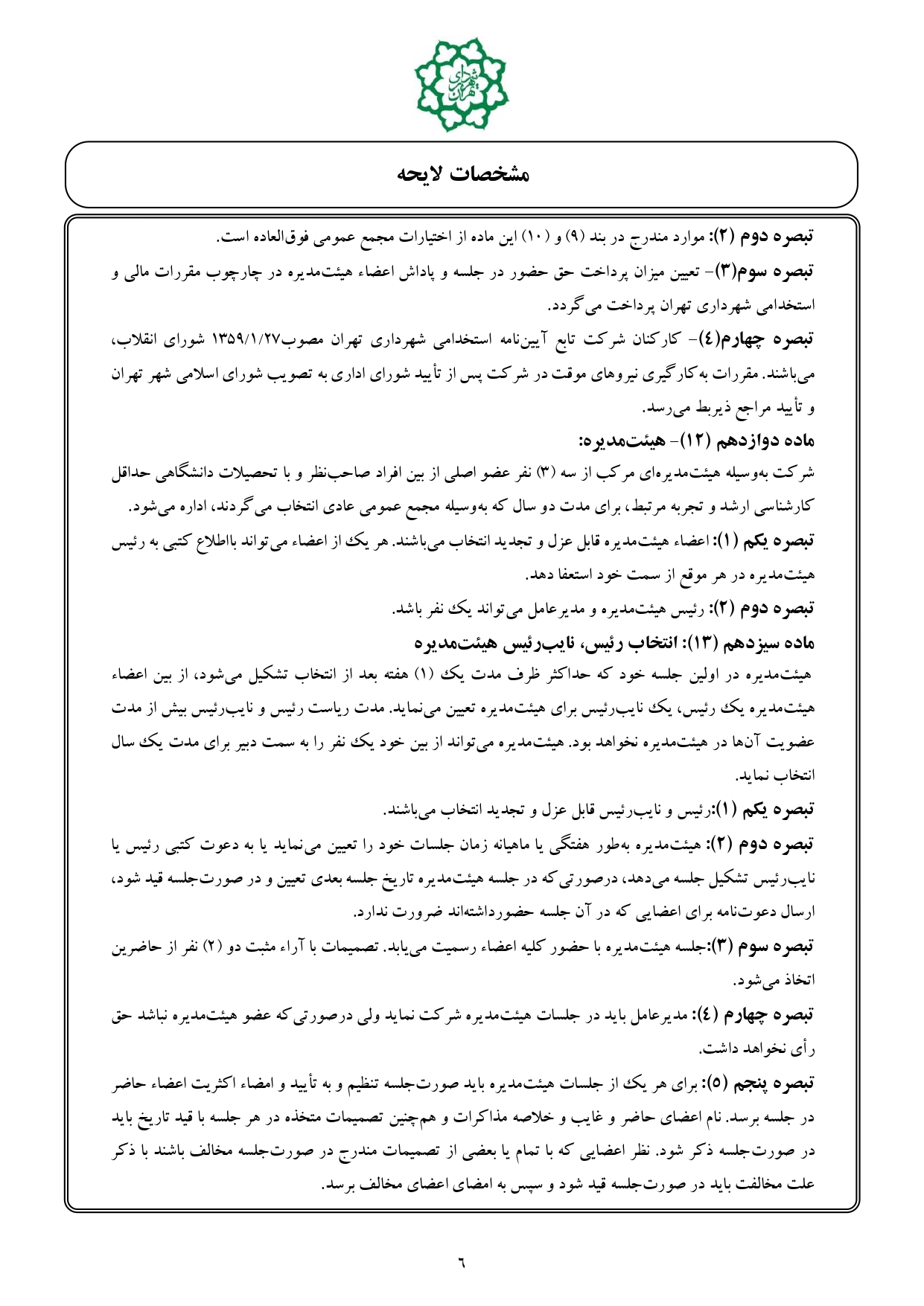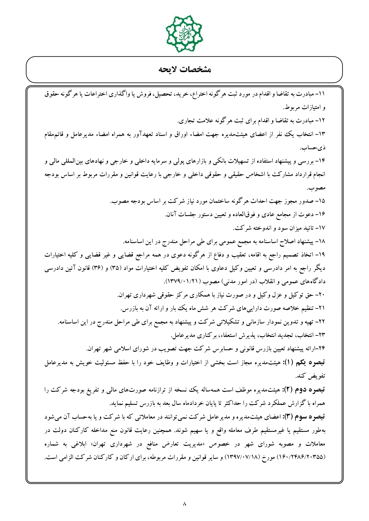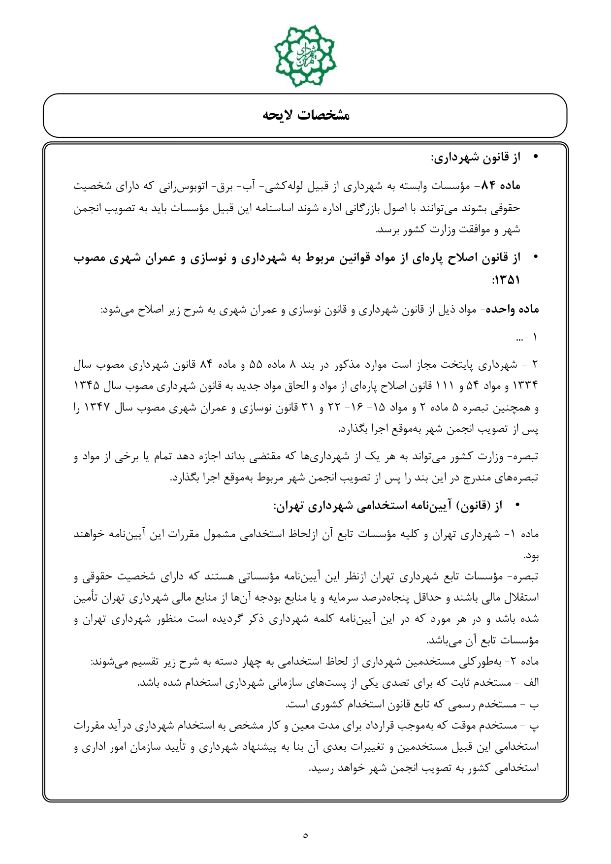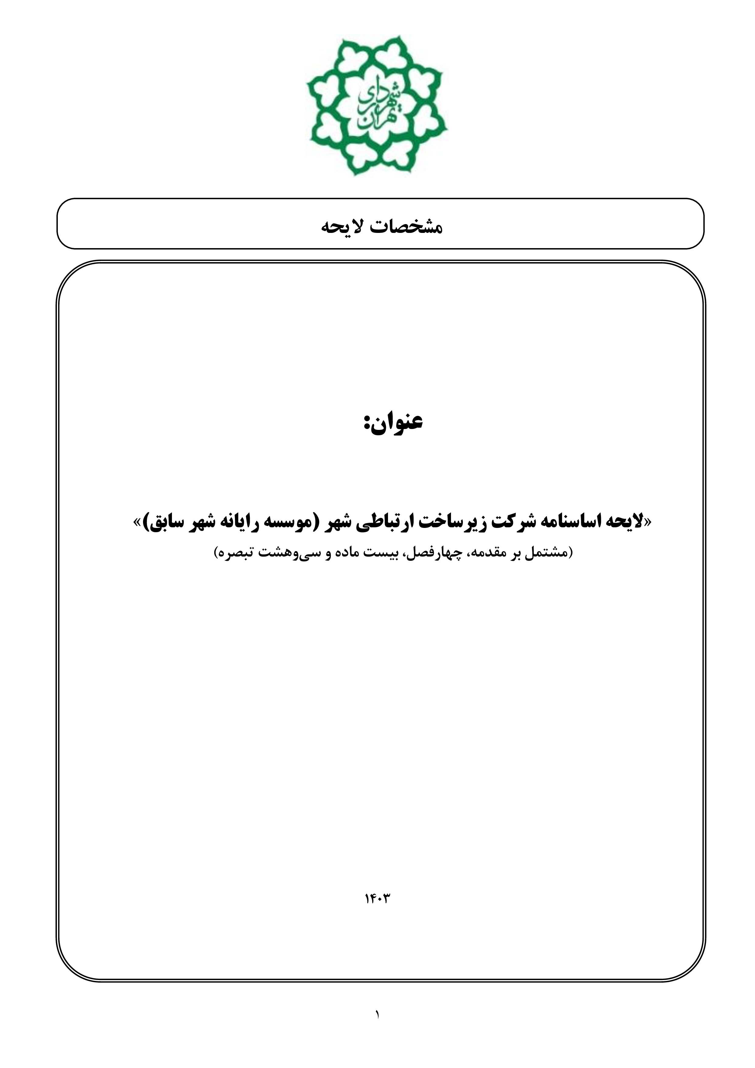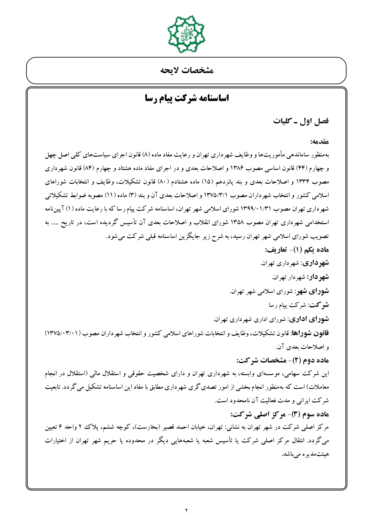 اساسنامه 4 شركت وابسته و تابعه شهرداري تهران