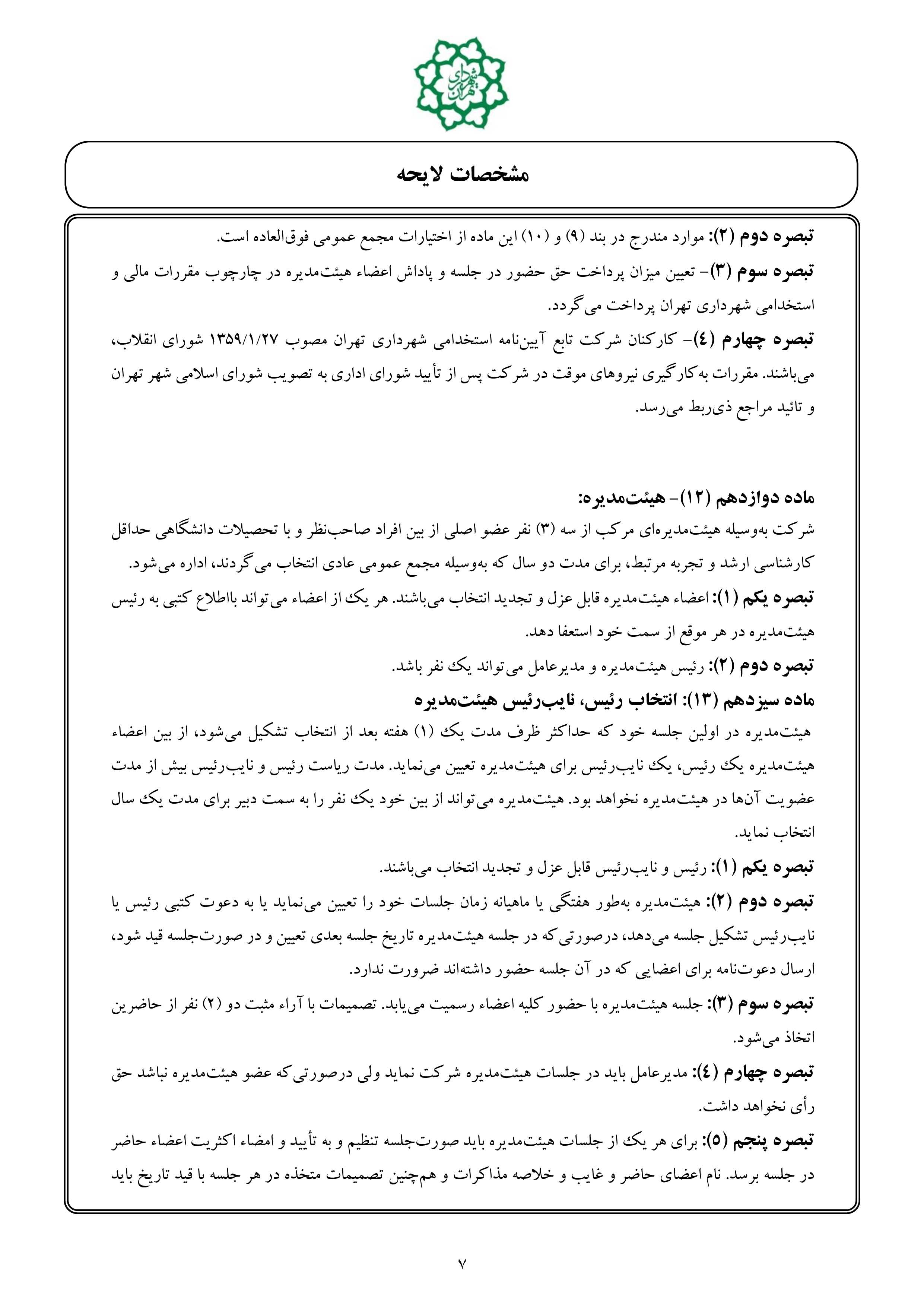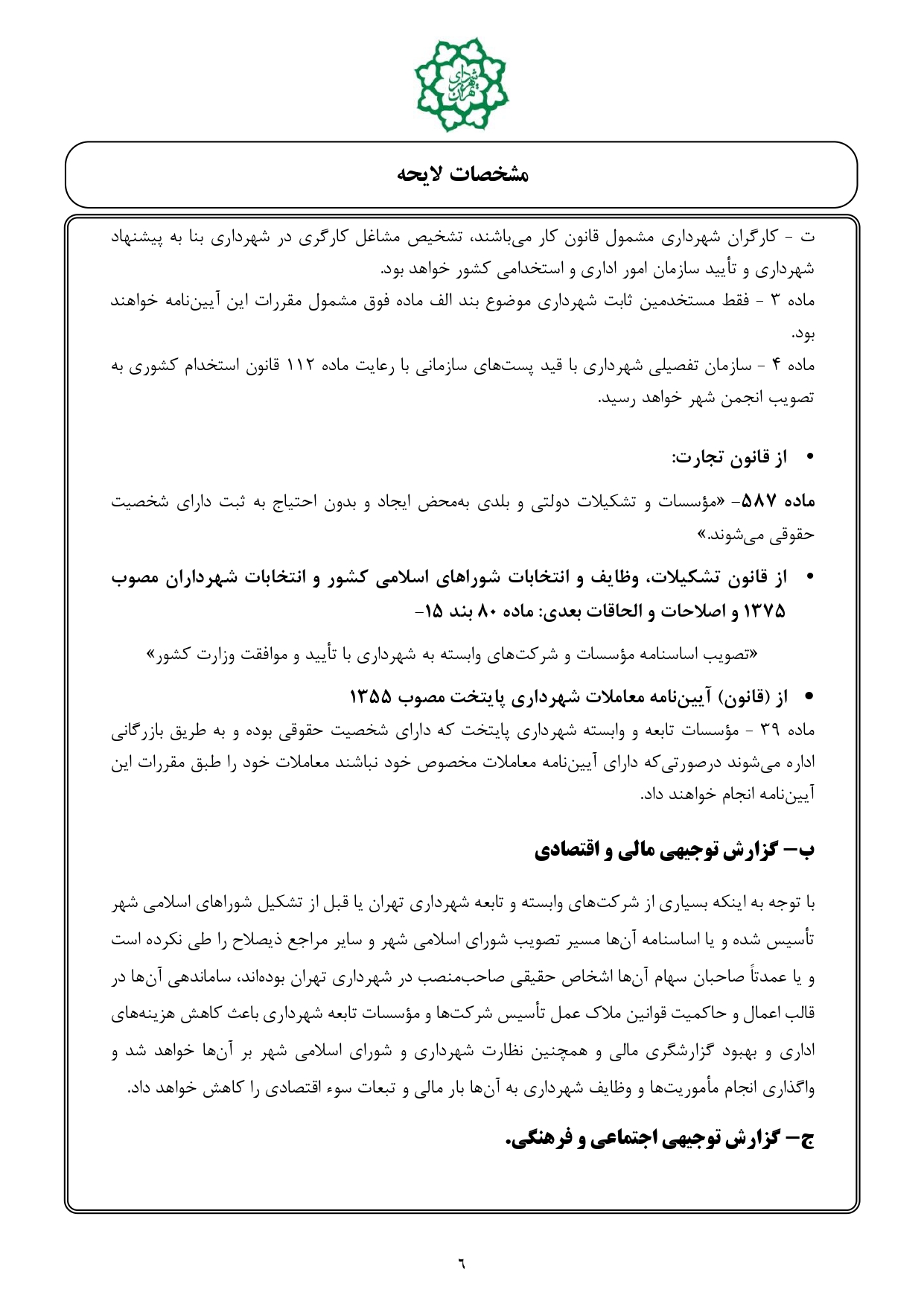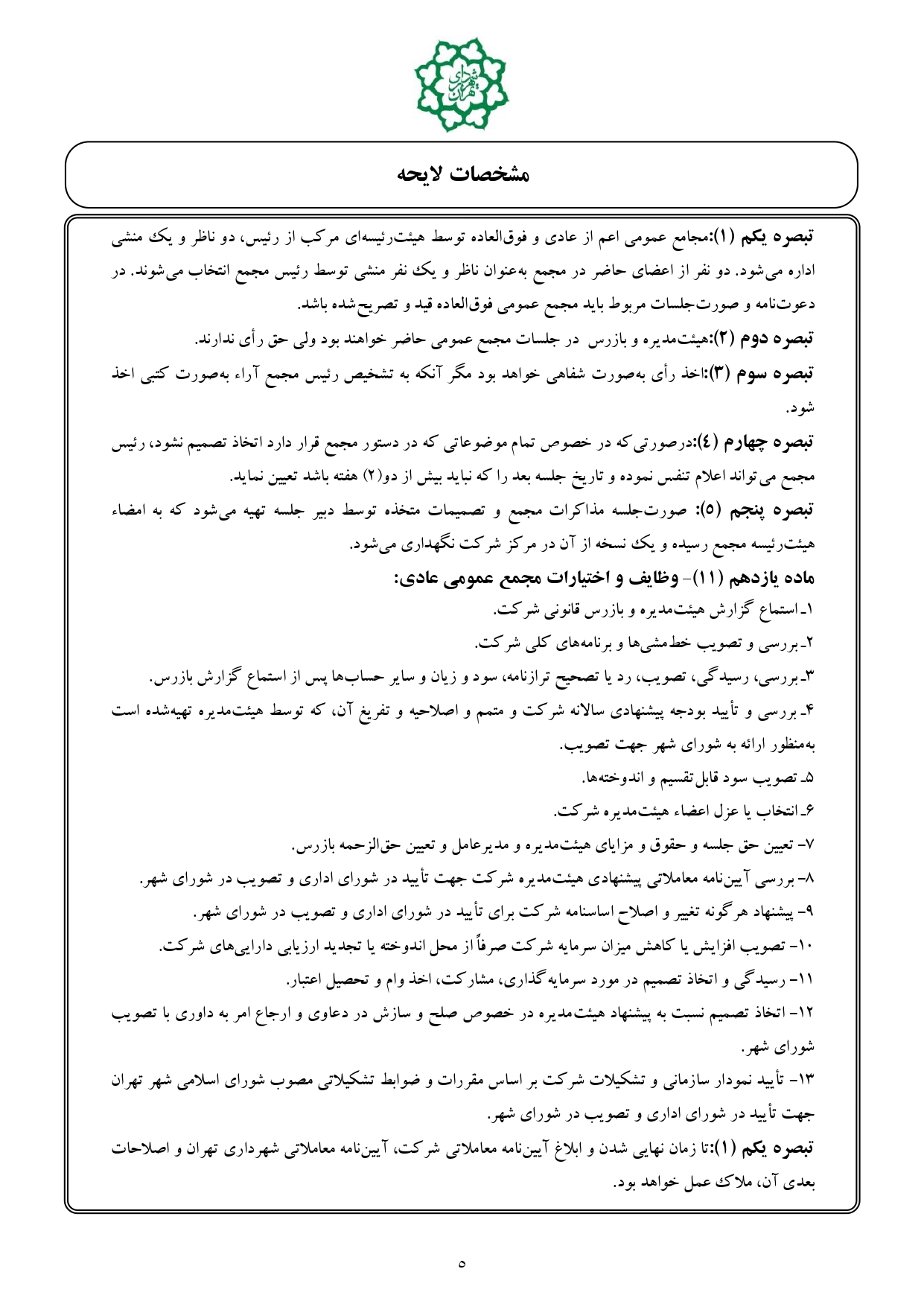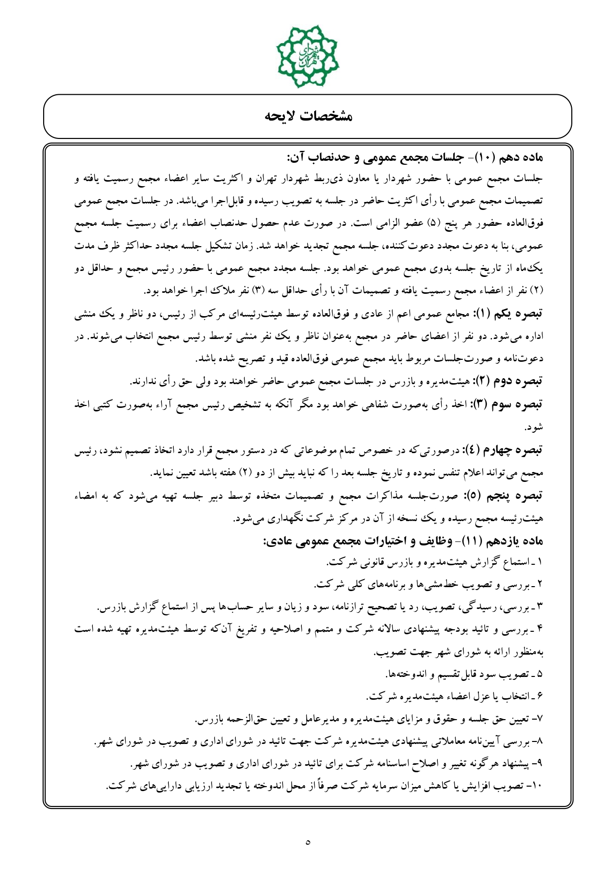 اساسنامه 4 شركت وابسته و تابعه شهرداري تهران