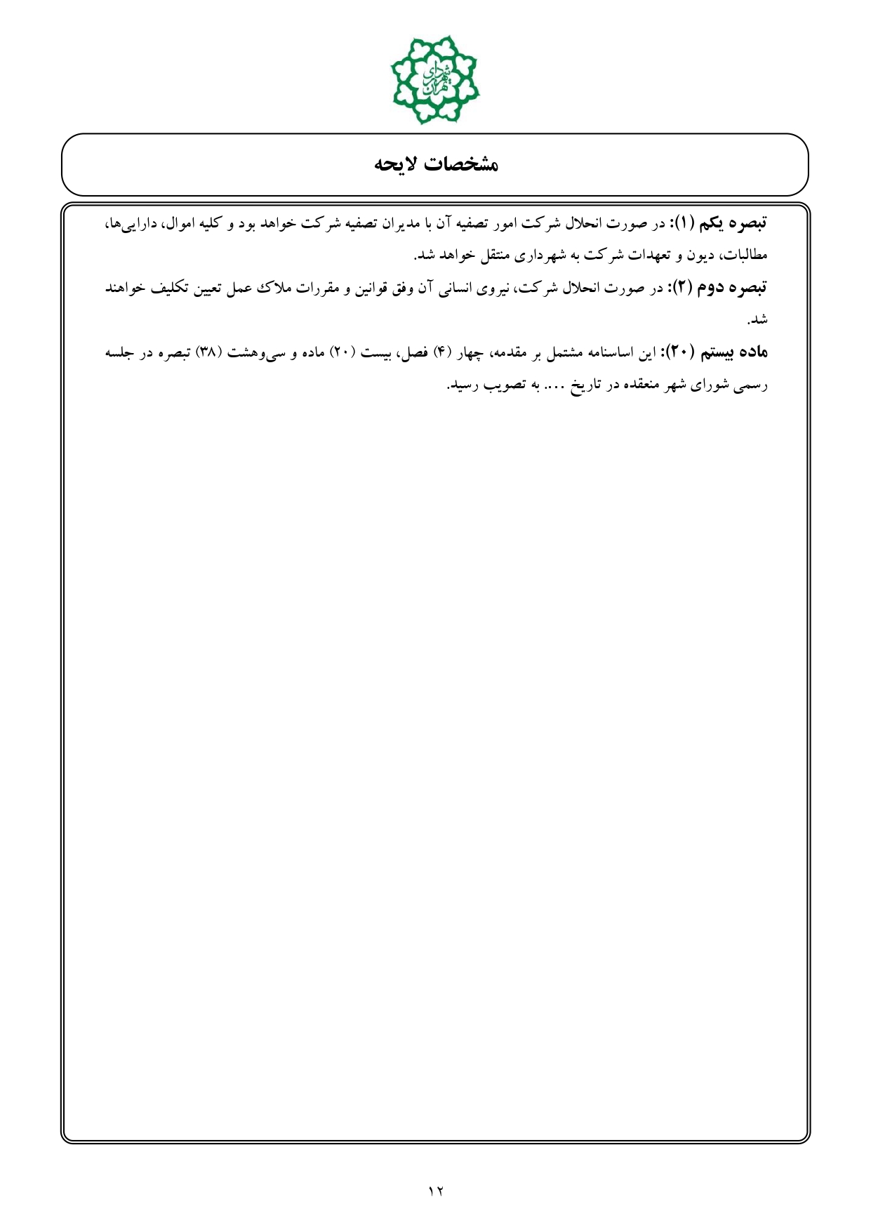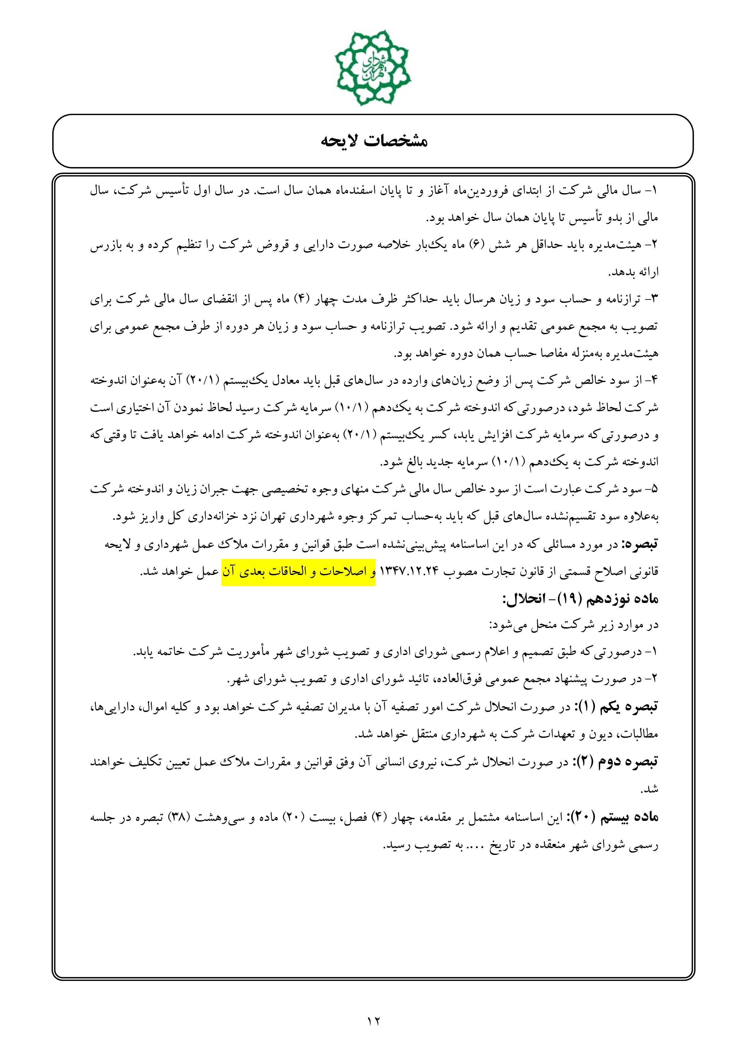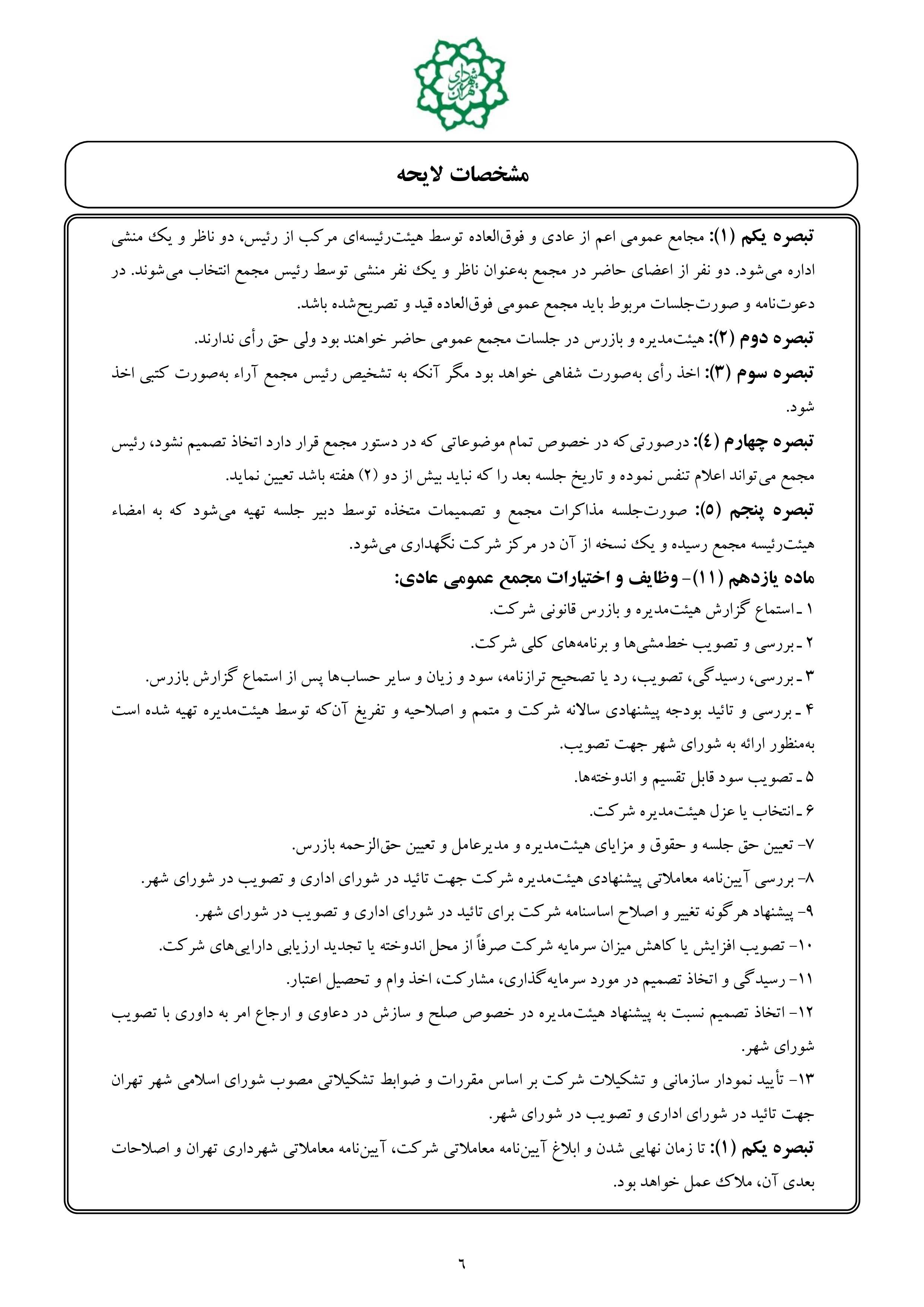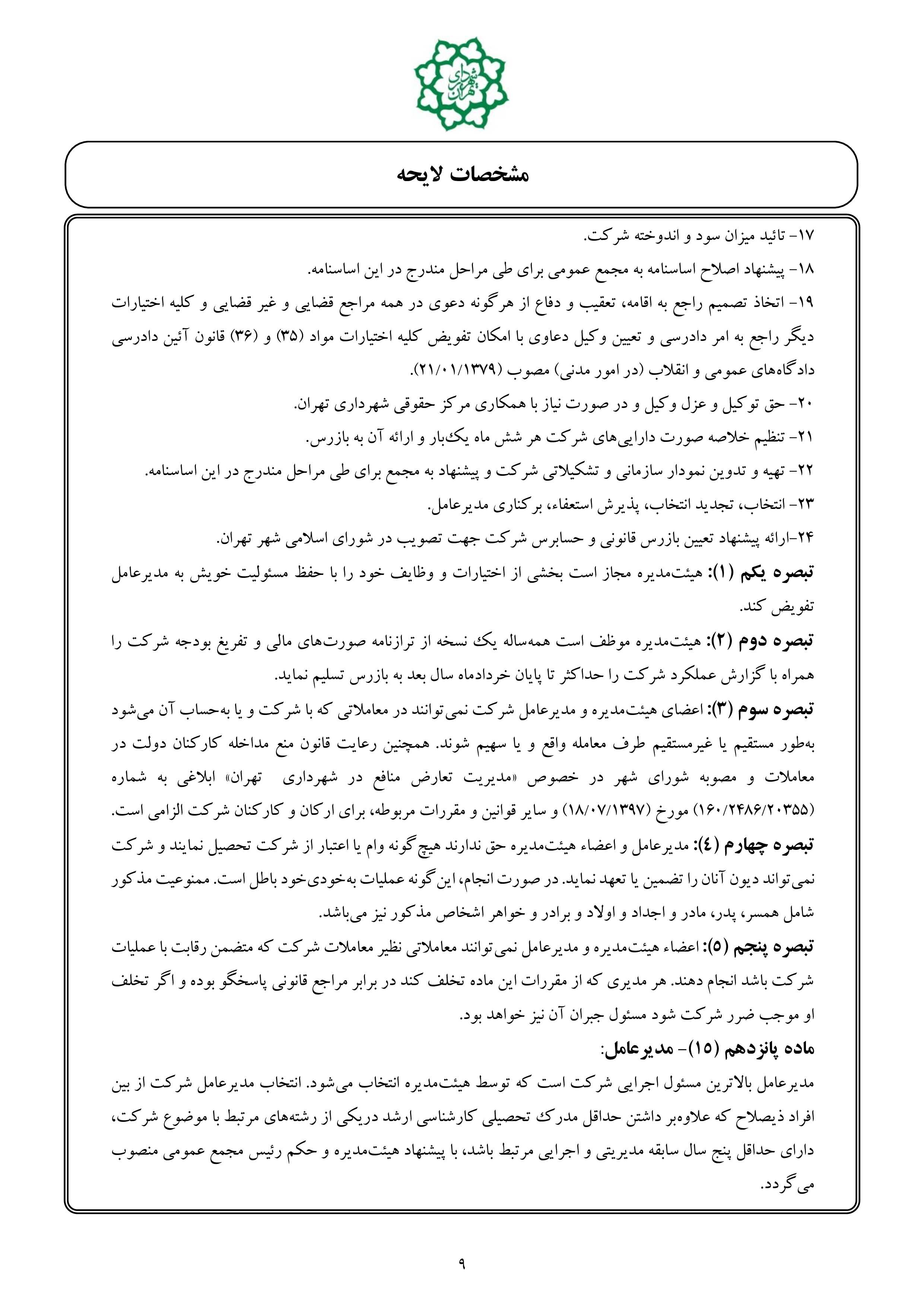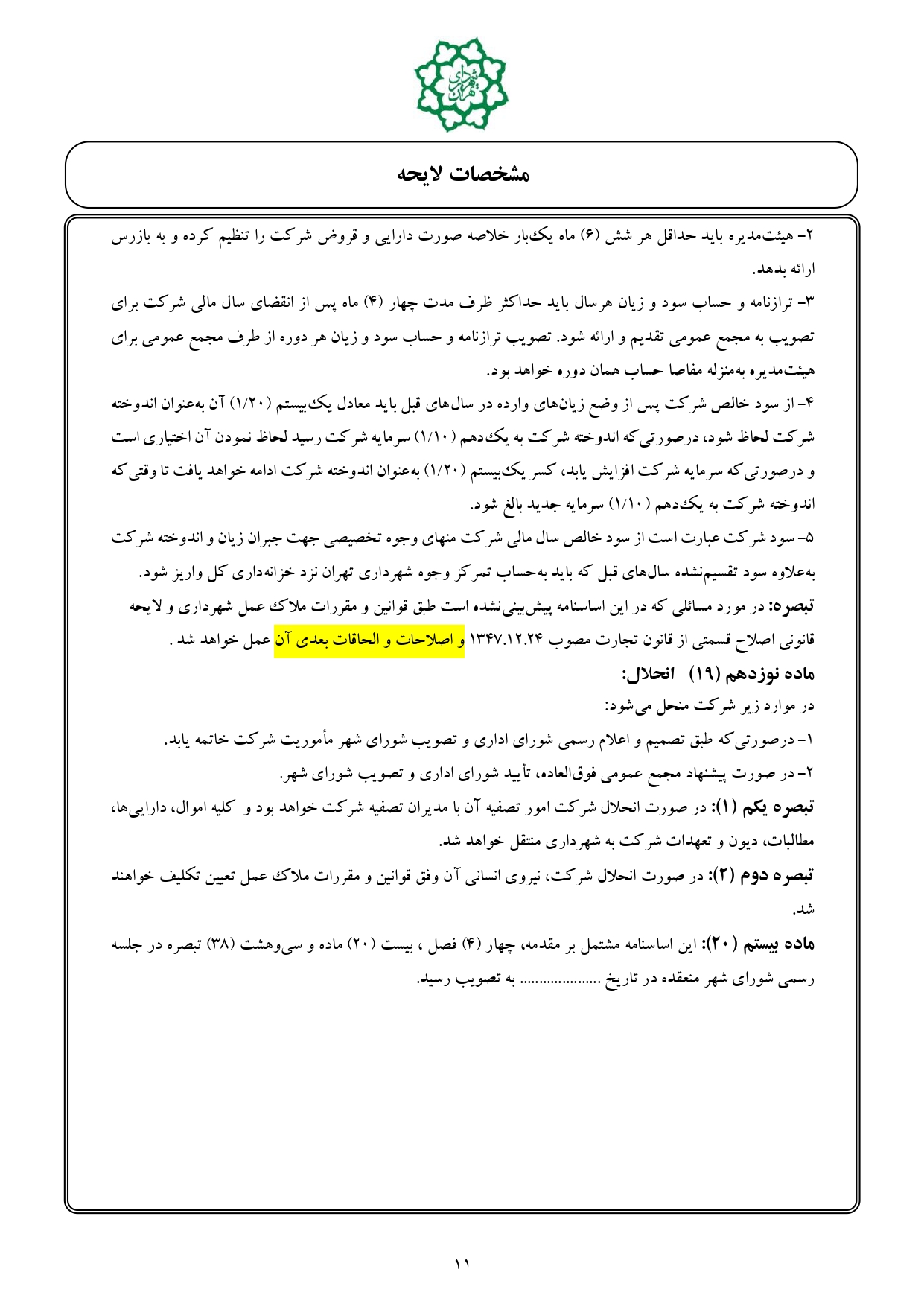 اساسنامه 4 شركت وابسته و تابعه شهرداري تهران