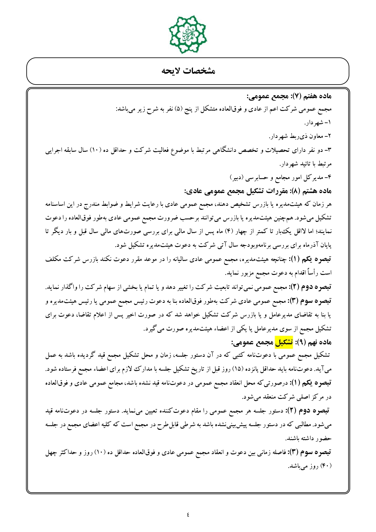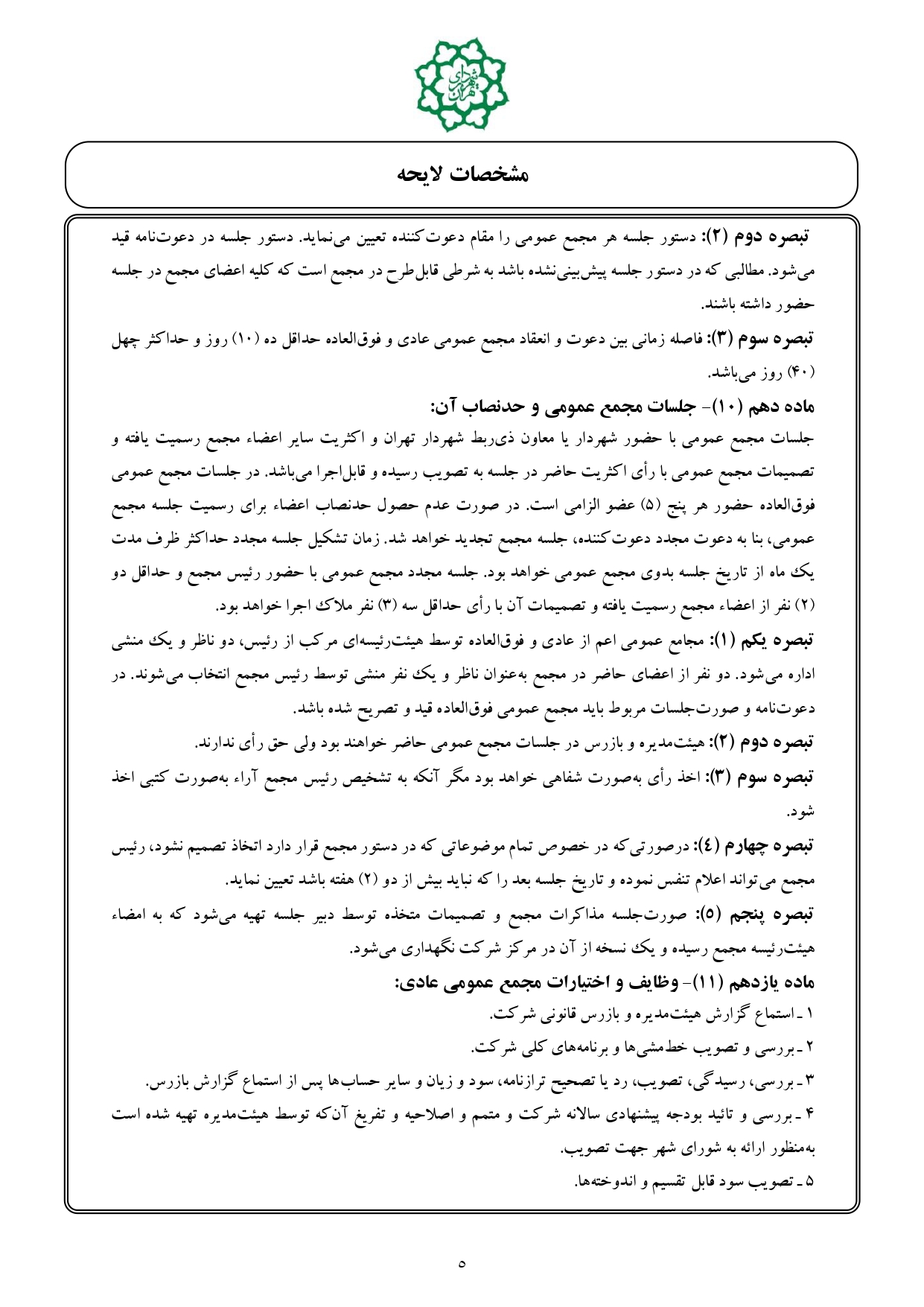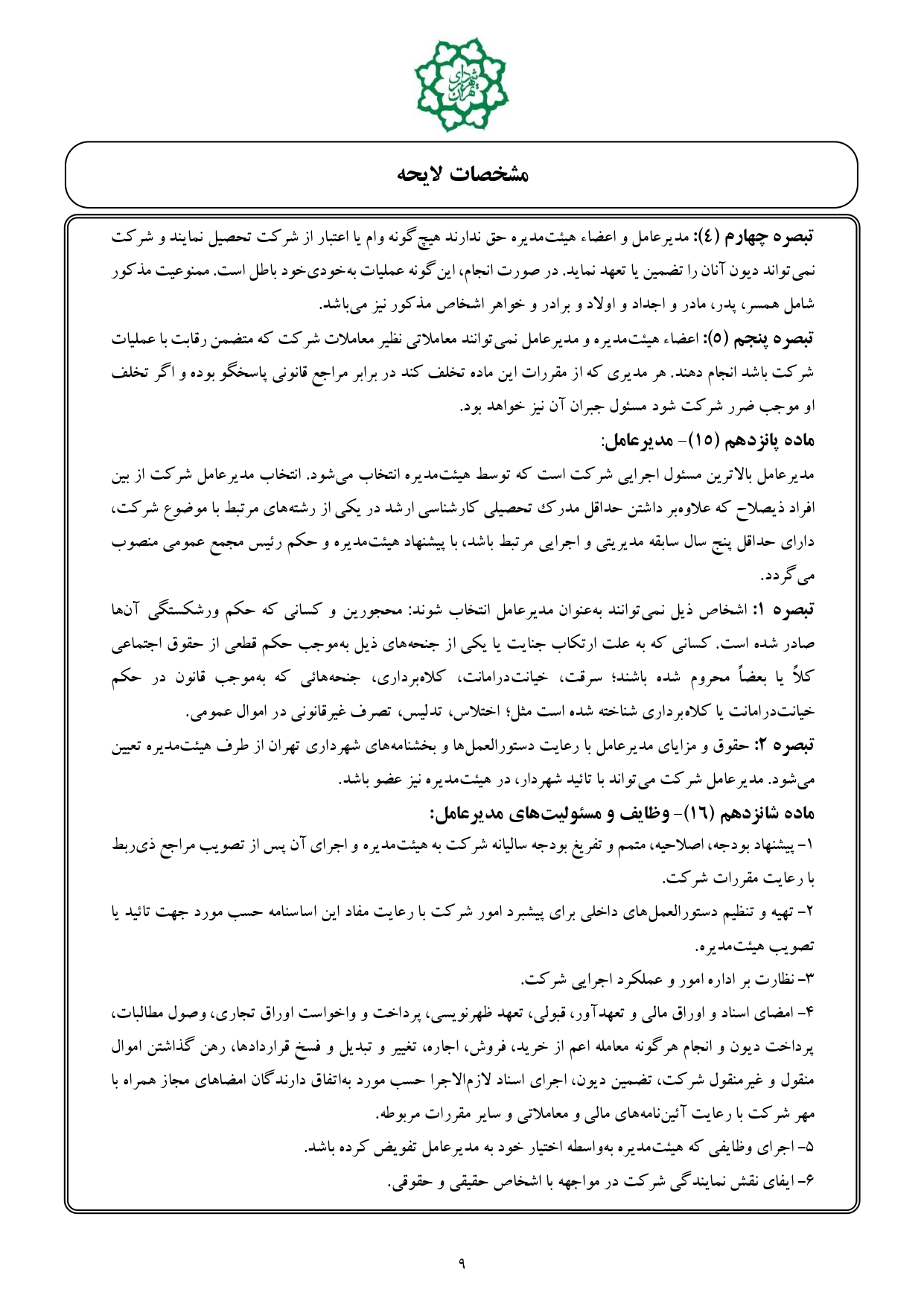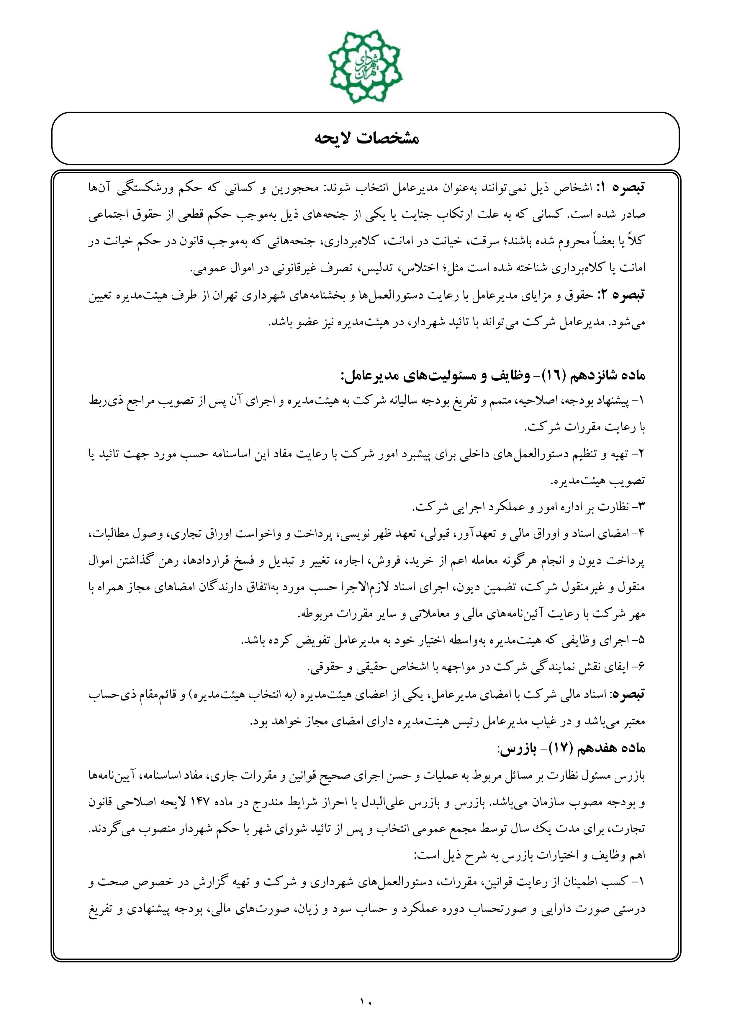 اساسنامه 4 شركت وابسته و تابعه شهرداري تهران