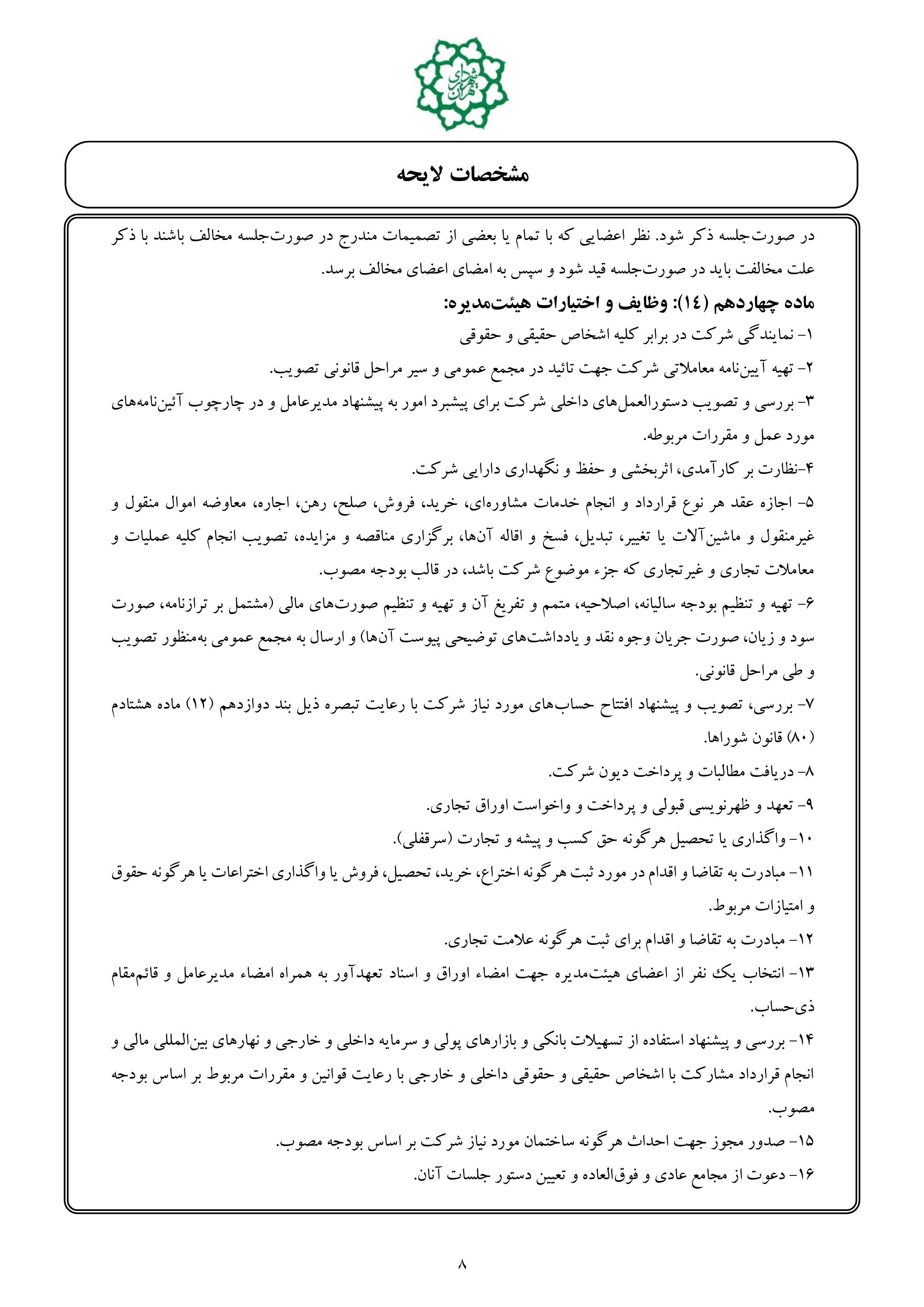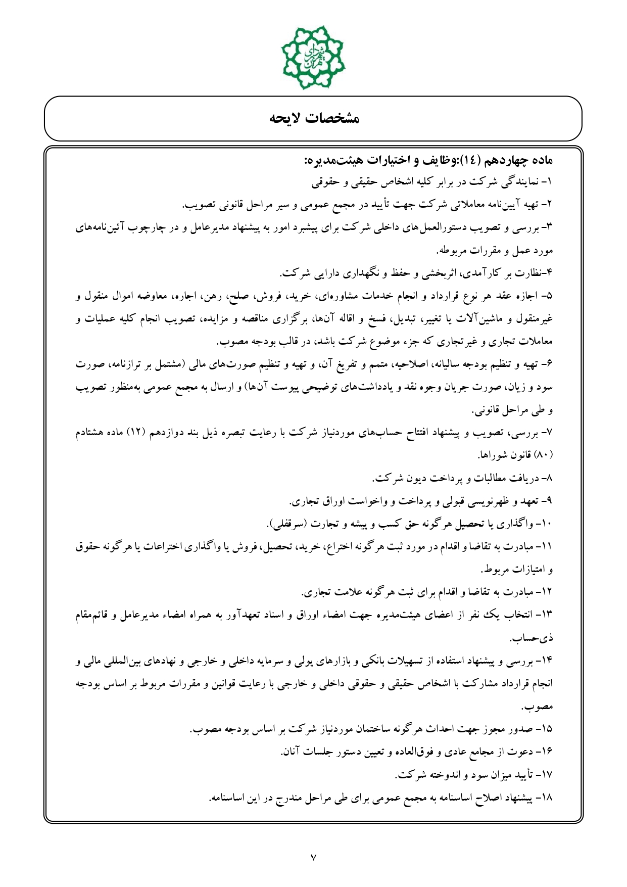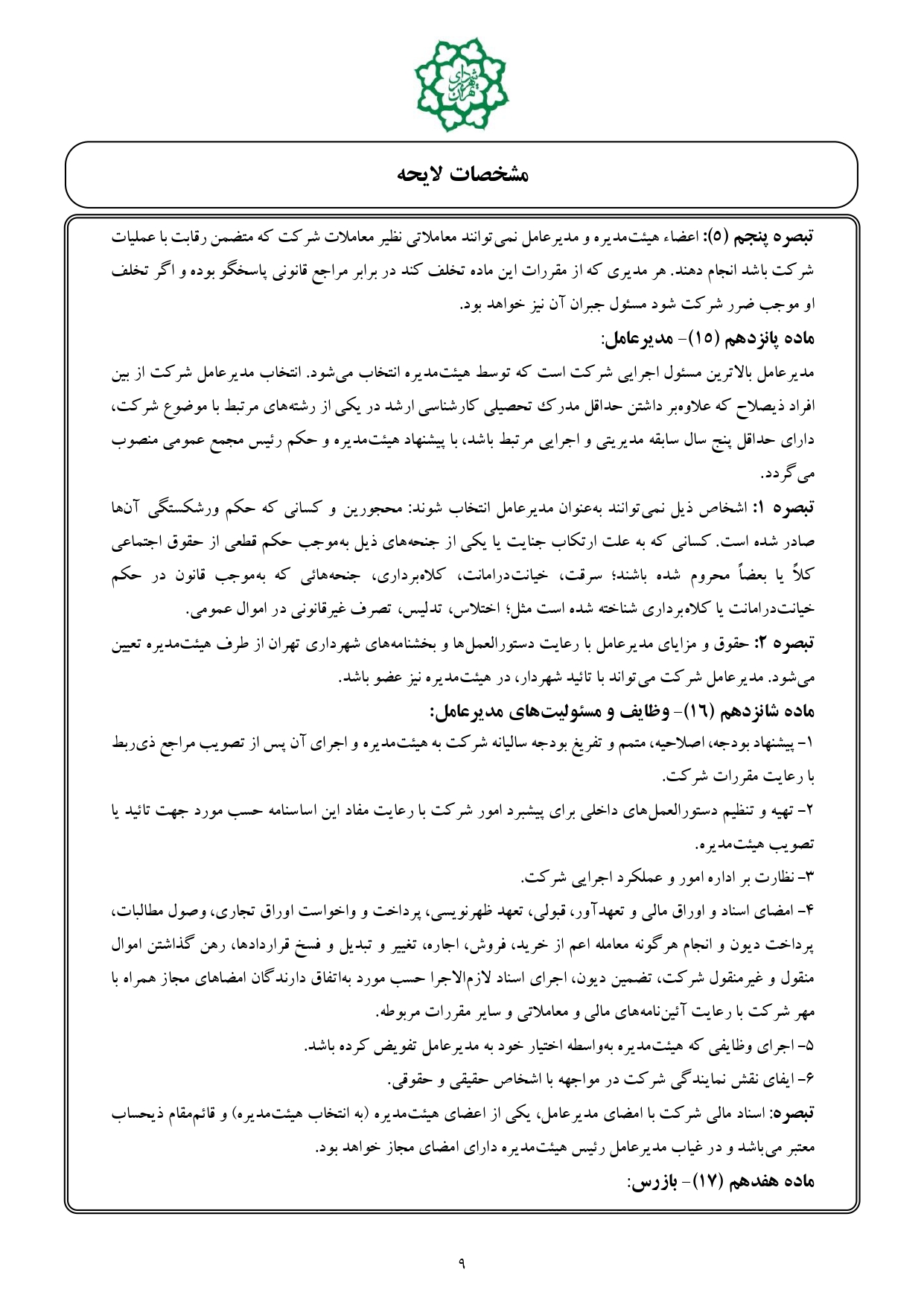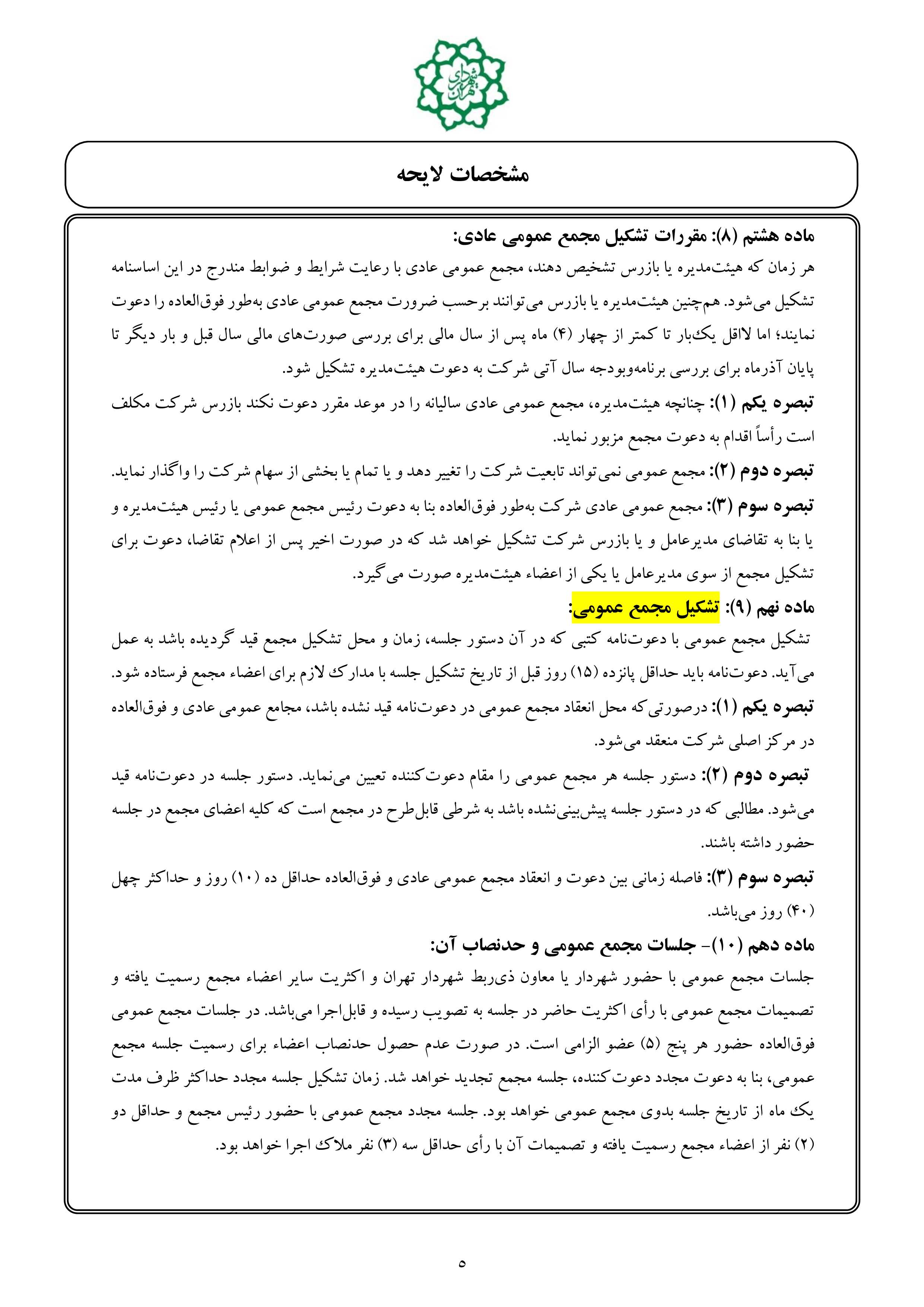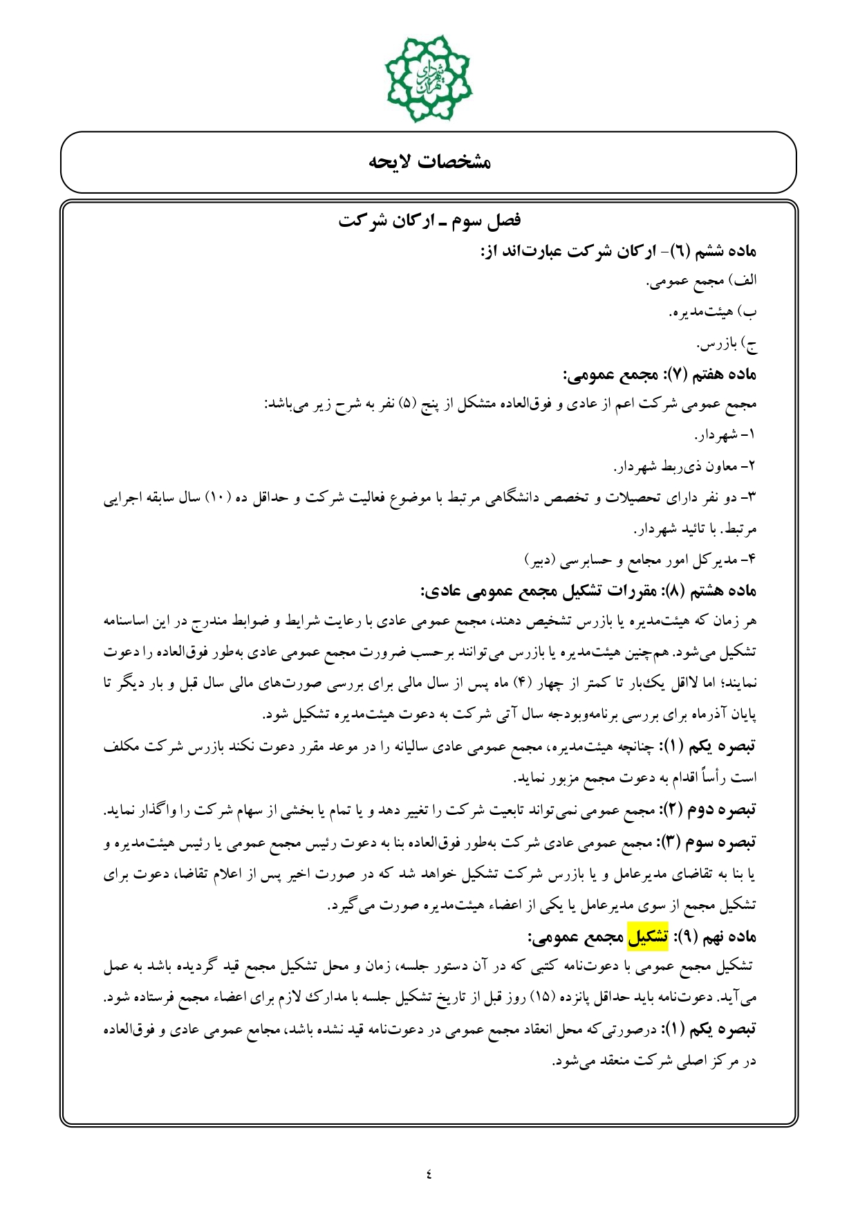 اساسنامه 4 شركت وابسته و تابعه شهرداري تهران