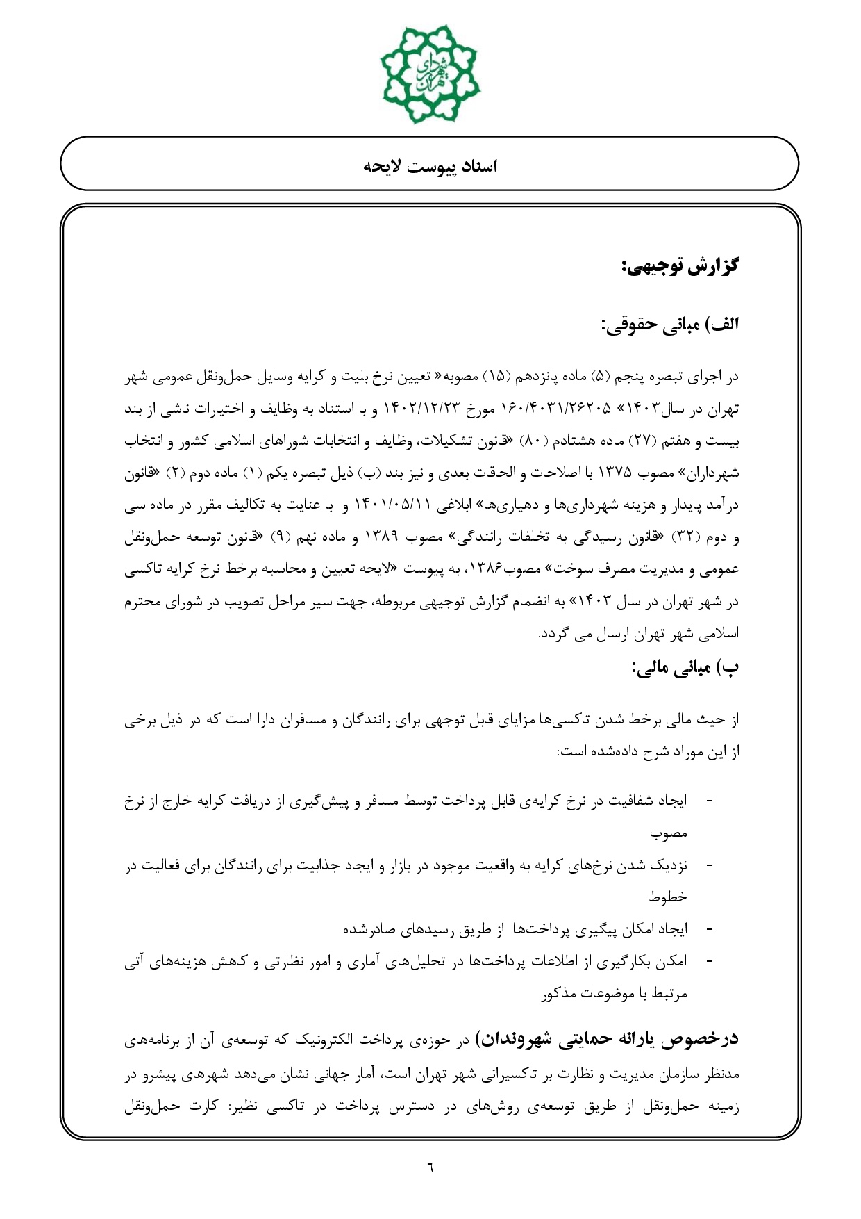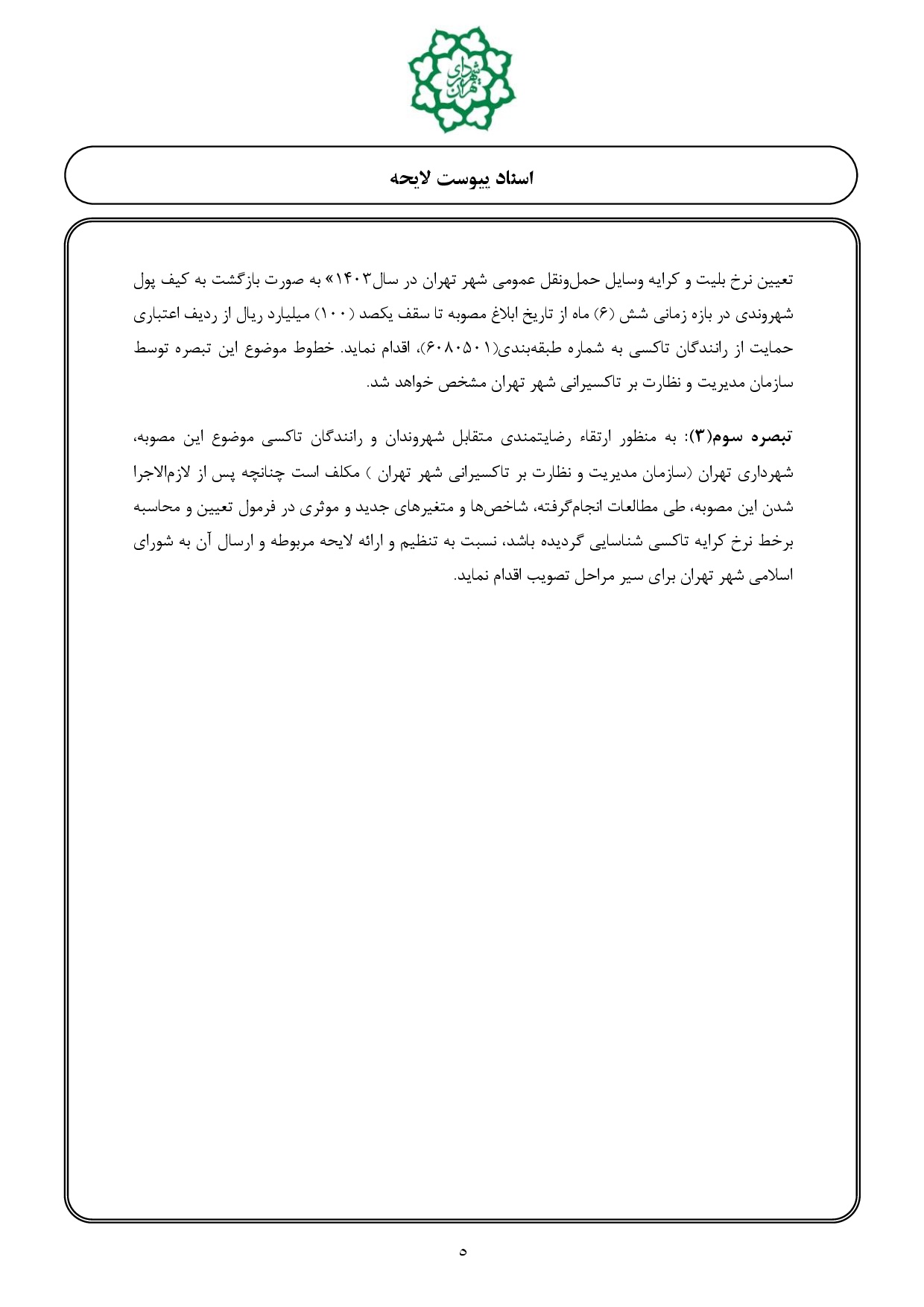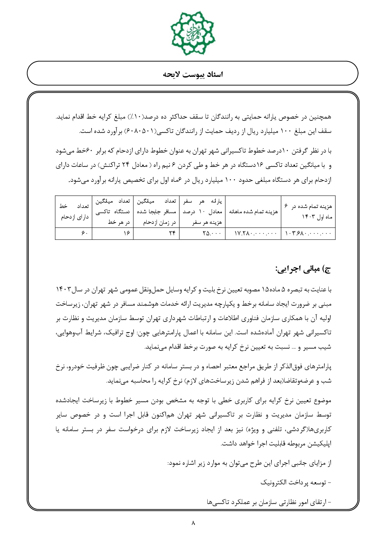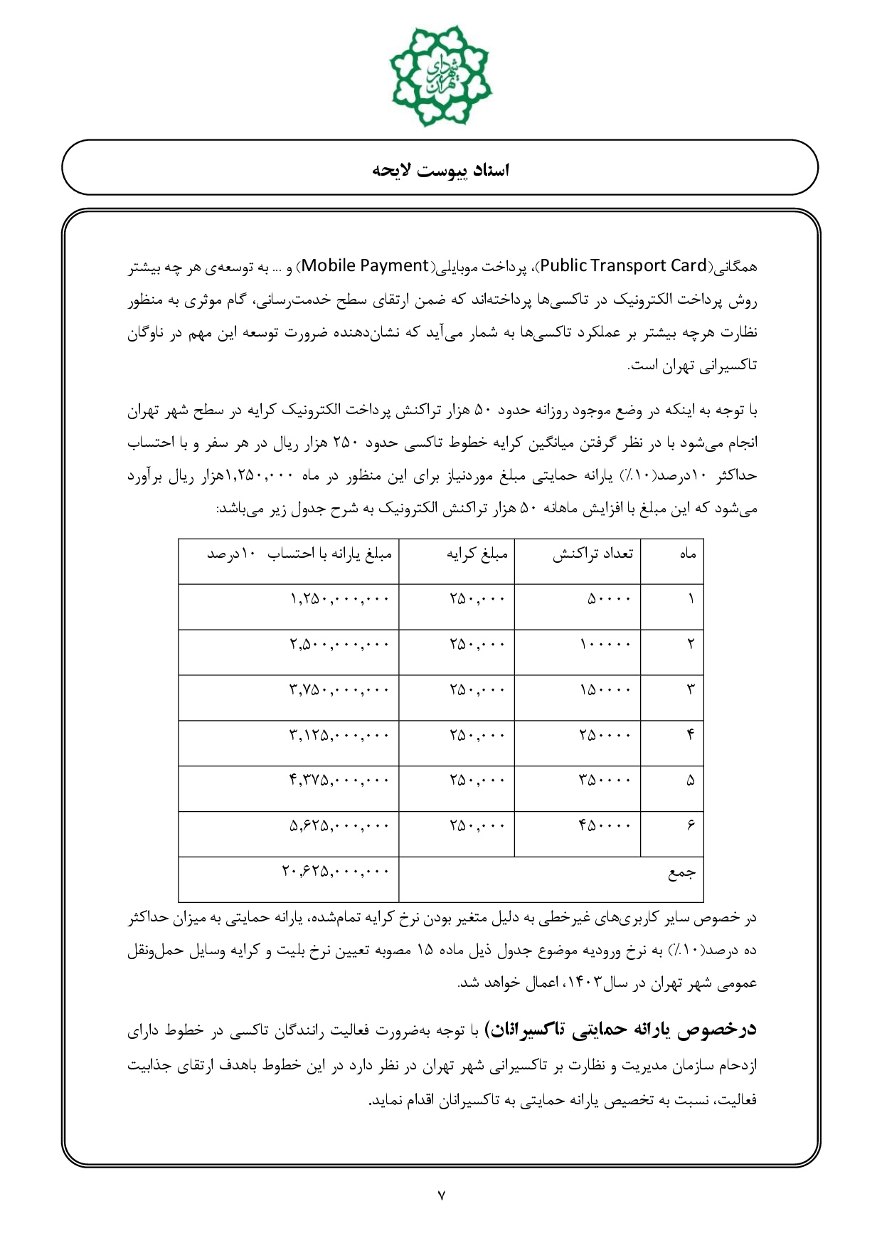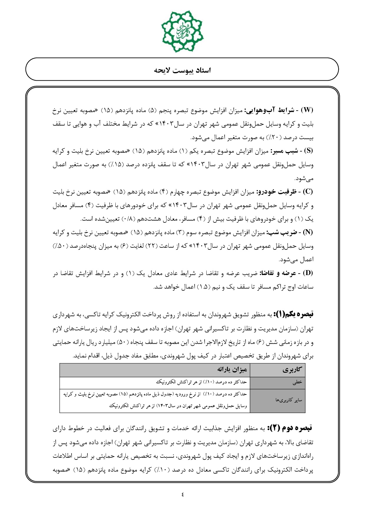 تعيين و محاسبه بر خط نرخ كرايه تاكسي در شهر تهران در سال 1403