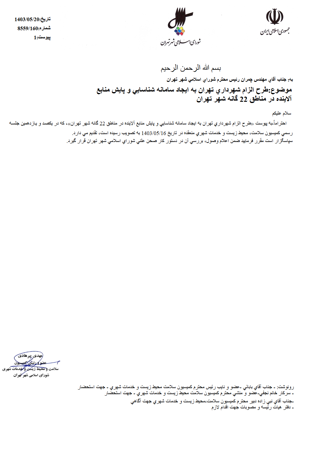 الزام شهرداري تهران به ايجاد سامانه شناسايي و پايش منابع آلاينده در مناطق 22گانه شهر تهران