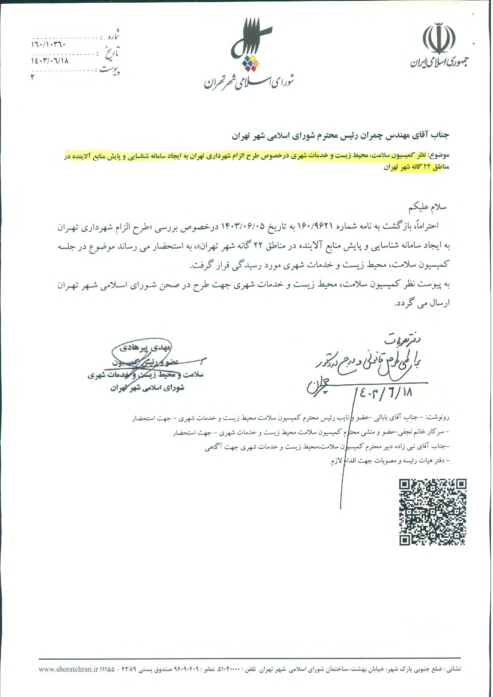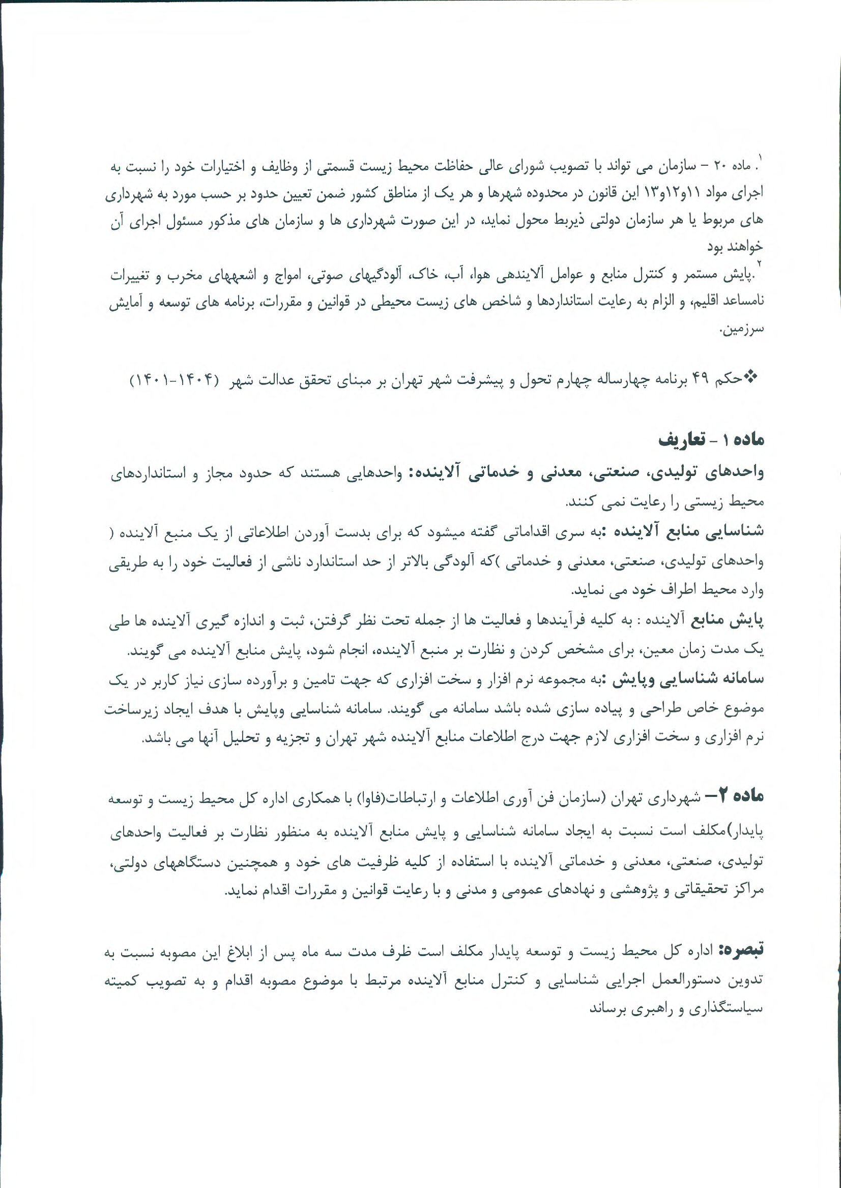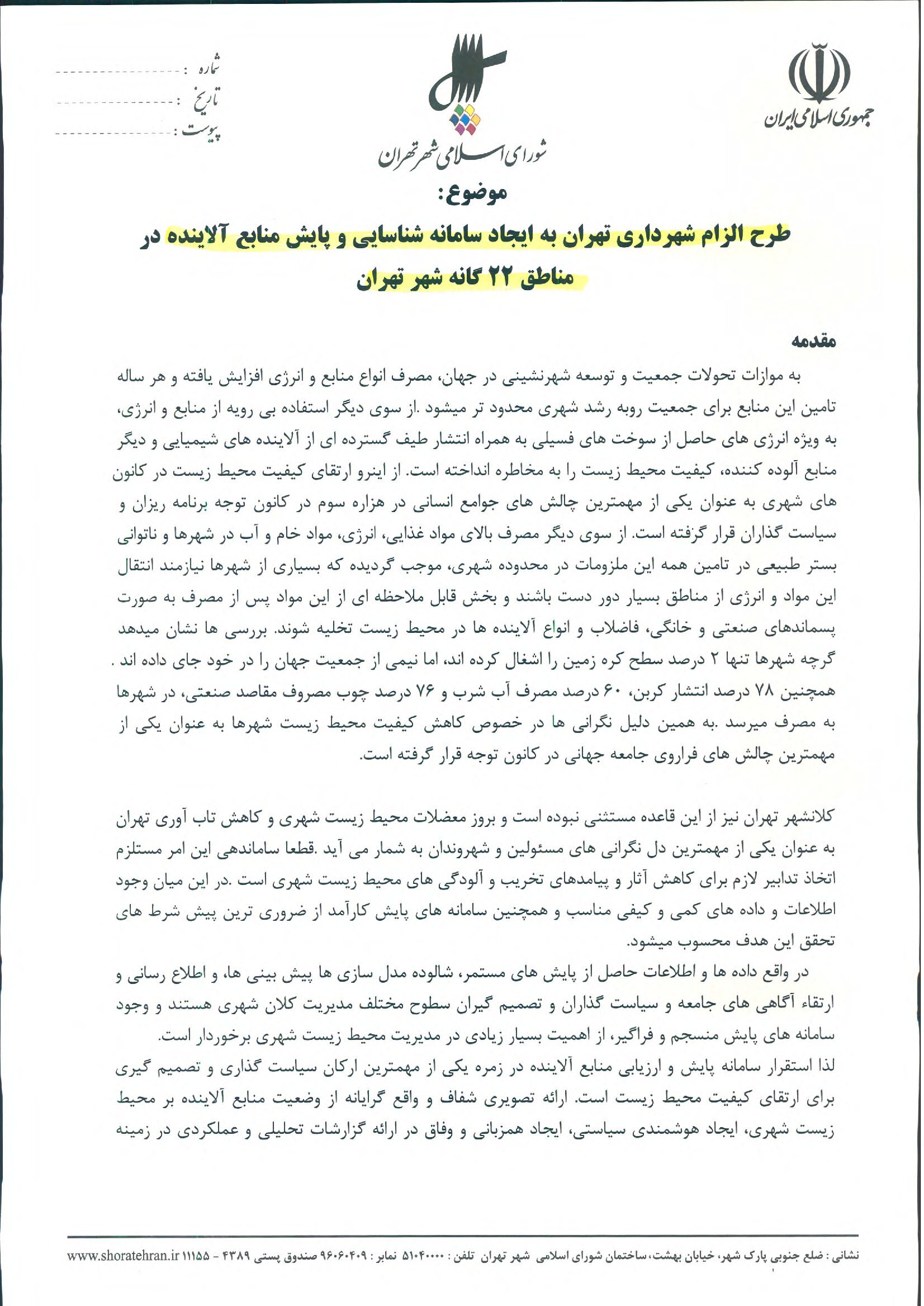 الزام شهرداري تهران به ايجاد سامانه شناسايي و پايش منابع آلاينده در مناطق 22گانه شهر تهران