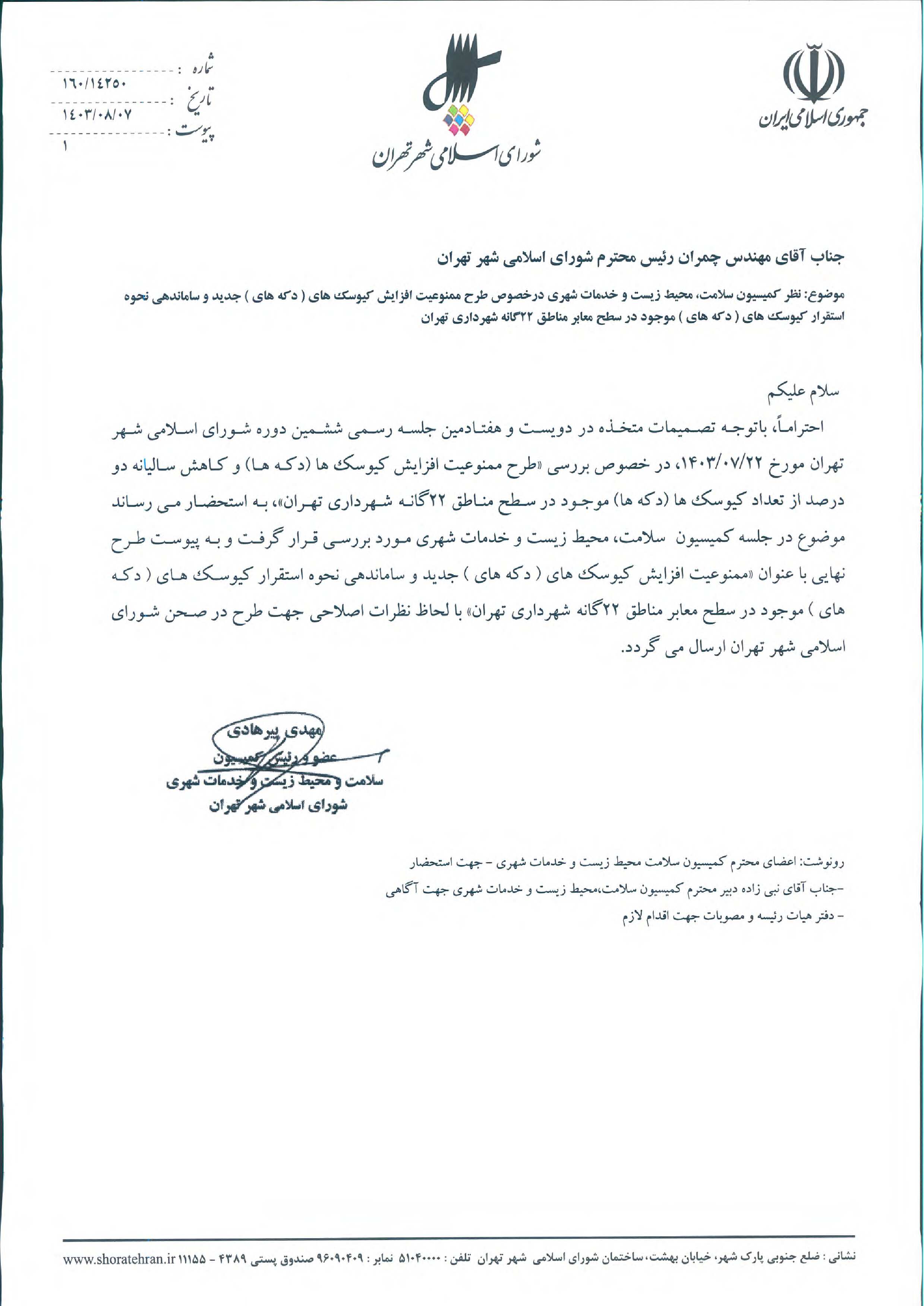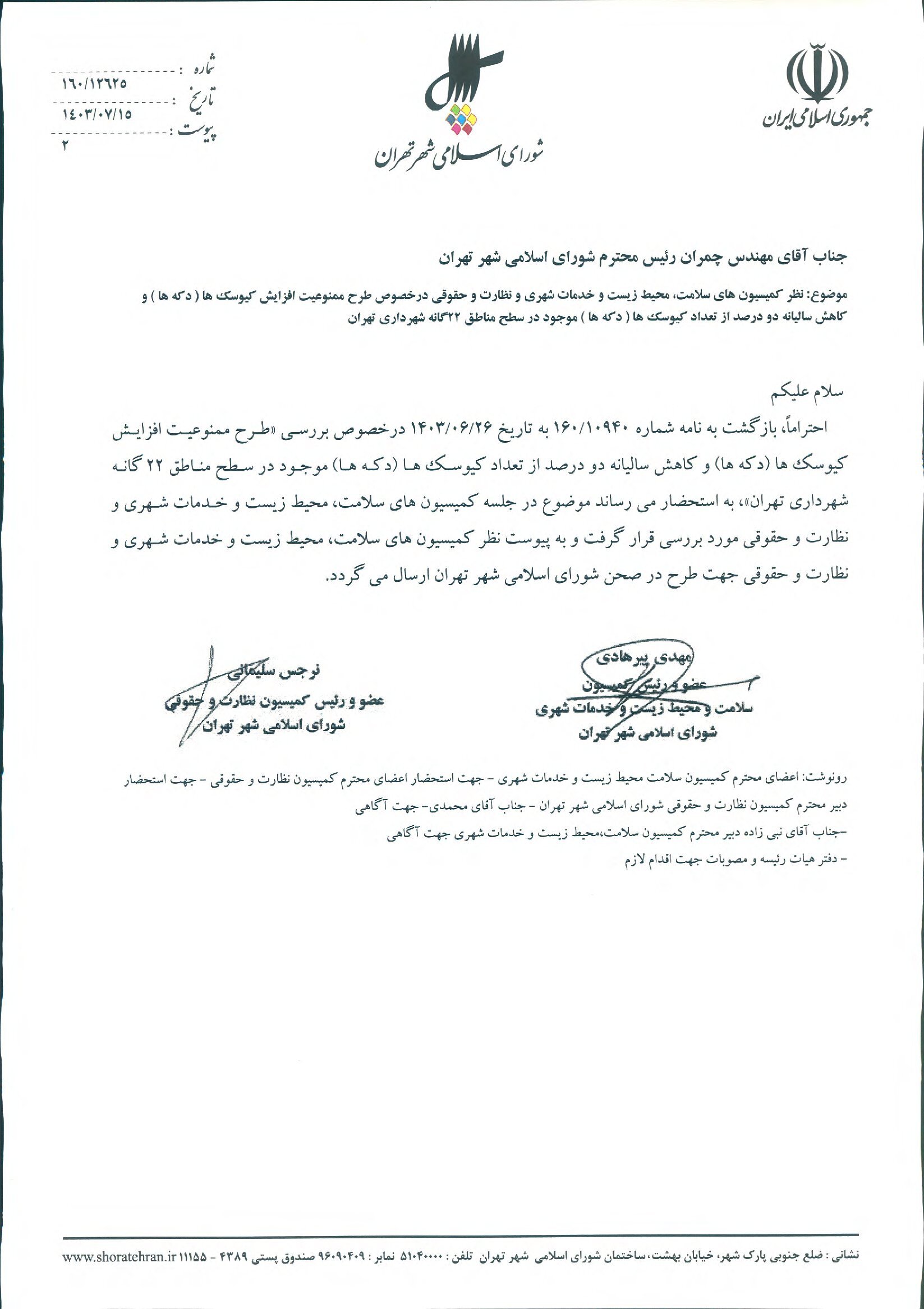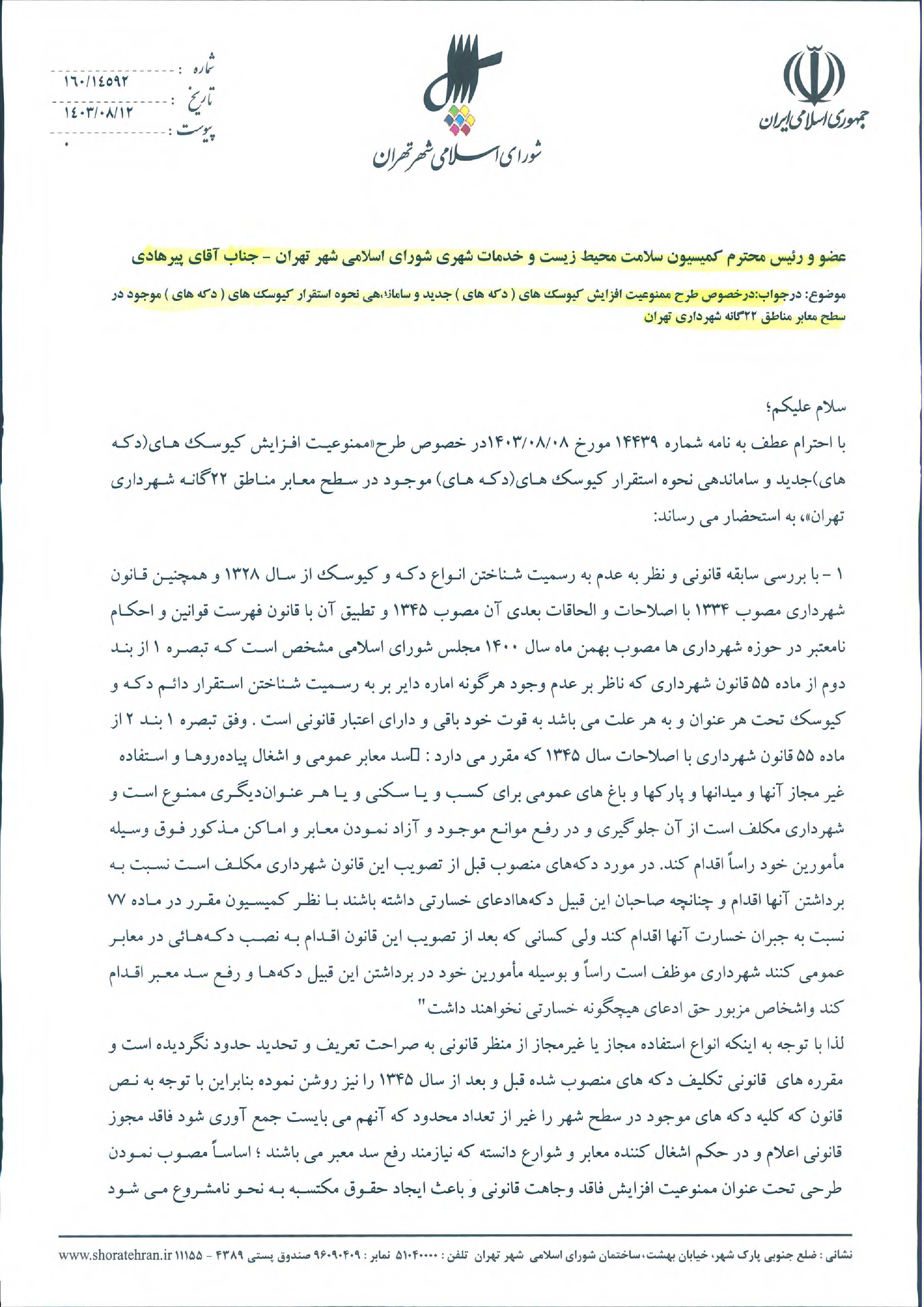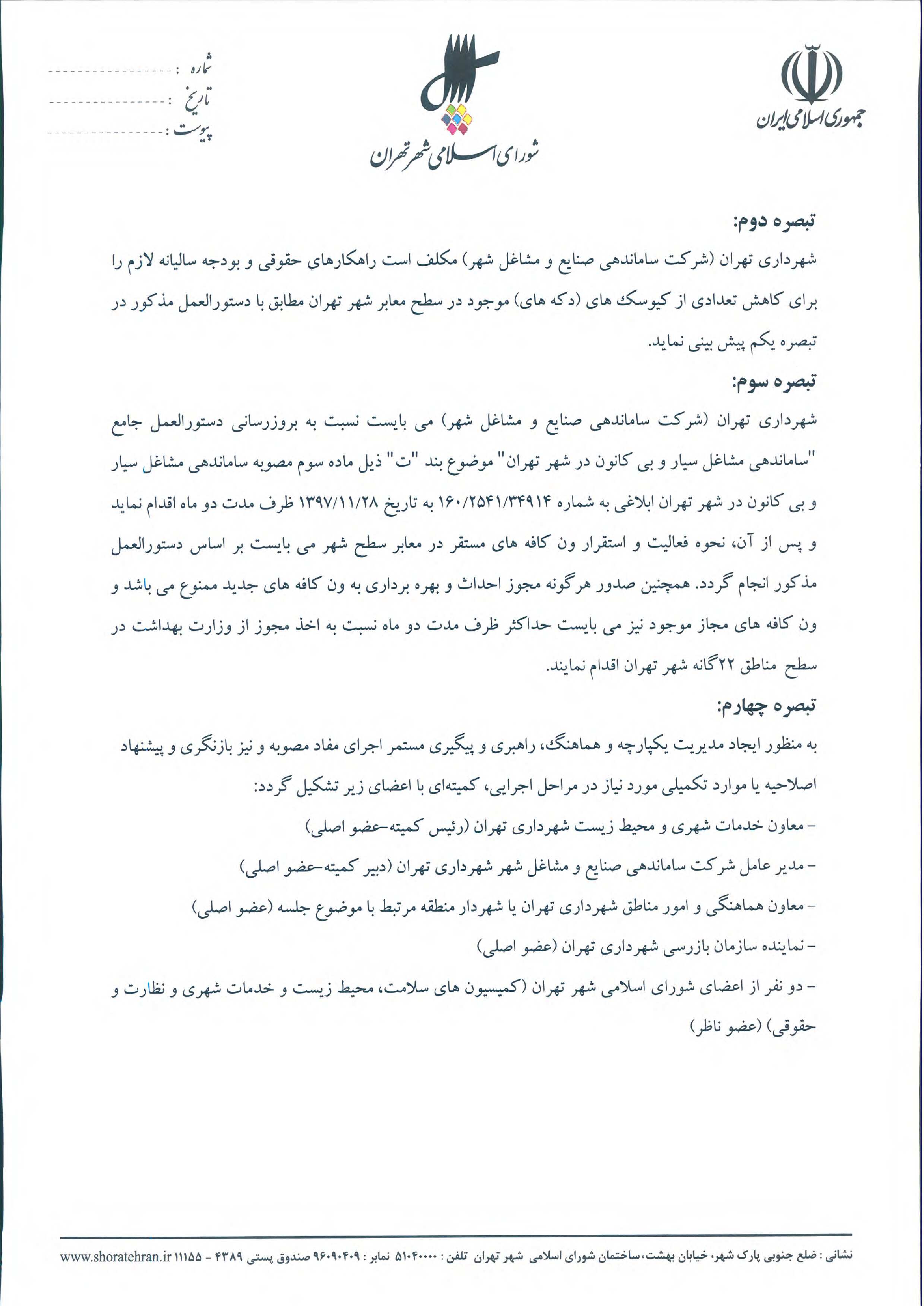 ممنوعيت افزايش كيوسكها (دكهها) و كاهش ساليانه دو درصد از تعداد كيوسكها (دكهها) موجود در سطح مناطق 22گانه شهرداري تهران