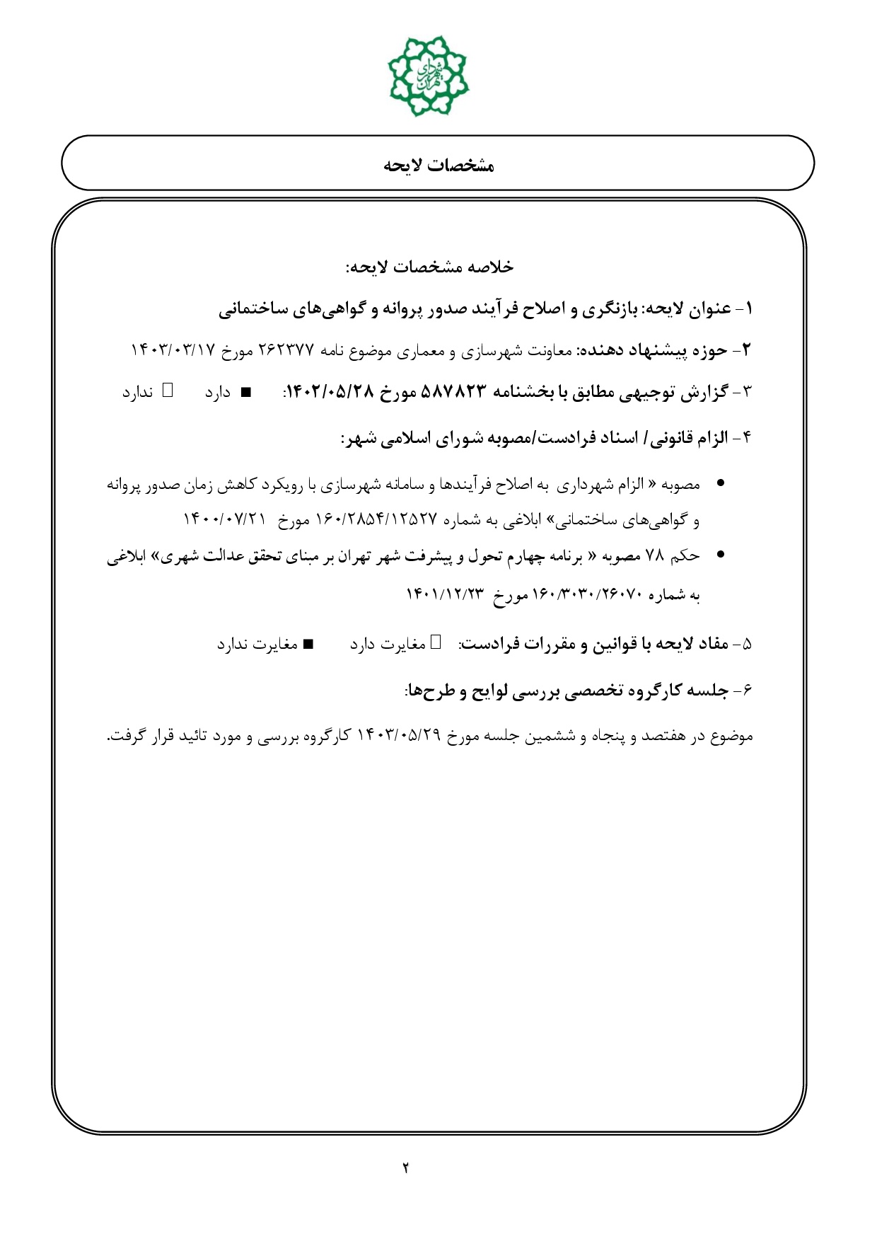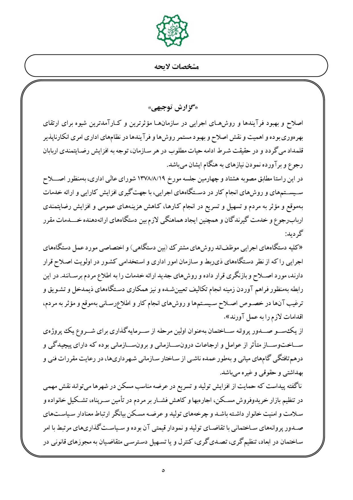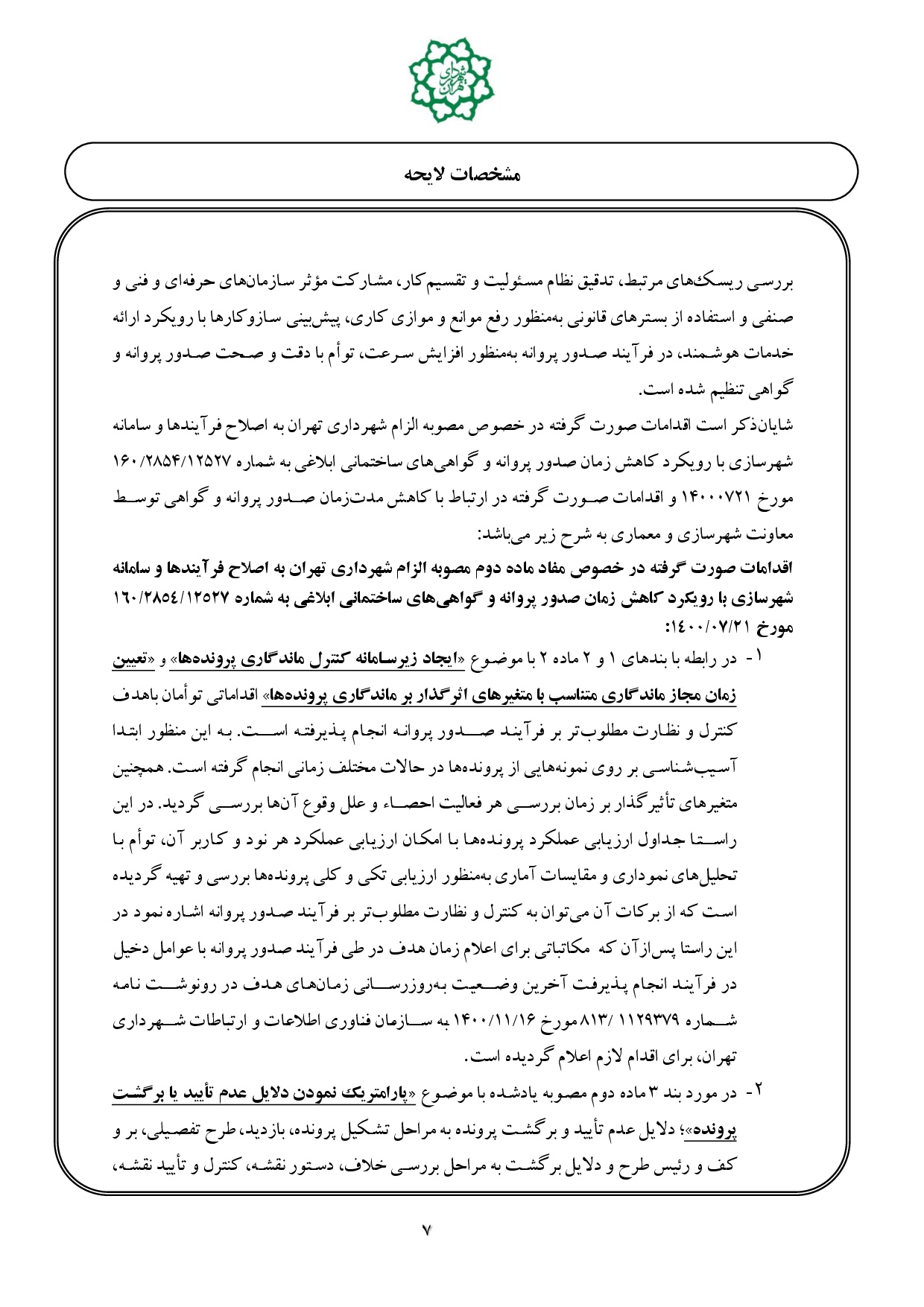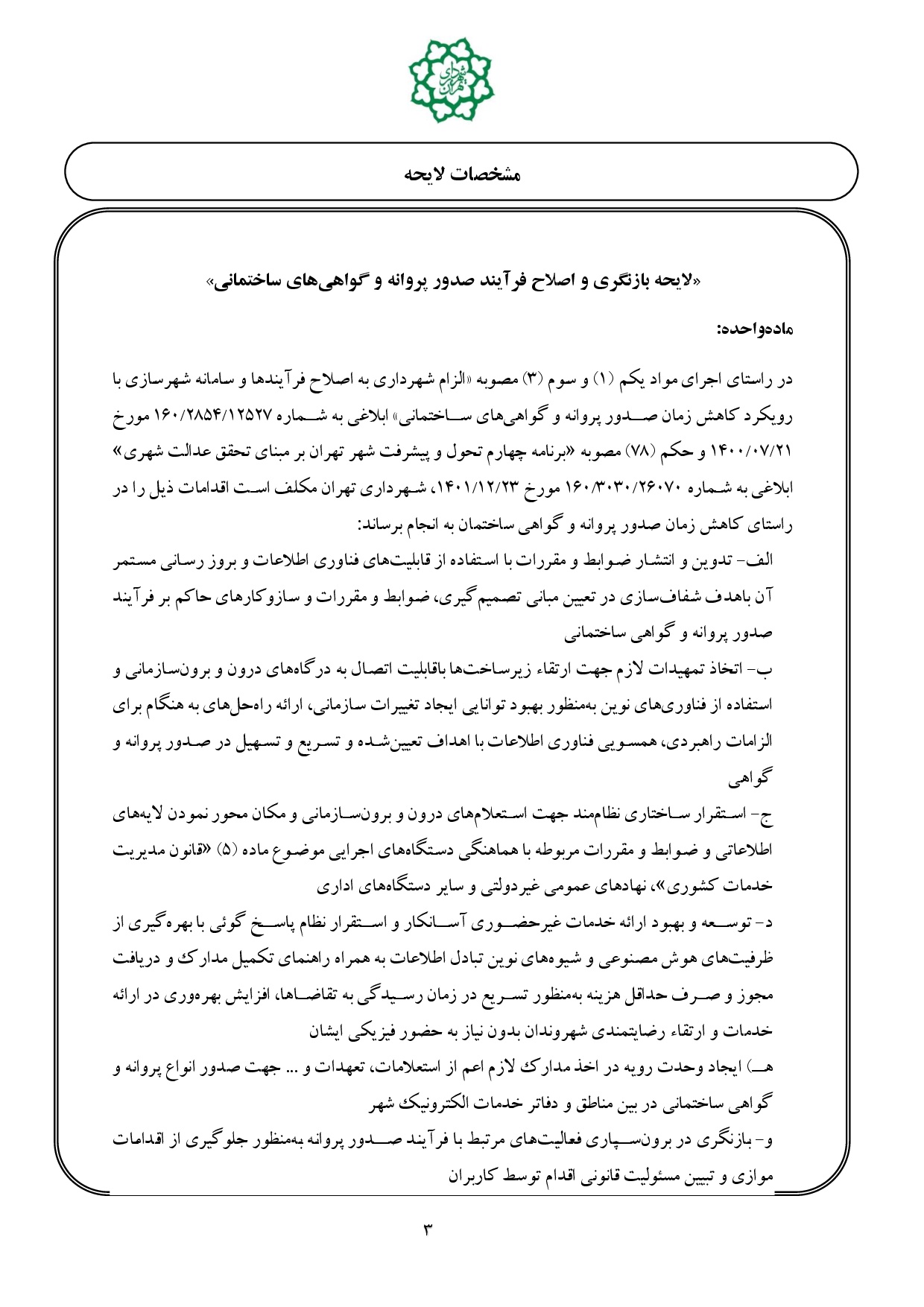 بازنگري و اصلاح فرآيند صدور پروانه و گواهيهاي ساختماني
