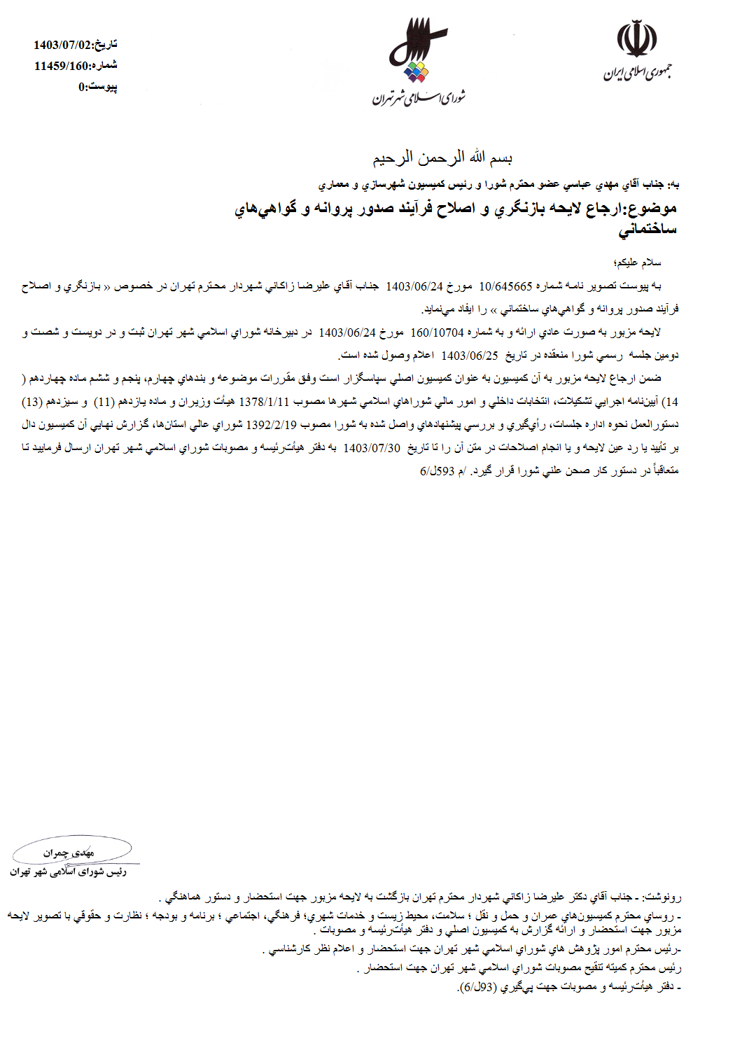 بازنگري و اصلاح فرآيند صدور پروانه و گواهي‌هاي ساختماني