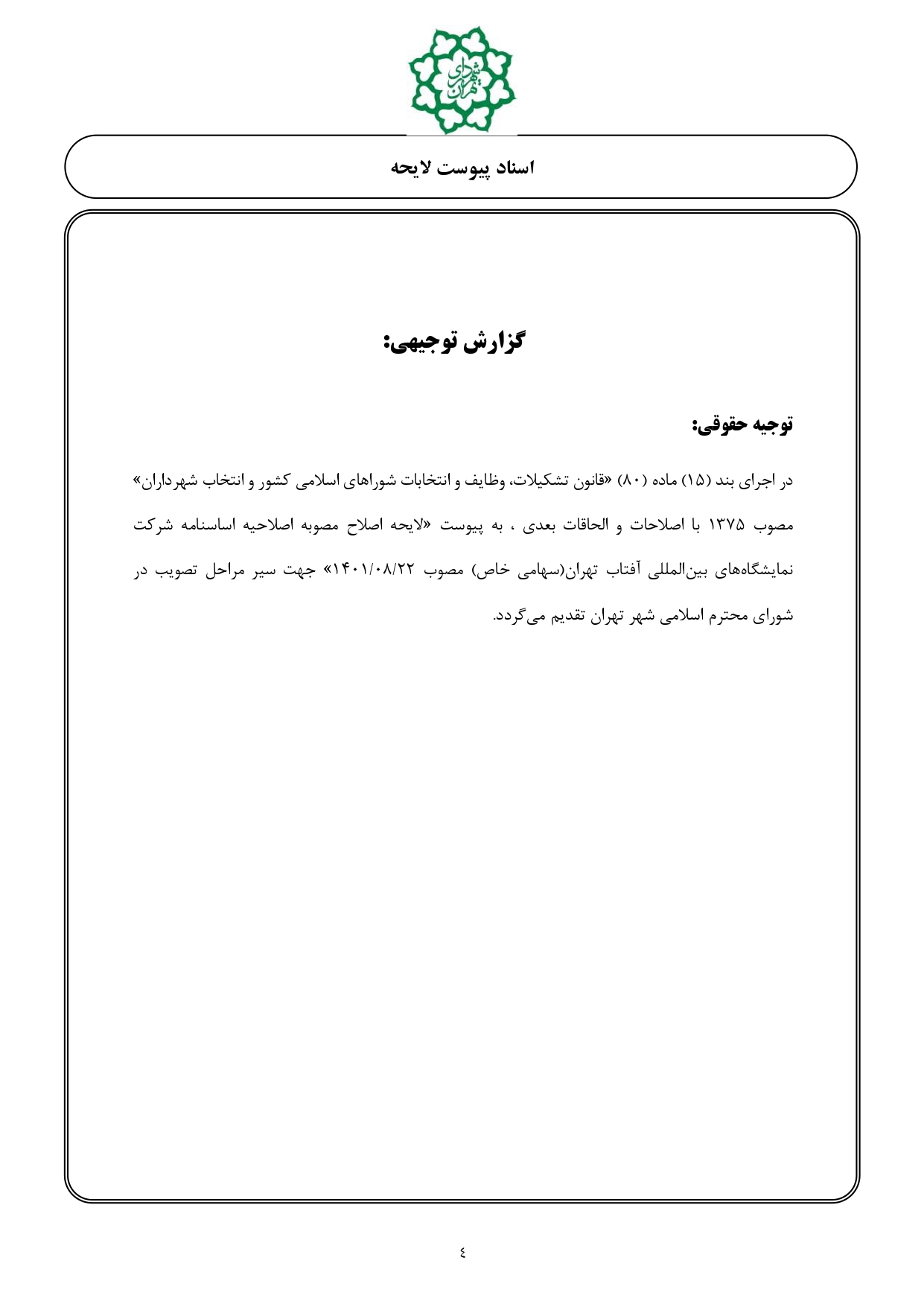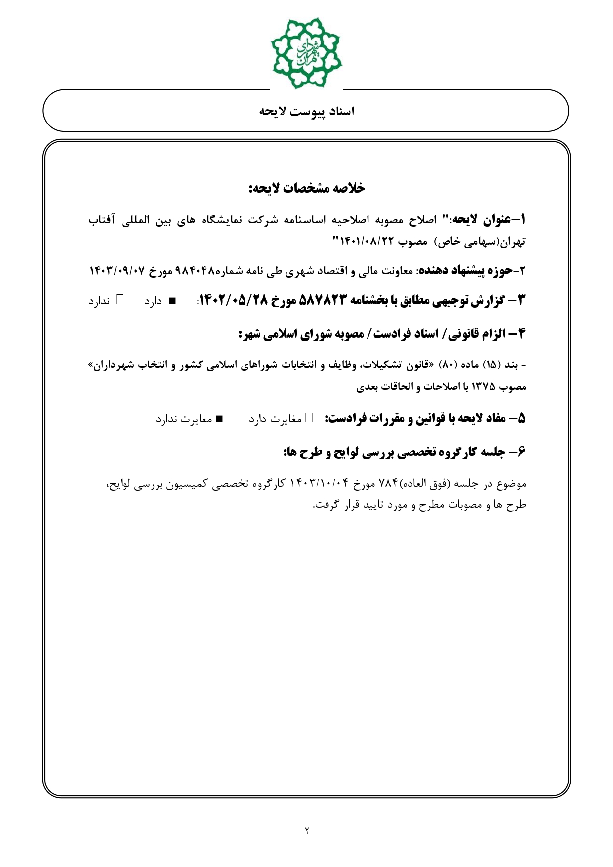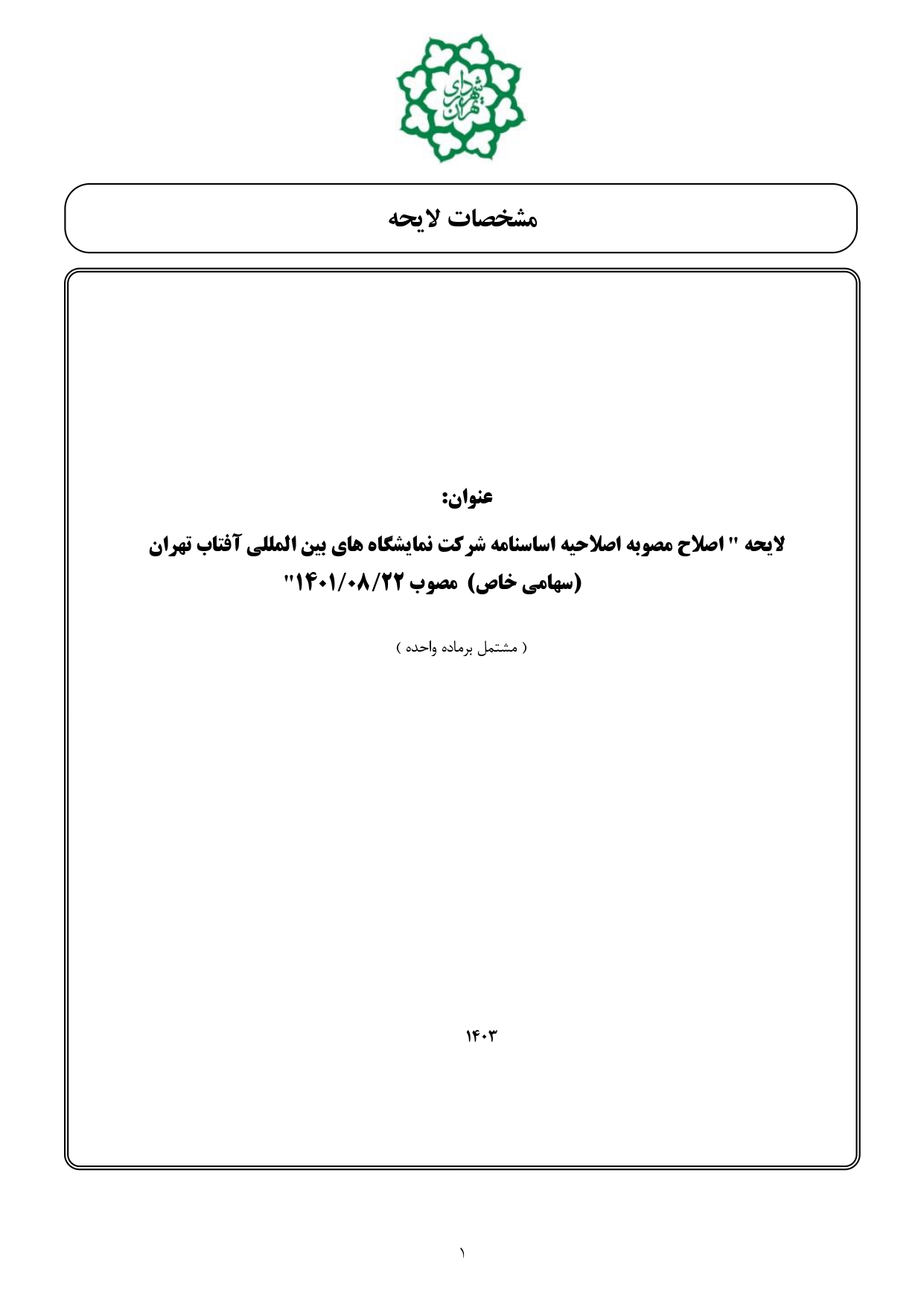 اصلاح مصوبه «اصلاحيه اساسنامه شركت نمايشگاههاي بينالمللي آفتاب تهران (سهامي خاص)» مصوب 1401/08/22