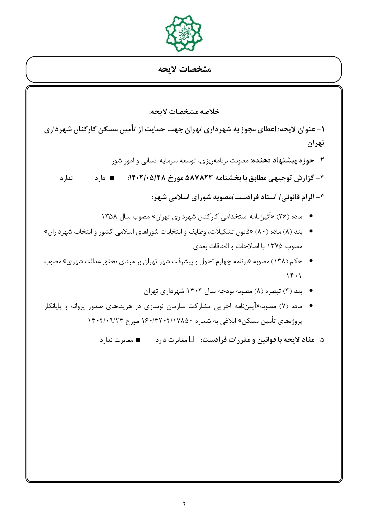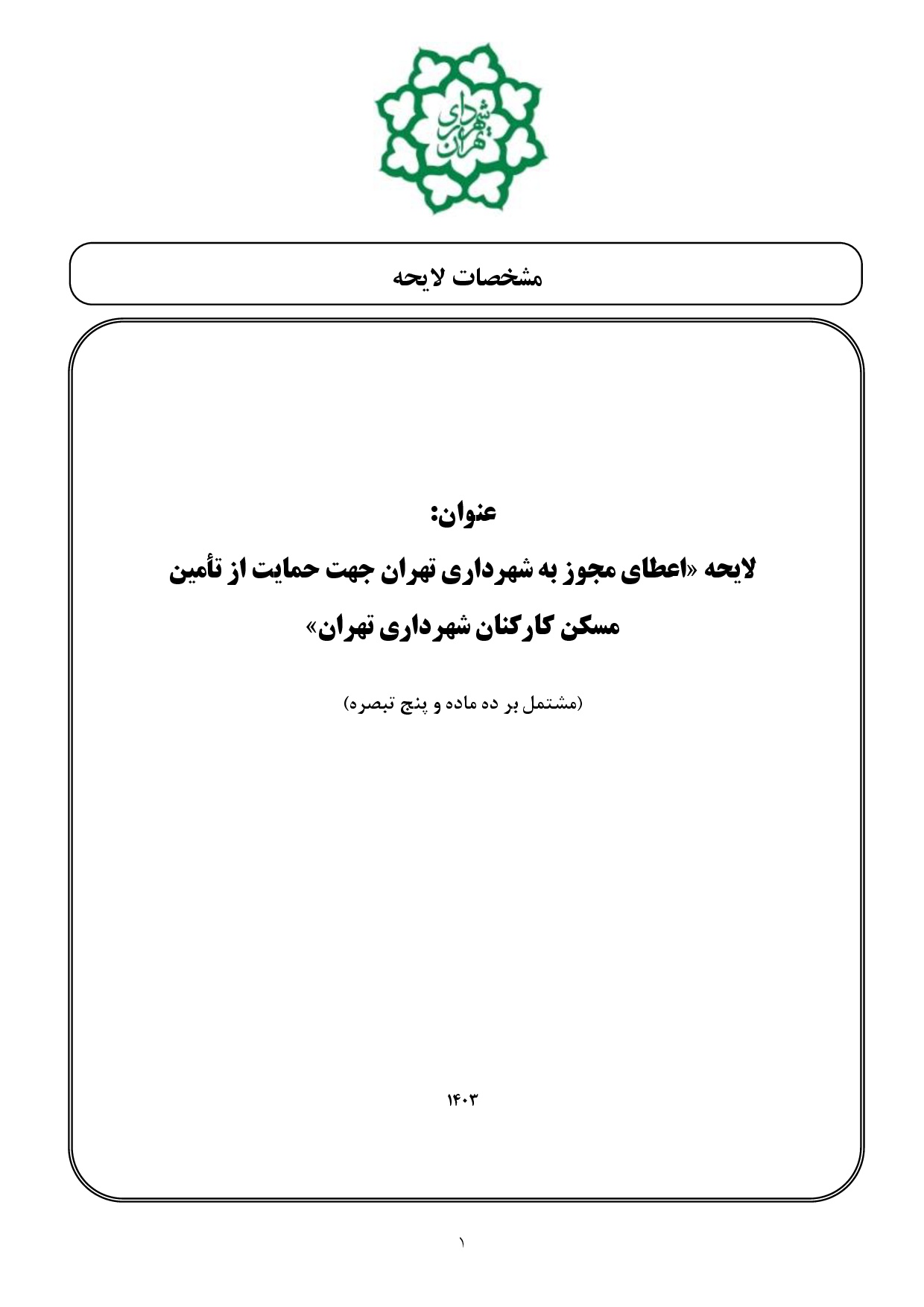 اعطاي مجوز به شهرداري تهران جهت حمايت از تأمين مسكن كاركنان شهرداري تهران