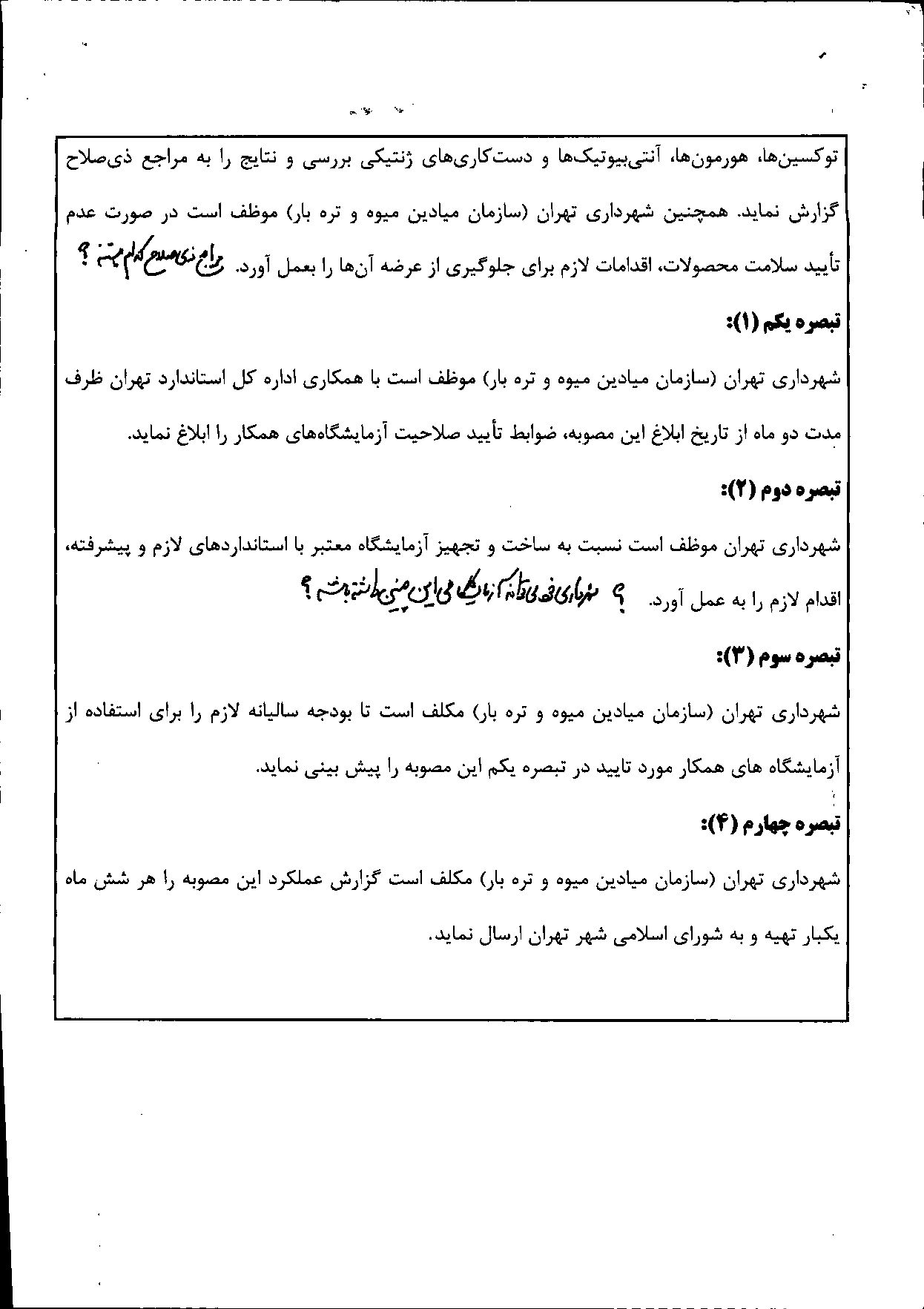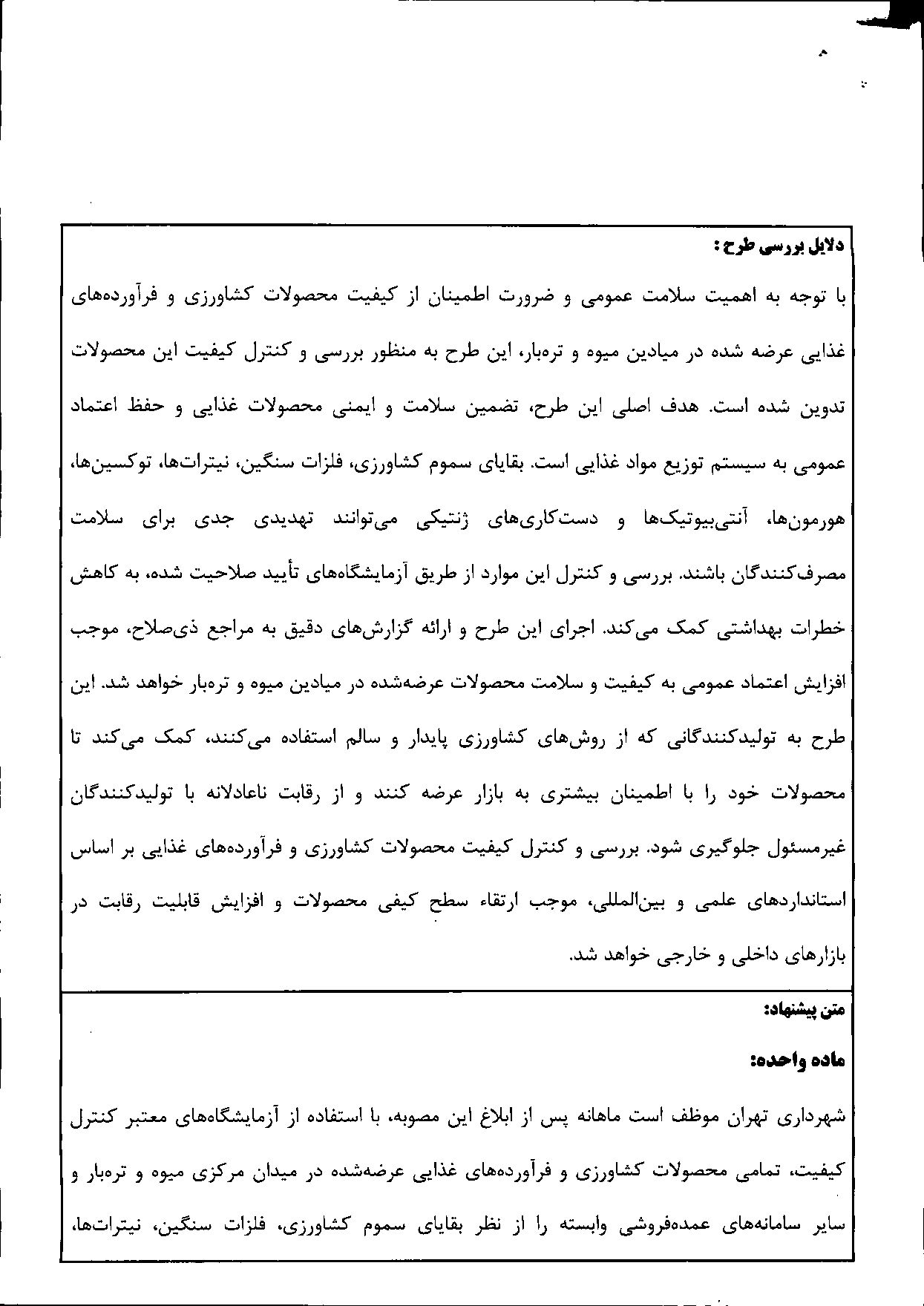 نظارت وكنترل كيفيت محصولات كشاورزي و فرآوردههاي غذايي در ميادين ميوه و ترهبار شهرداري تهران