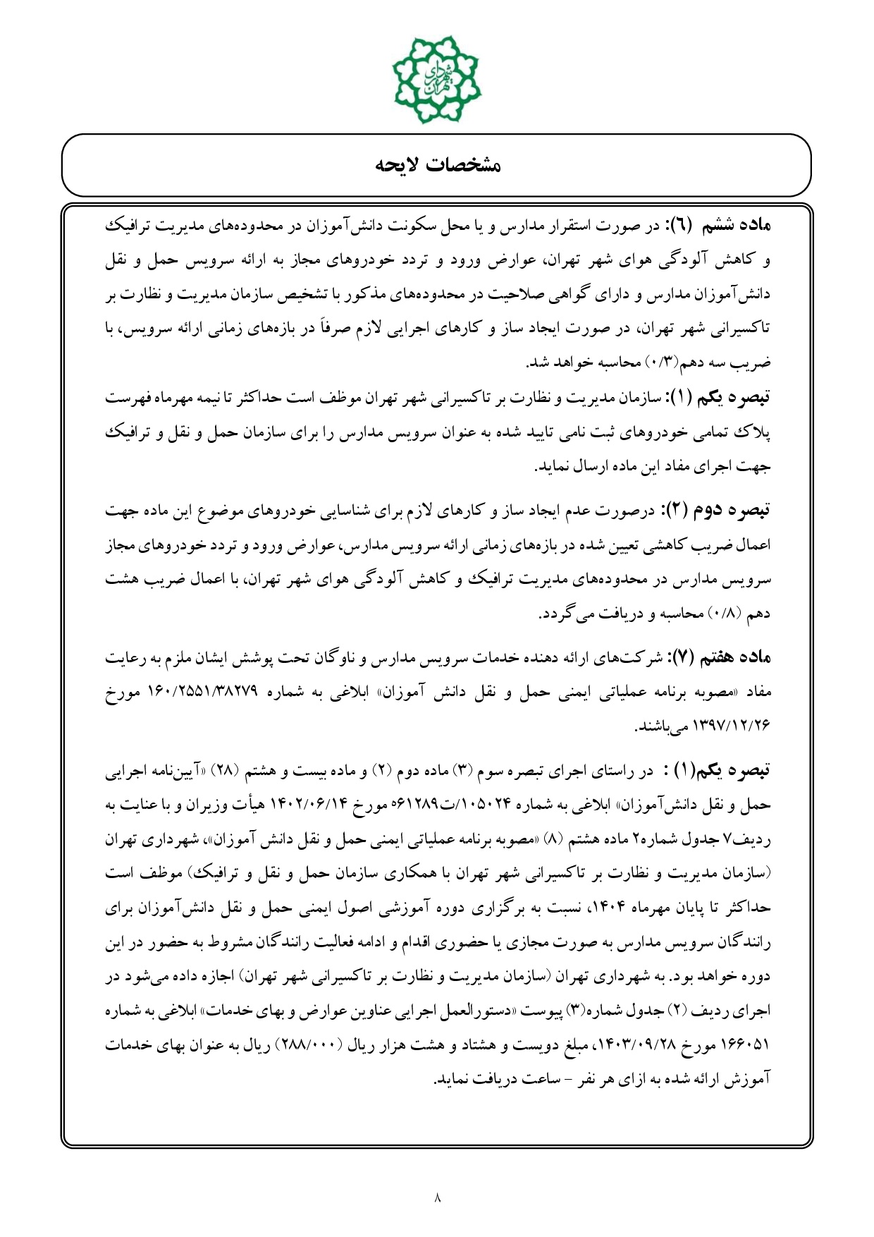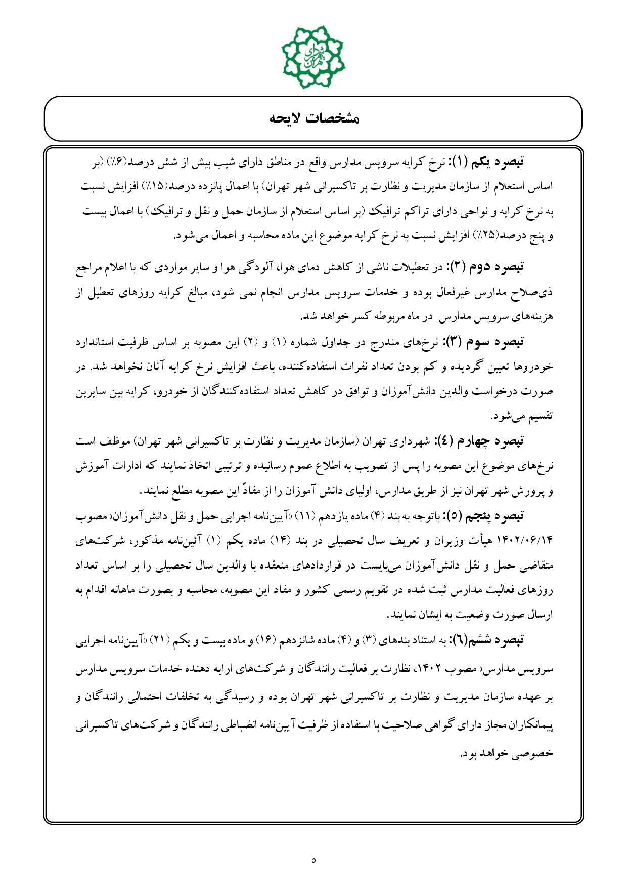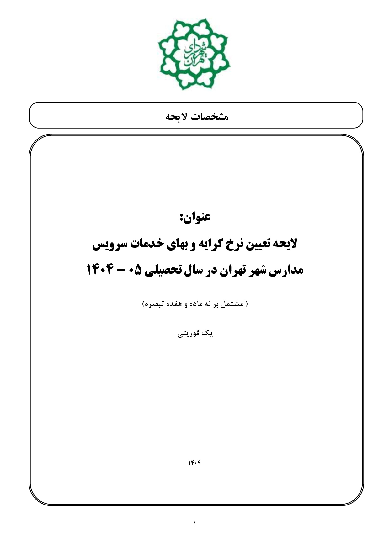 تعيين نرخ كرايه و بهاي خدمات سرويس مدارس شهر تهران در سال تحصيلي 1405-1404