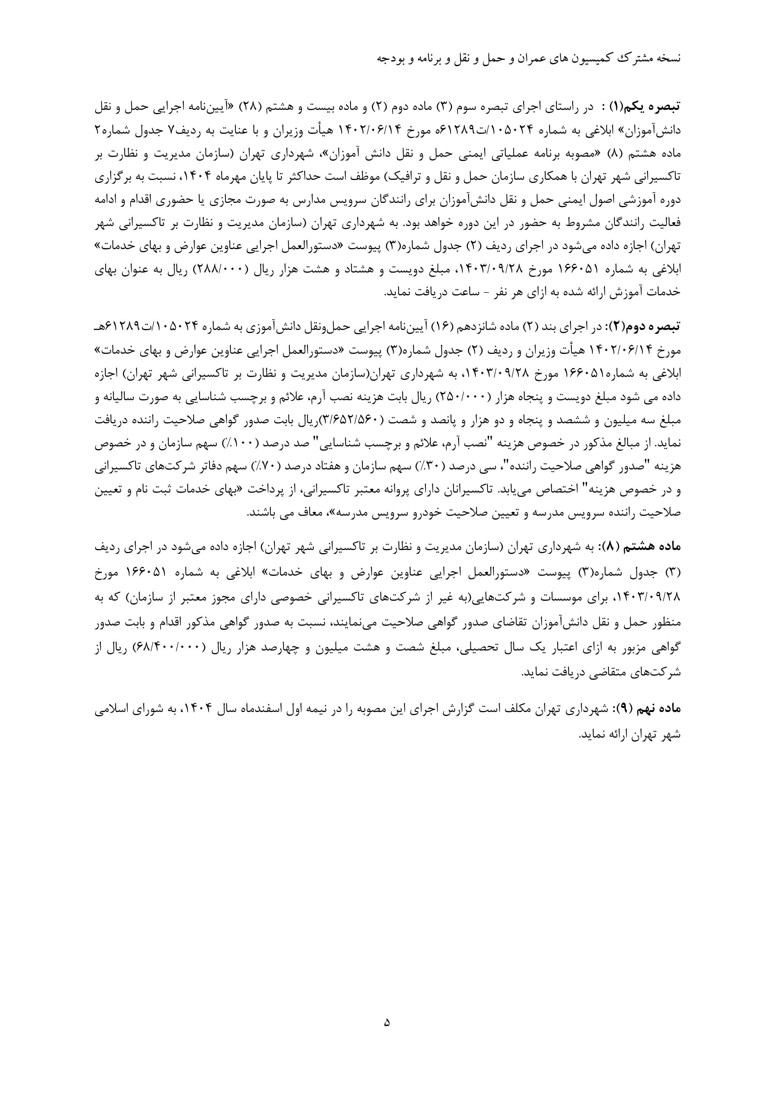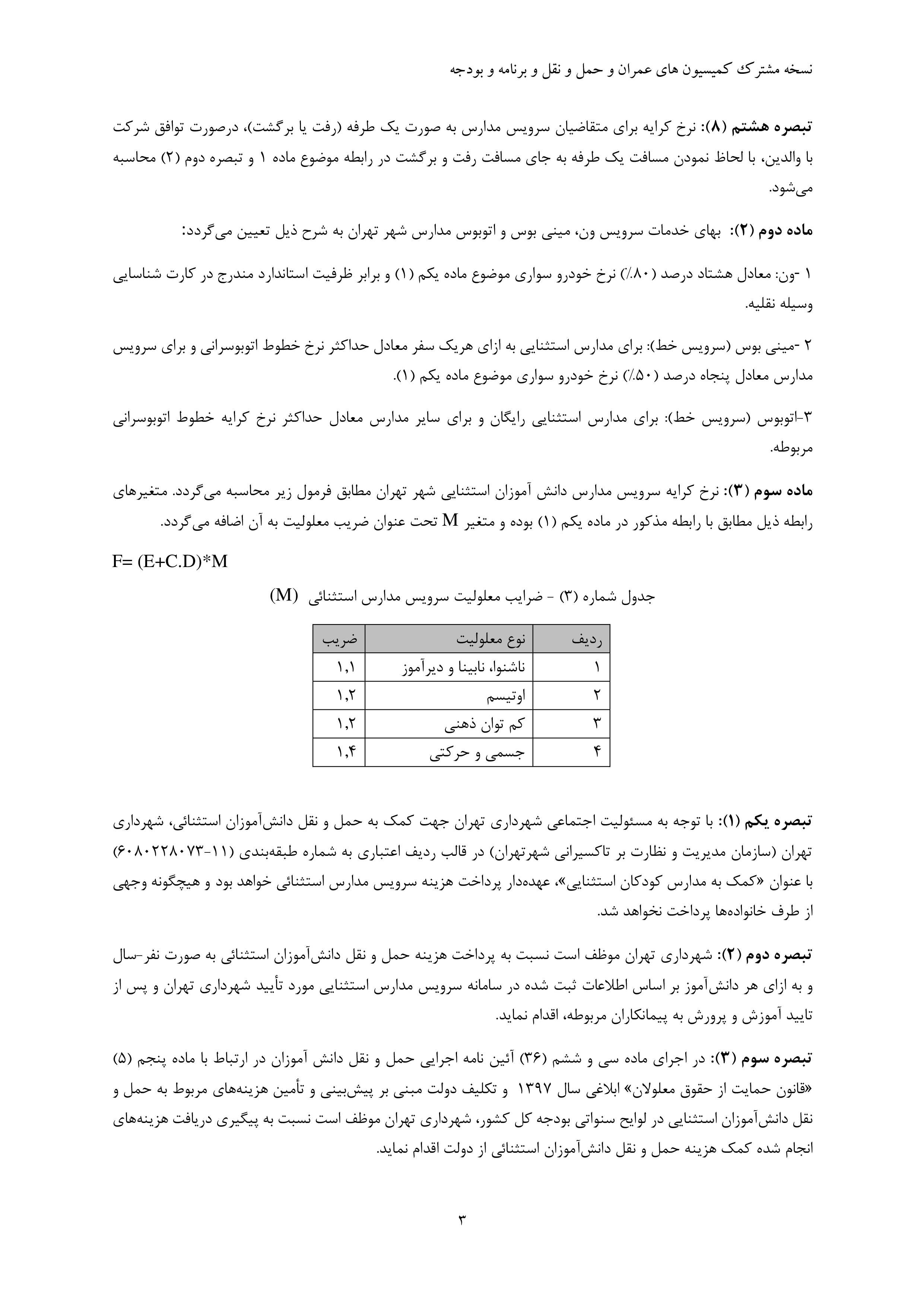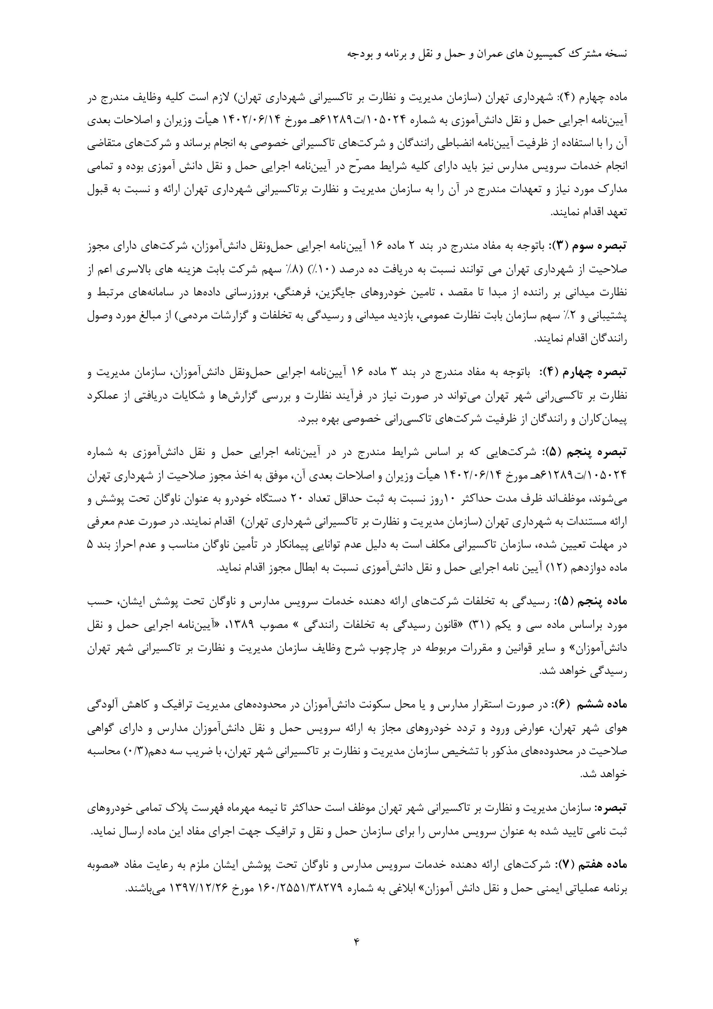 تعيين نرخ كرايه و بهاي خدمات سرويس مدارس شهر تهران در سال تحصيلي 1405-1404