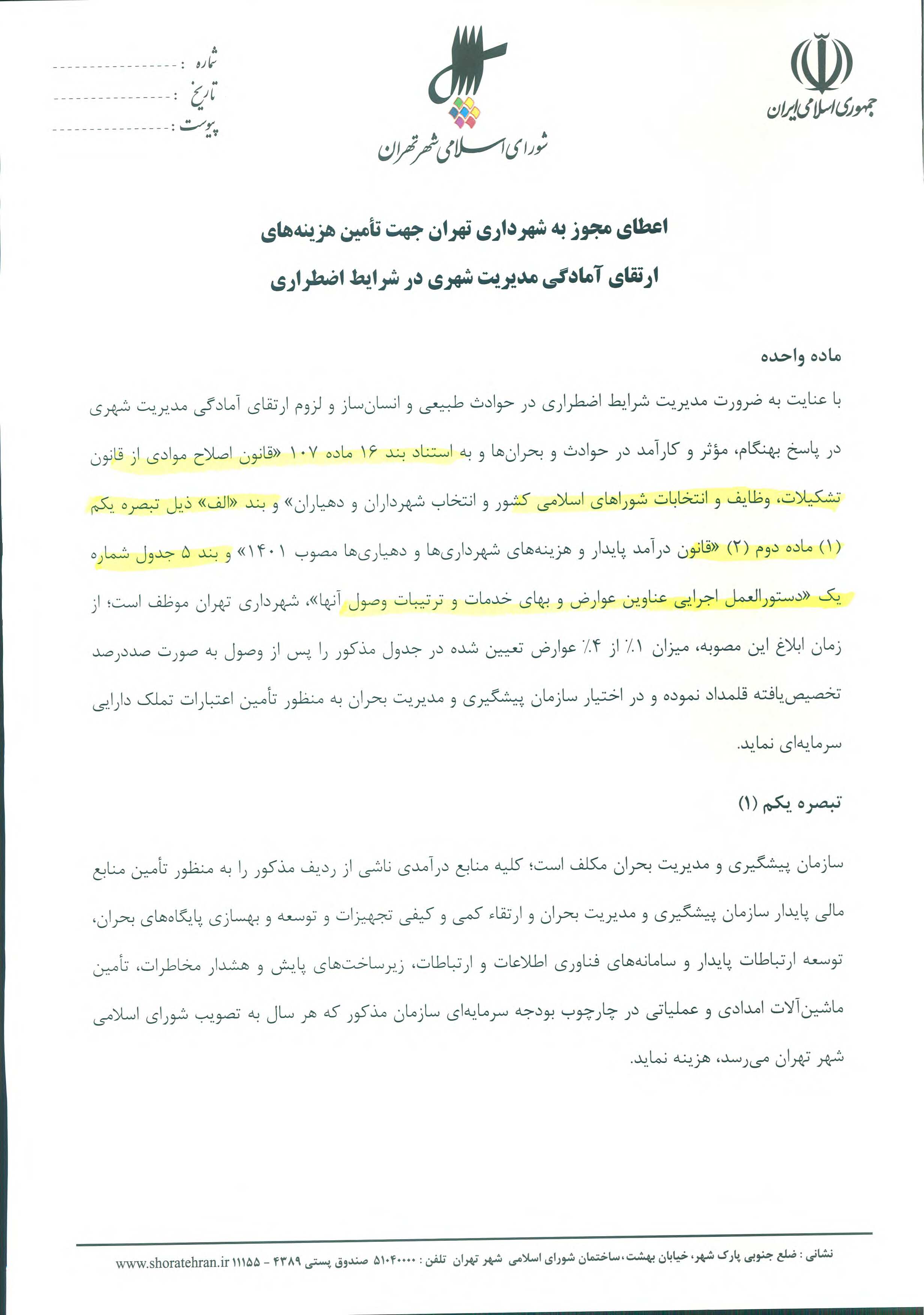 معرفی سامانه جامع مصوبات شورای اسلامی شهر تهران