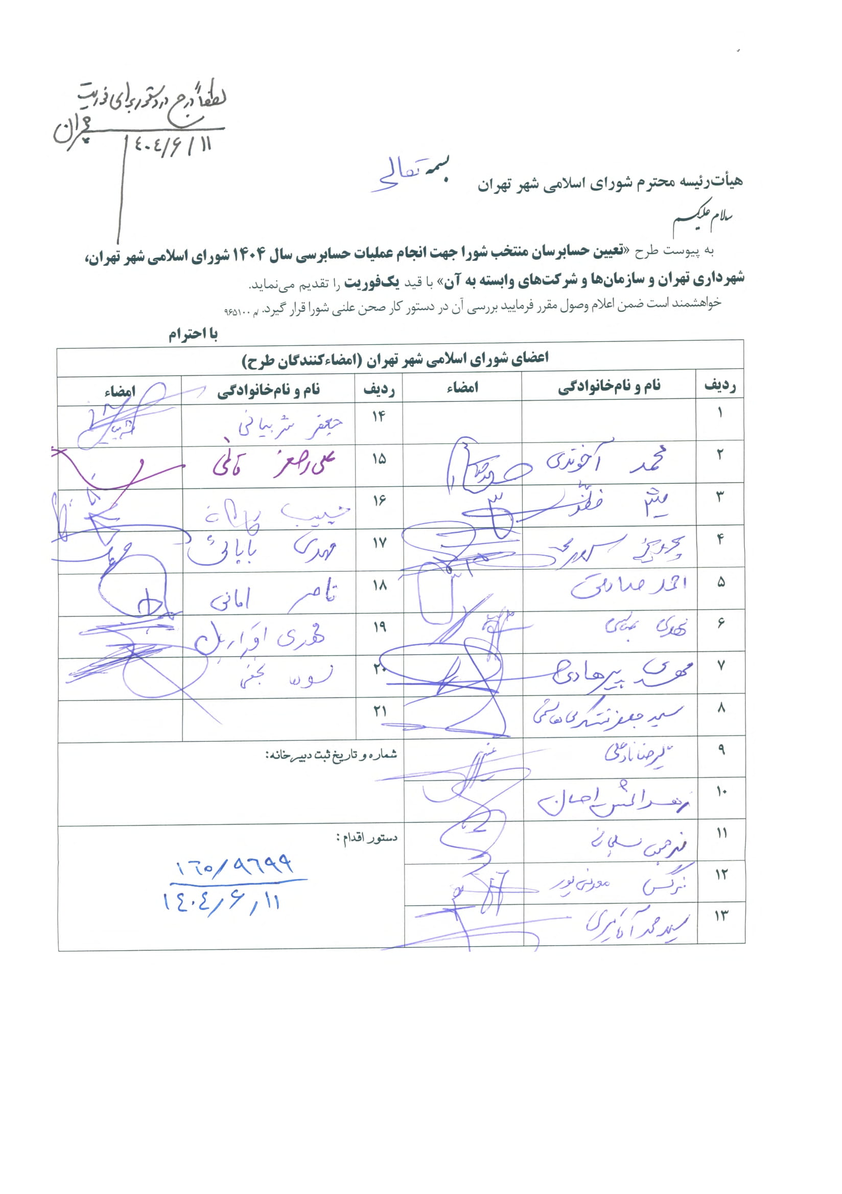 تعيين حسابرسان منتخب شورا جهت انجام عمليات حسابرسي سال 1404 شوراي اسلامي شهر تهران، شهرداري تهران و سازمانها و شركتهاي وابسته به آن