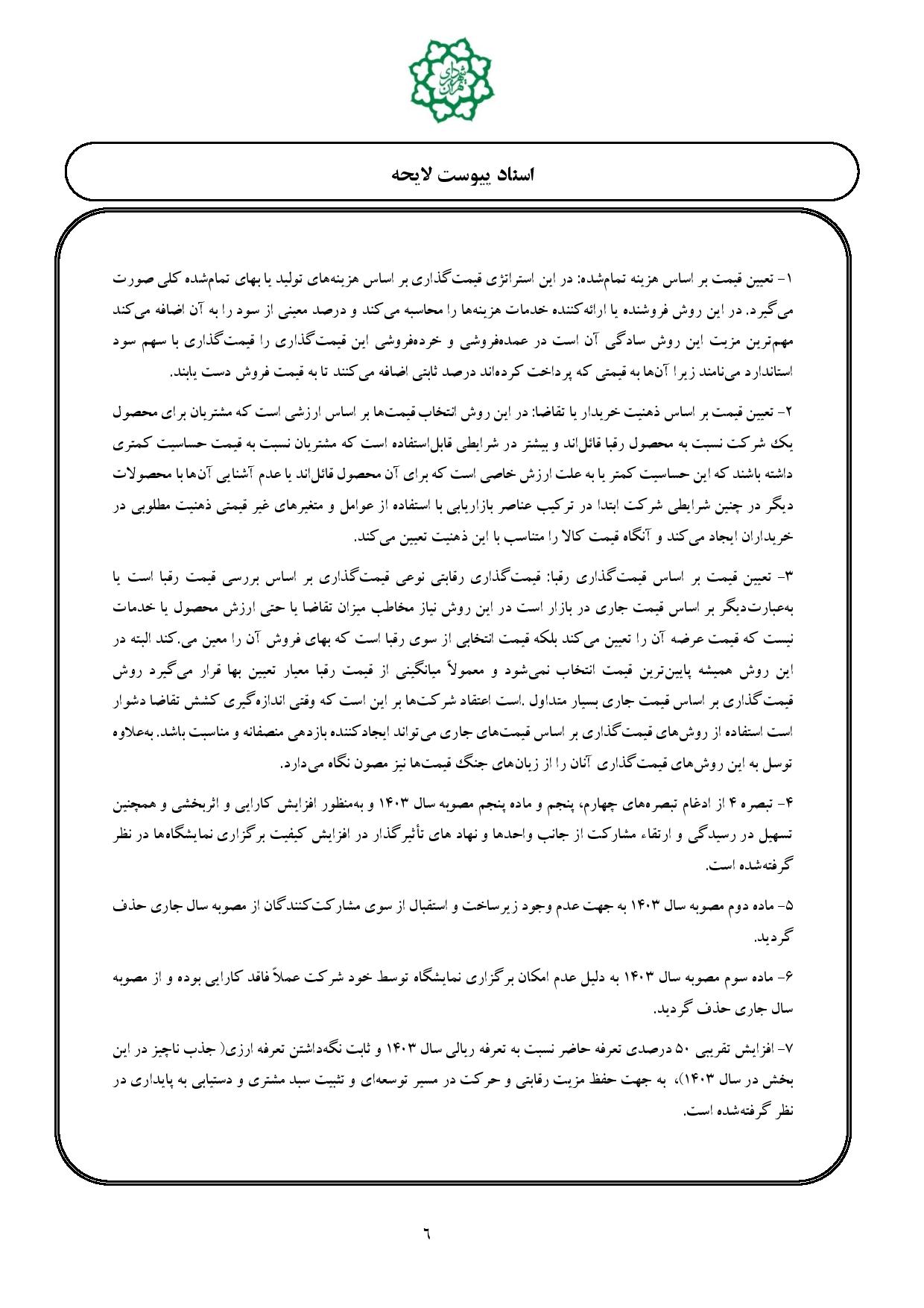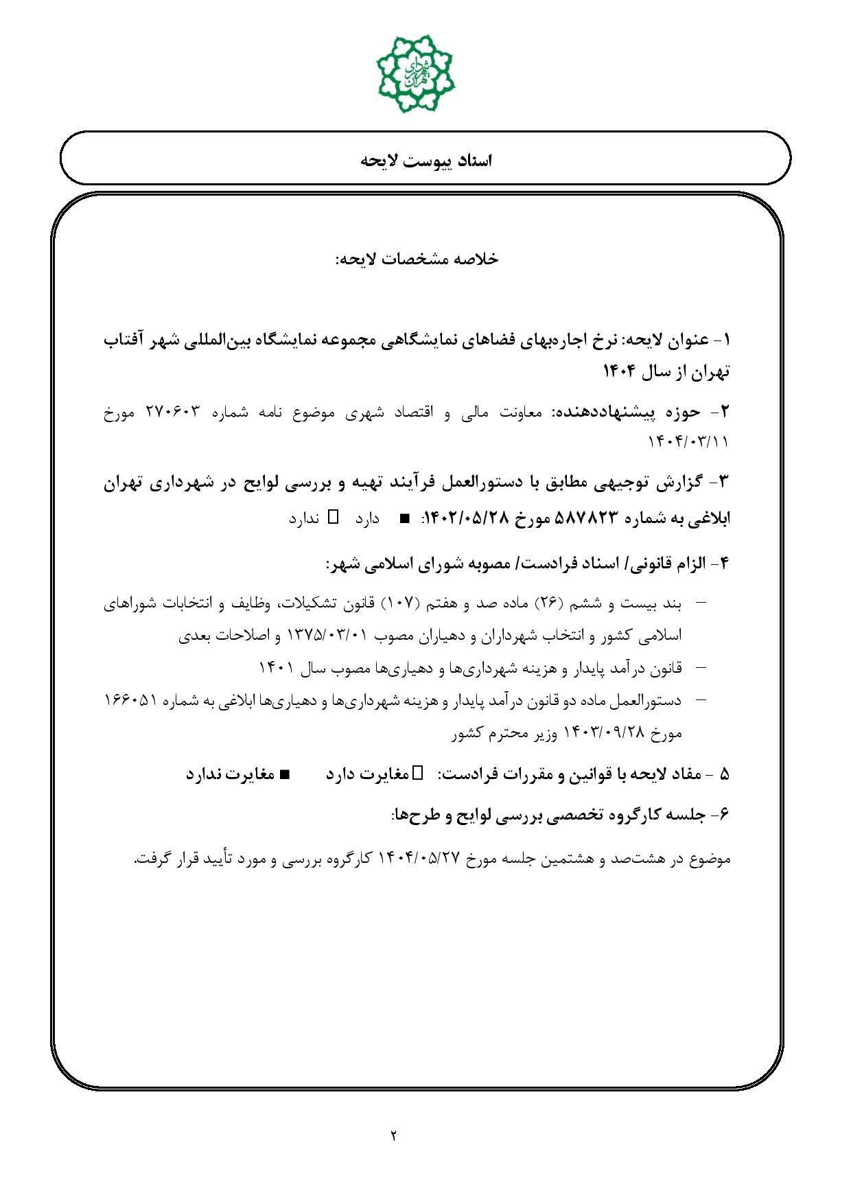 نرخ اجارهبهاي فضاهاي نمايشگاهي مجموعه نمايشگاه بينالمللي شهر آفتاب تهران از سال 1404