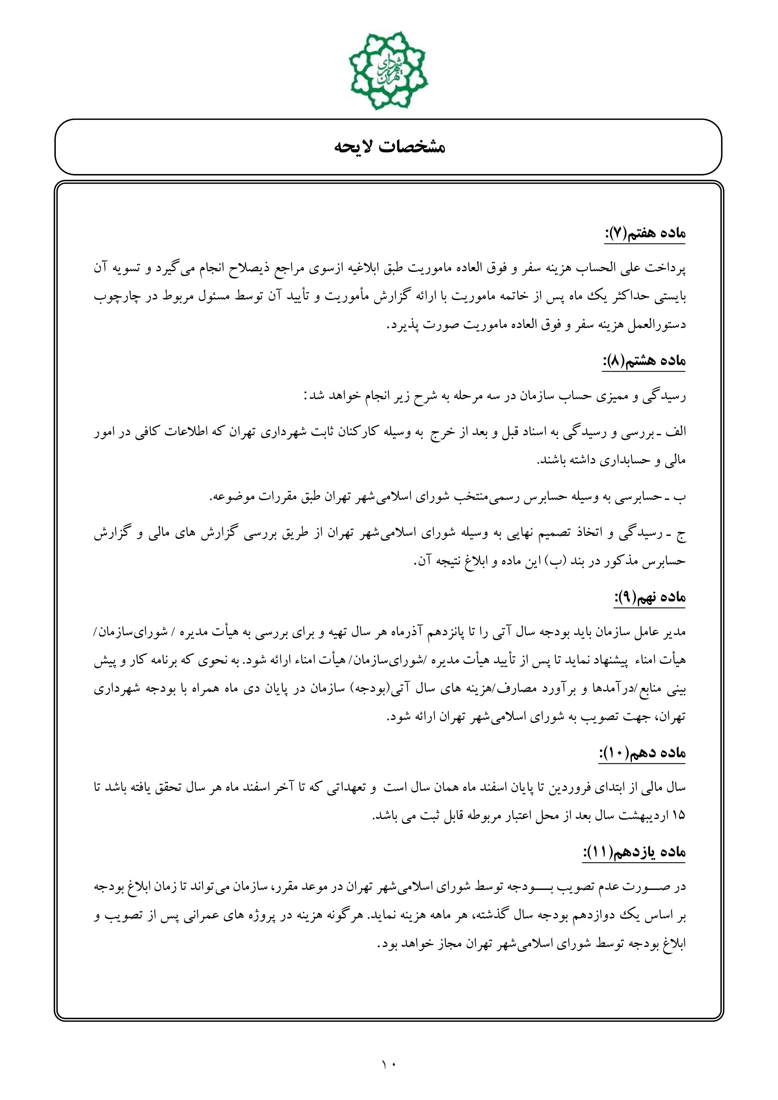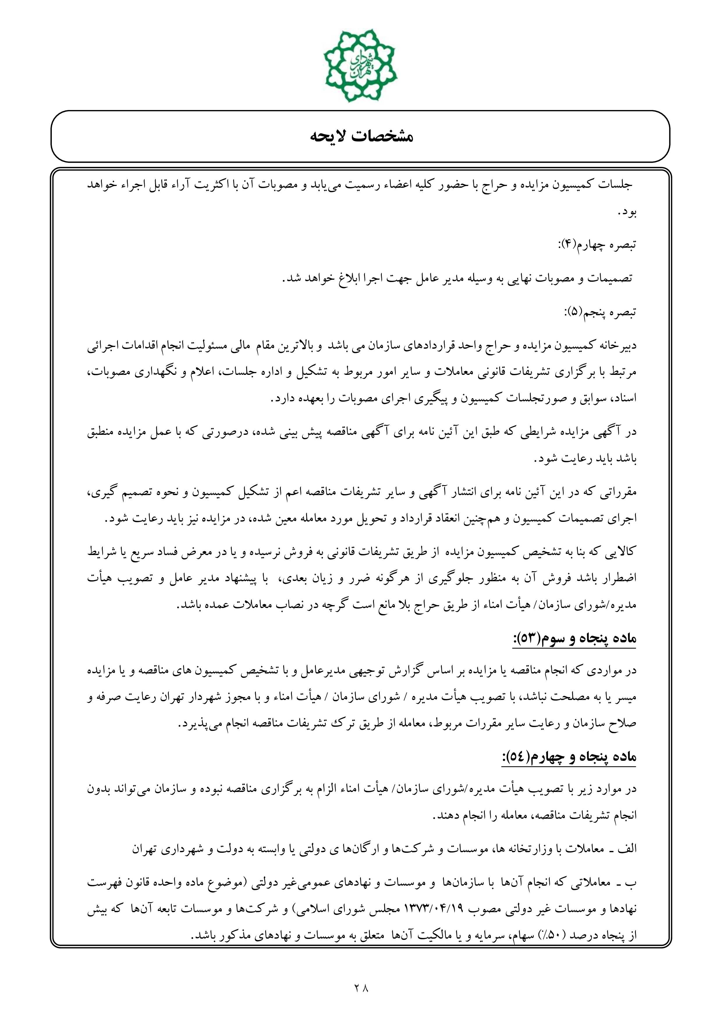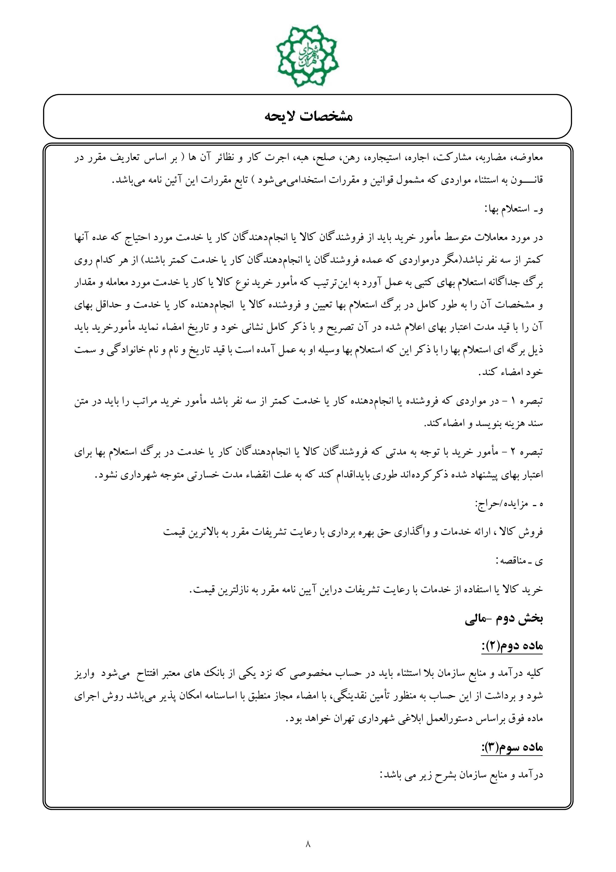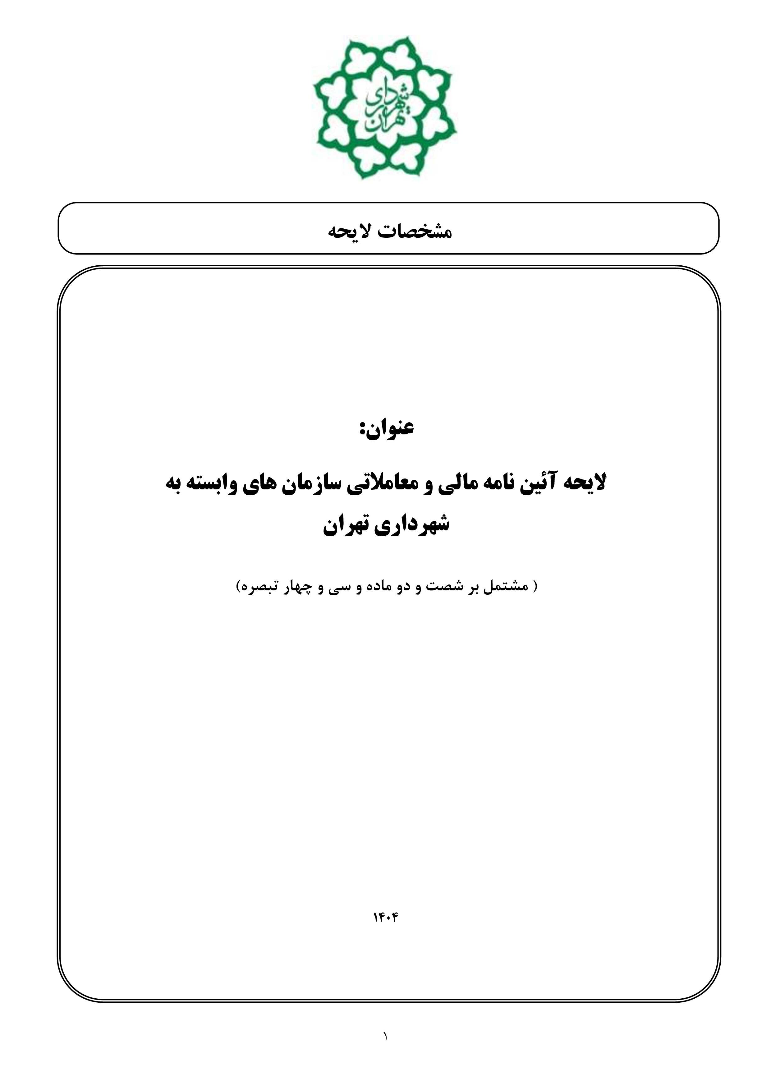 آييننامه مالي و معاملاتي سازمانهاي وابسته به شهرداري تهران