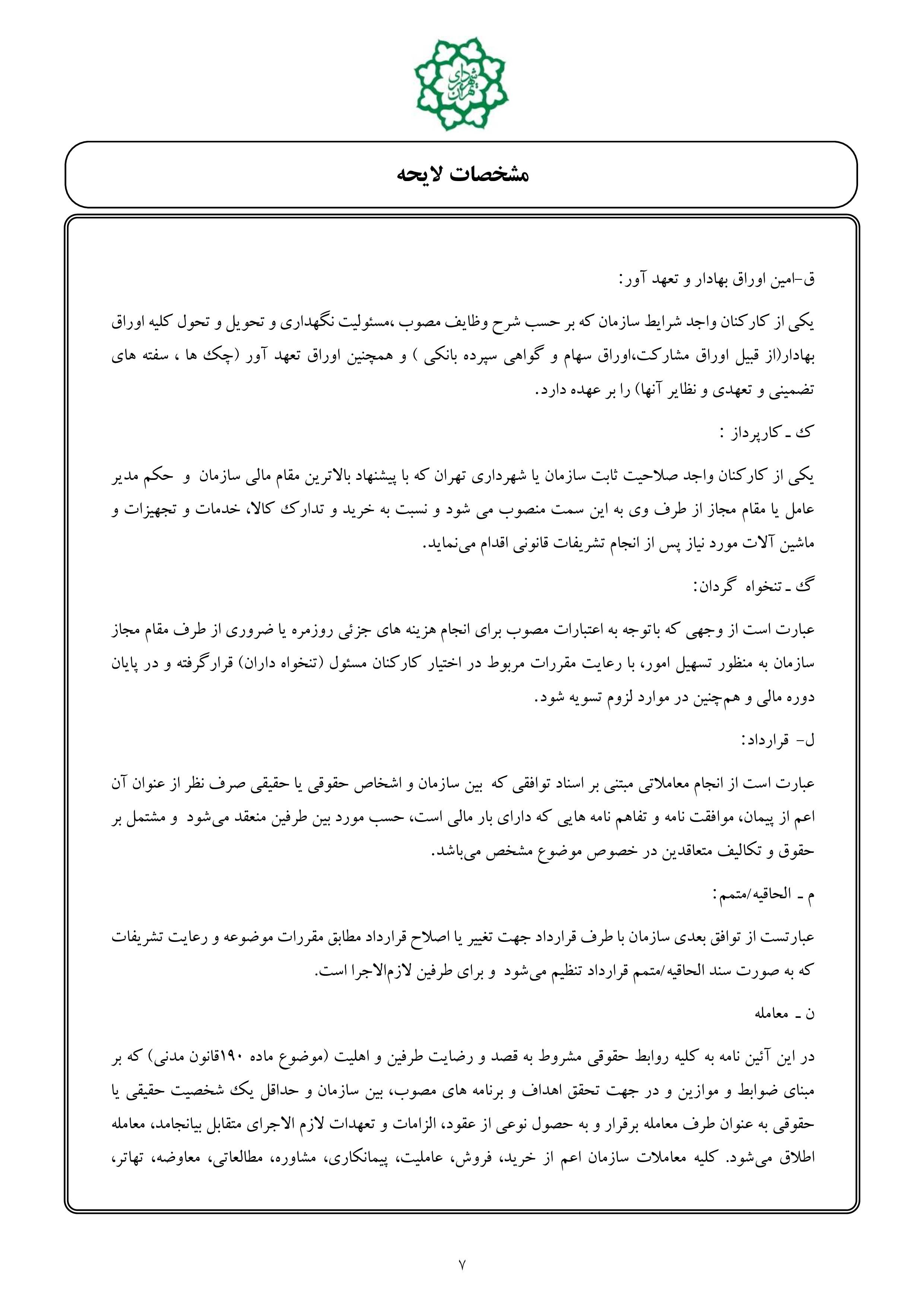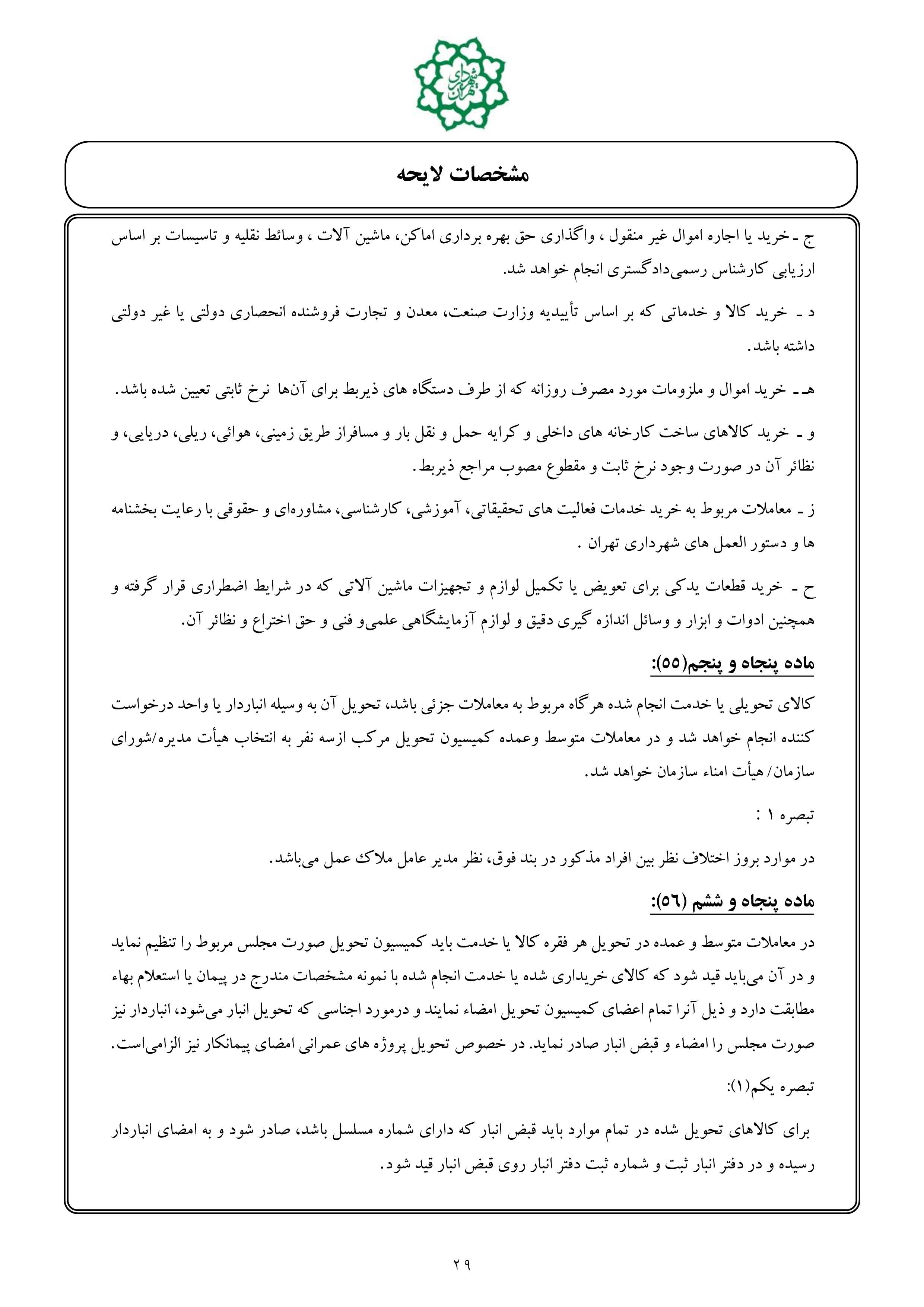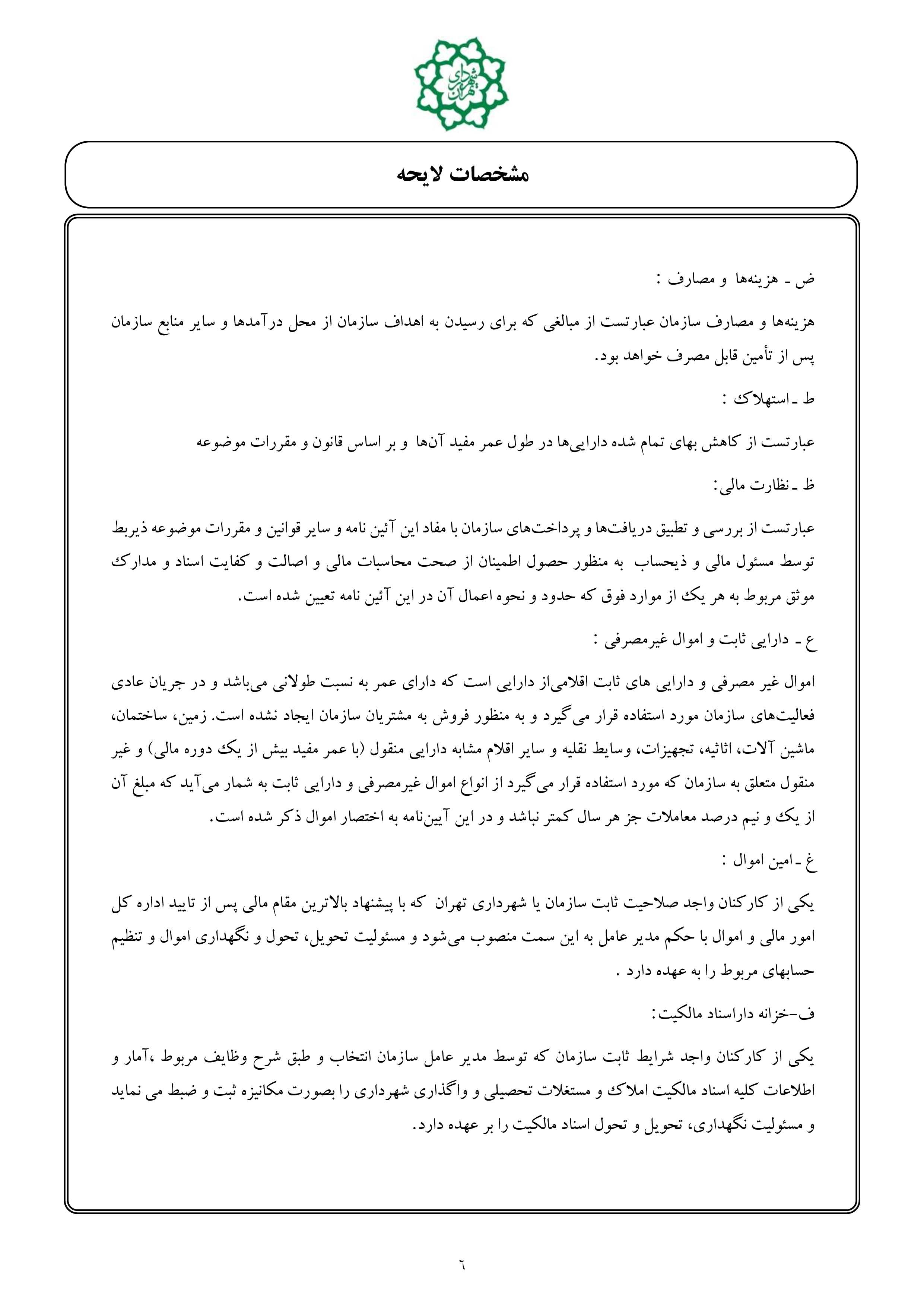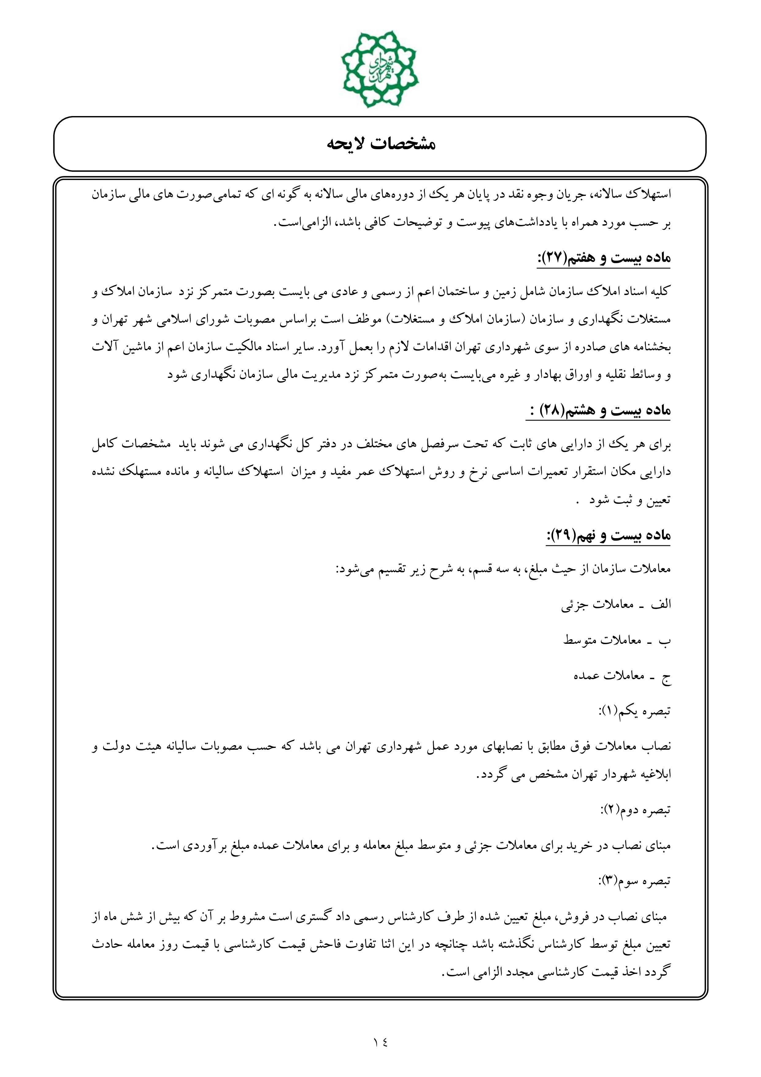 آييننامه مالي و معاملاتي سازمانهاي وابسته به شهرداري تهران