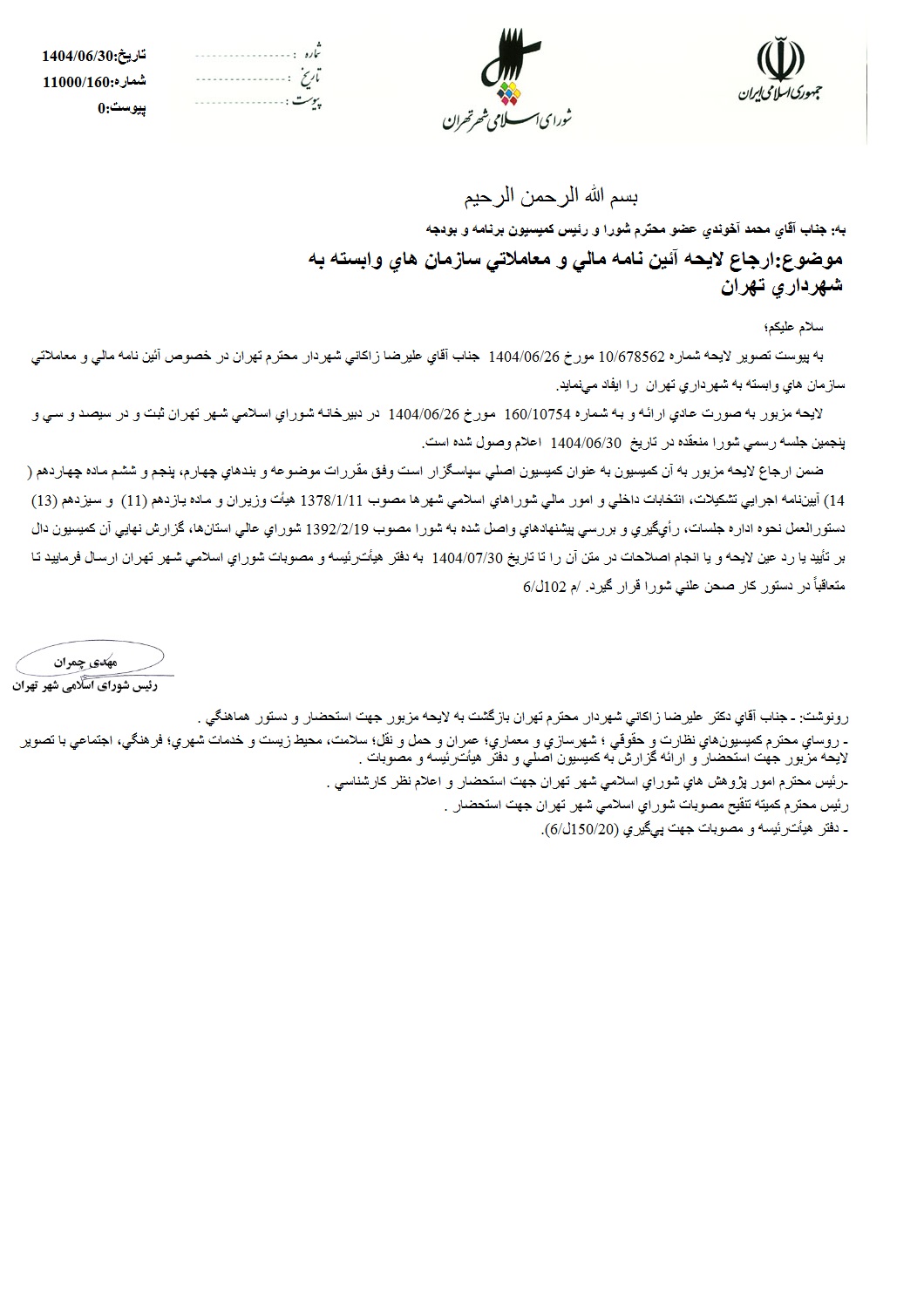 آييننامه مالي و معاملاتي سازمانهاي وابسته به شهرداري تهران