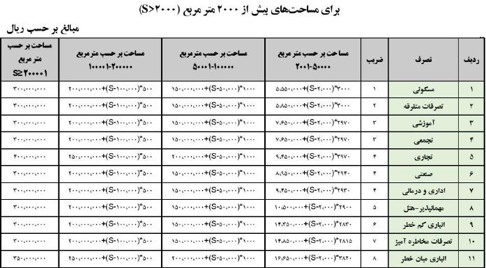 بهاي خدمات موضوع اين ماده واحده و تبصرههاي ذيل آن هرساله متناسب با ميزان تورم اعلامي از سوي بانك مركزي نسبت به سال قبل افزايش مييابد. ![]() ![]() تبصره پنجم (5): ساختمانهايي كه داراي تأييديه ايمني ميباشند، مشروط به حفظ و پايداري شرايط ايمني ساختمان بر اساس مقررات ملي ساختمان به ويژه مباحث سوم، سيزدهم، پانزدهم و هفدهم از حداكثر بيست درصد (٪20) تخفيف بر اساس ميزان تأمين شرايط ايمني به تشخيص سازمان آتشنشاني و خدمات ايمني برخوردار خواهند بود. تبصره ششم (6): اماكن و ساختمانهاي داراي كاربريهاي فرهنگي، ورزشي، مذهبي، مساجد (به استثناي واحدهاي تجاري آنها) و مراكز نگهداري ايتام و افراد بيسرپرست وابسته به كميته امداد امام خميني (ره) و سازمان بهزيستي و مراكز نگهداري شبانهروزي معلولين متقاضي استفاده از سامانه پايش هوشمند اعلام حريق ساختمان از ده درصد (10%) درصد تخفيف برخوردار خواهند بود. تبصره هفتم (7): تعاريف كاربريها بر اساس مبحث سوم مقررات ملي ساختمان ويرايش سال 95 و ويرايشهاي بعدي مبحث مذكور ميباشد كه در آييننامه اجرايي پيوست اين مصوبه به تفصيل ذكر شده است. تبصره هشتم (8)-الحاق 1401/07/12-: در راستاي رعايت اصول، ضوابط و مقررات و ارتقاء سطح كيفي ايمني در ساخت و سازها و پايداري آنها در طول دوره بهره برداري تصرفات، شهرداري تهران مكلف است نسبت به الزام مالكين ساختمانهاي جديد الاحداث در كليه پروانهها و پايان كارهاي ساختماني و در خصوص ساختمانهاي موجود شهر تهران در صورت وجود زير ساختهاي لازم، ظرف مدت 2 سال پس از لازمالاجرا شدن اين مصوبه جهت اتصال ساختمان به «سامانه پايش هوشمند اعلام حريق ساختمان» براي تصرفهاي مسكوني با مساحت 5000 مترمربع و بيشتر و ساير تصرفات مندرج در جداول (1) و (2) ذيل ماده واحده اين مصوبه با مساحت 2500 مترمربع و بيشتر اقدام نمايد. ![]() تبصره نهم (9)-الحاق 1401/07/12-: